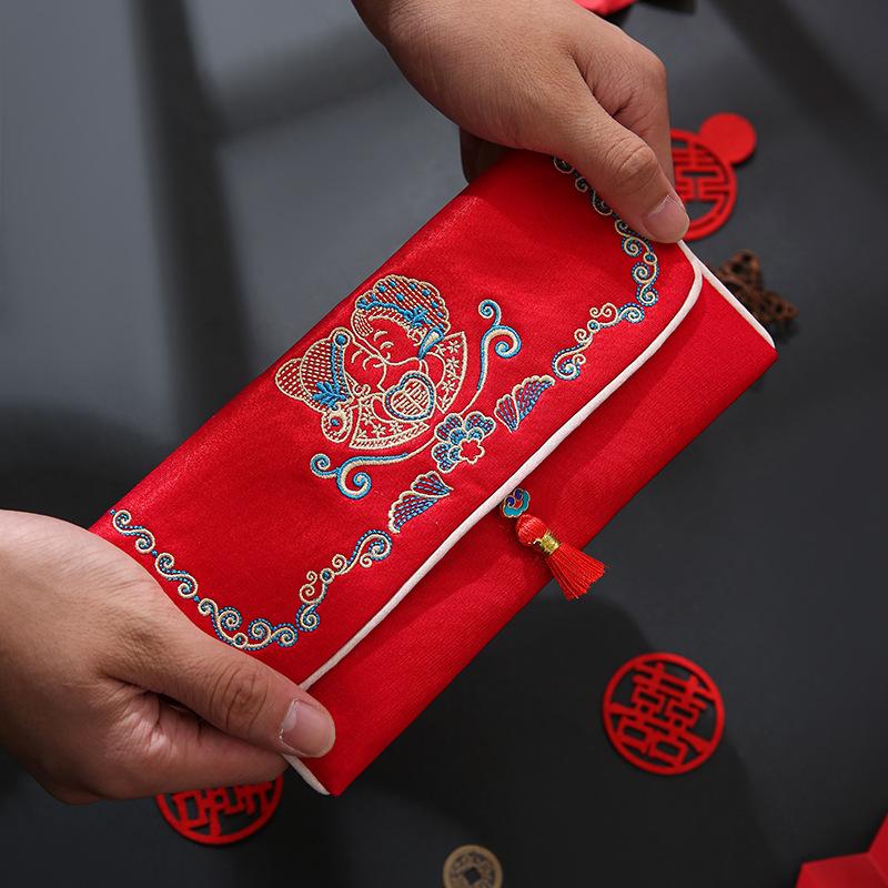 2025 nuevo sobre rojo de tela para boda, el té de boda cambiado por diez mil yuanes de ganancia es un sobre rojo grande para boda