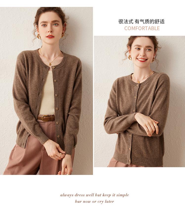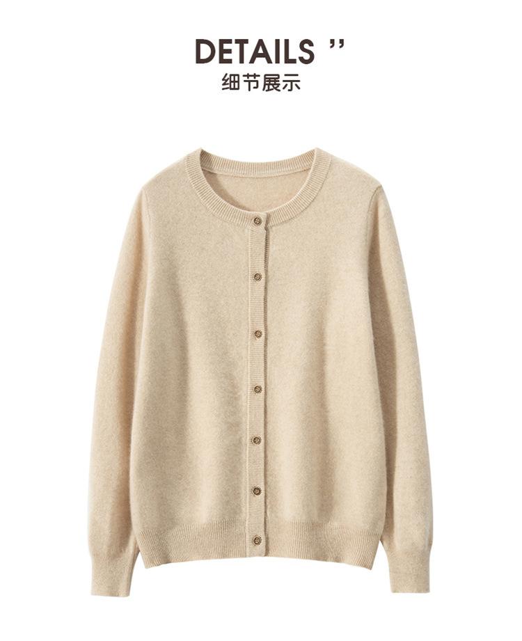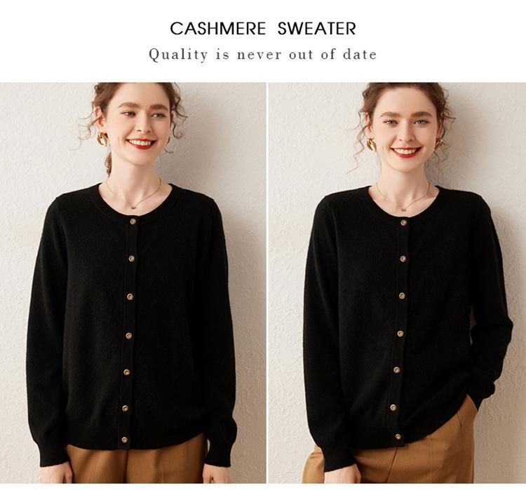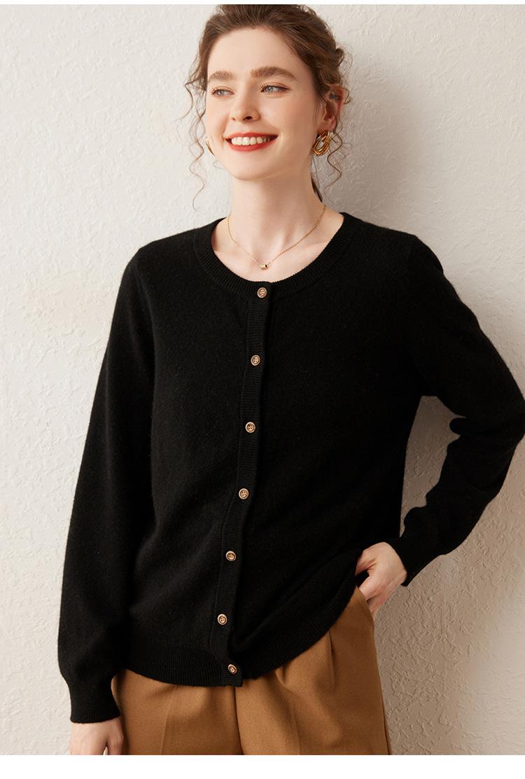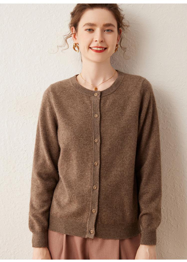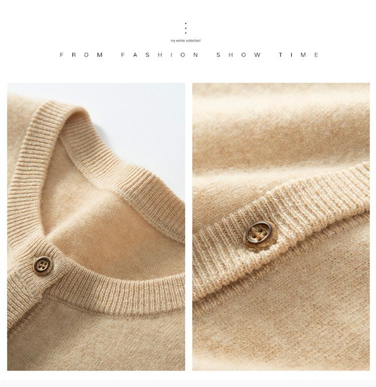 Suéter de punto holgado de una sola botonadura de manga larga Cárdigan de cachemira holgado adelgazante Chaqueta para mujer Cuello redondo bajo