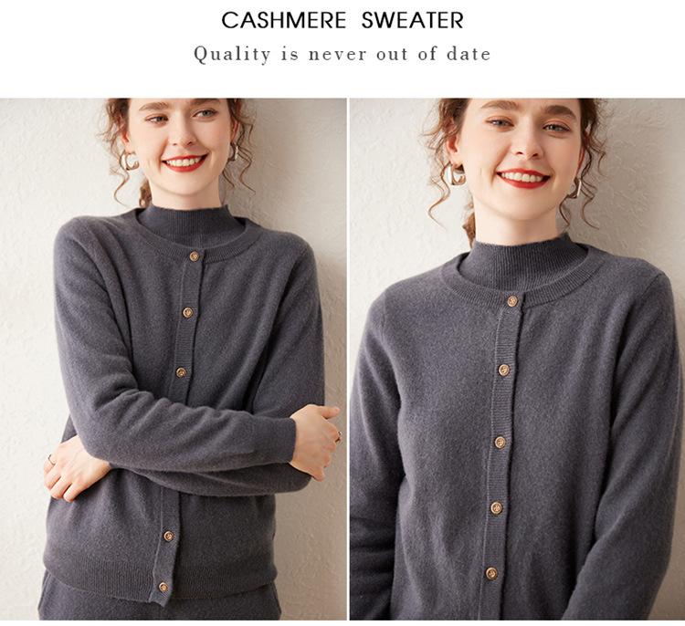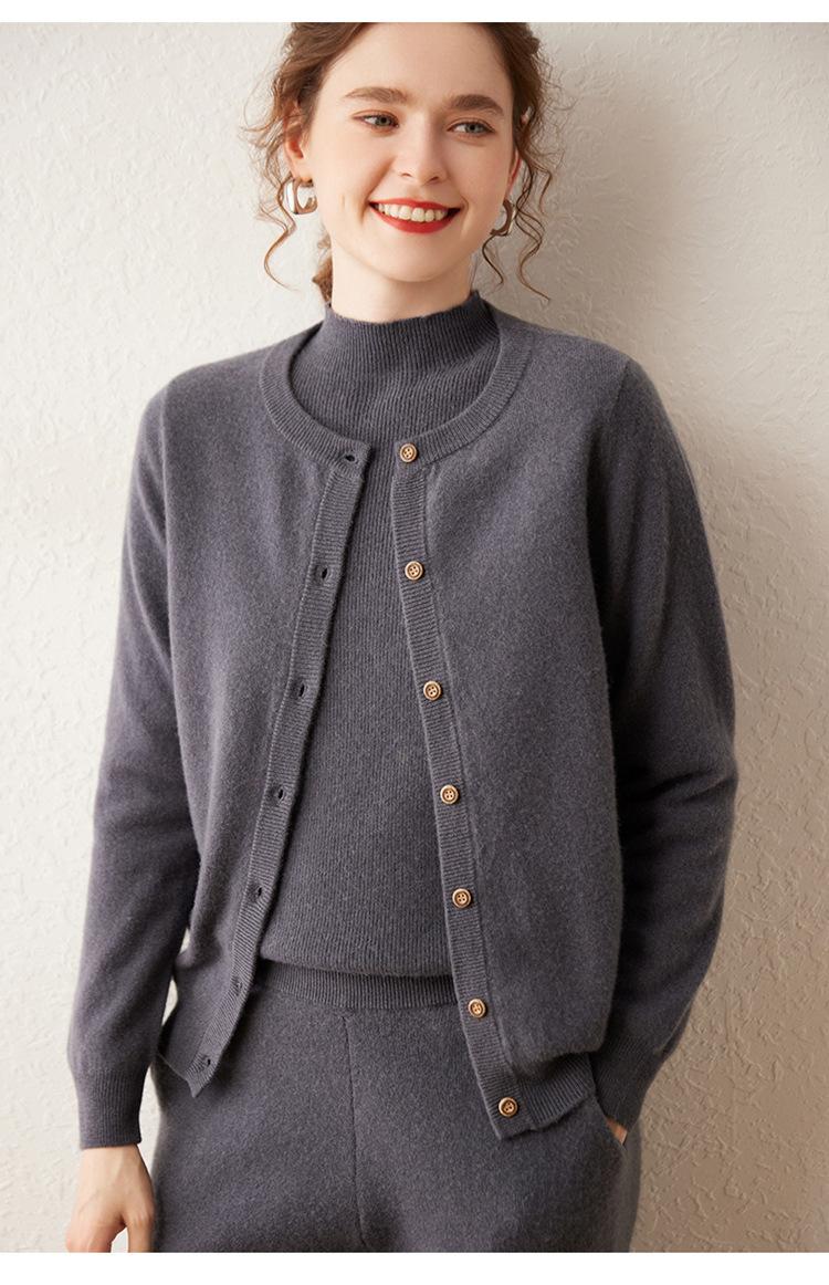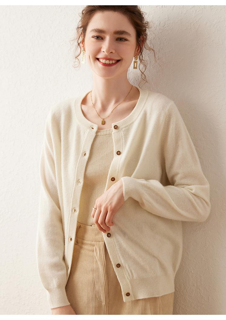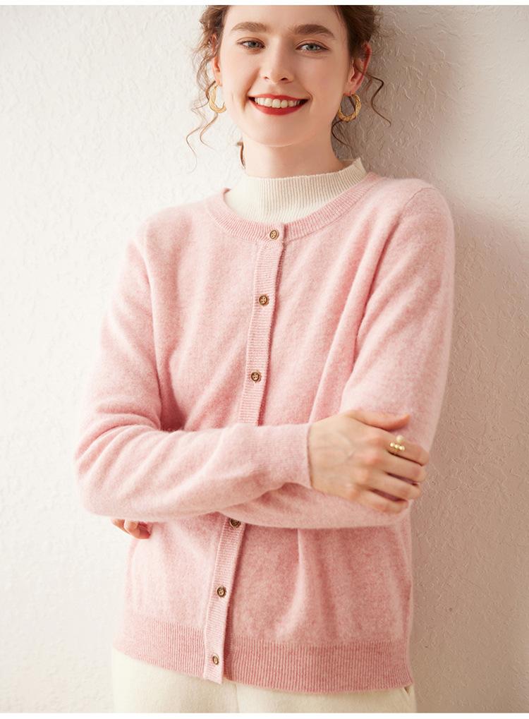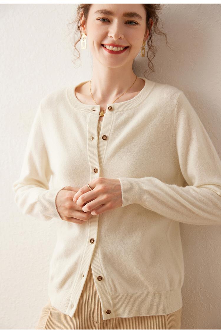 Suéter de punto holgado de una sola botonadura de manga larga Cárdigan de cachemira holgado adelgazante Chaqueta para mujer Cuello redondo bajo