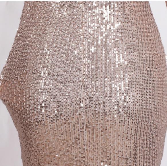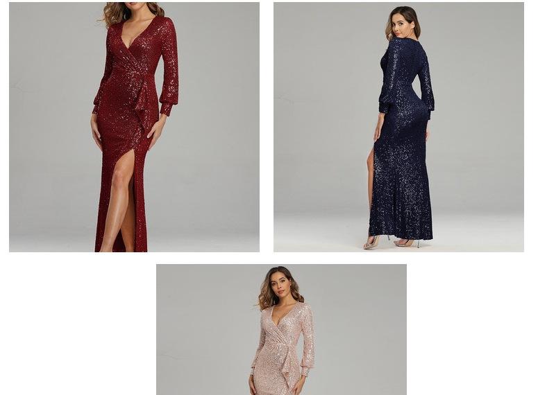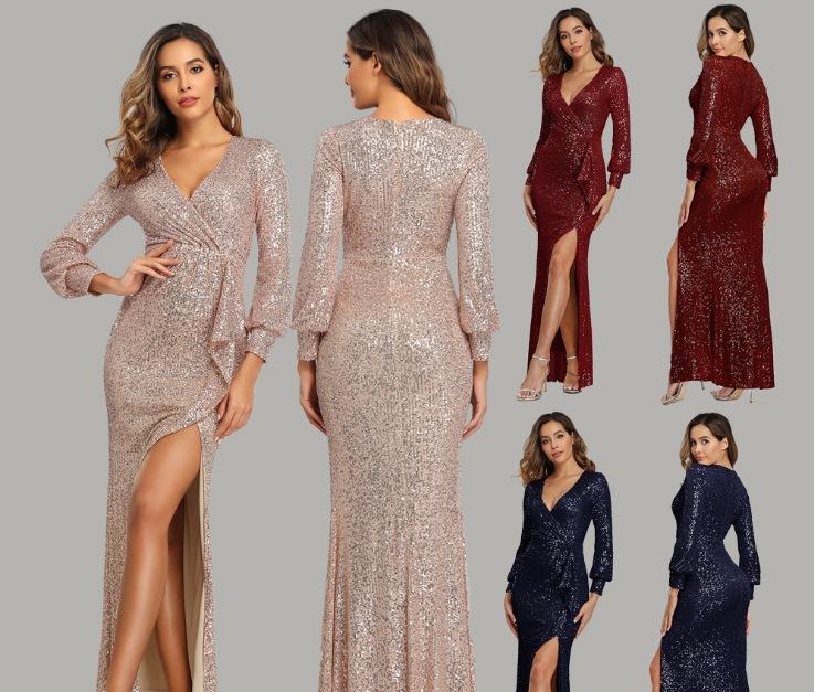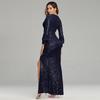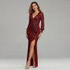 023 Calidad de Fiesta de Celebridad Transfronteriza Largo Sexy Abertura Alta Manga Larga Lentejuelas Vestido de Noche de Banquete para Mujeres Ins