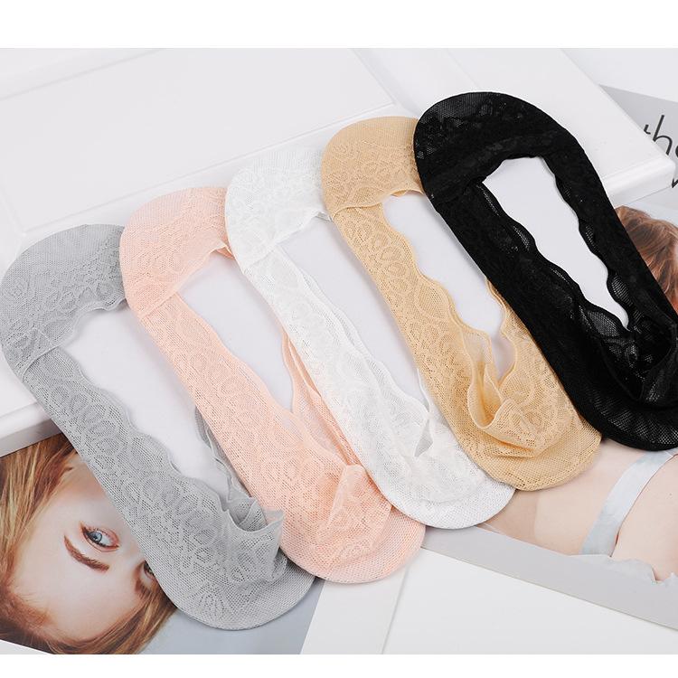 Calcetines de Encaje Finos de Verano Calcetines Cortos para Mujer Calcetines Invisibles Talón Antideslizante de Silicona Cubre Calcetines de Barco de Boca Súper Baja