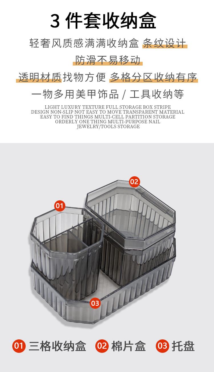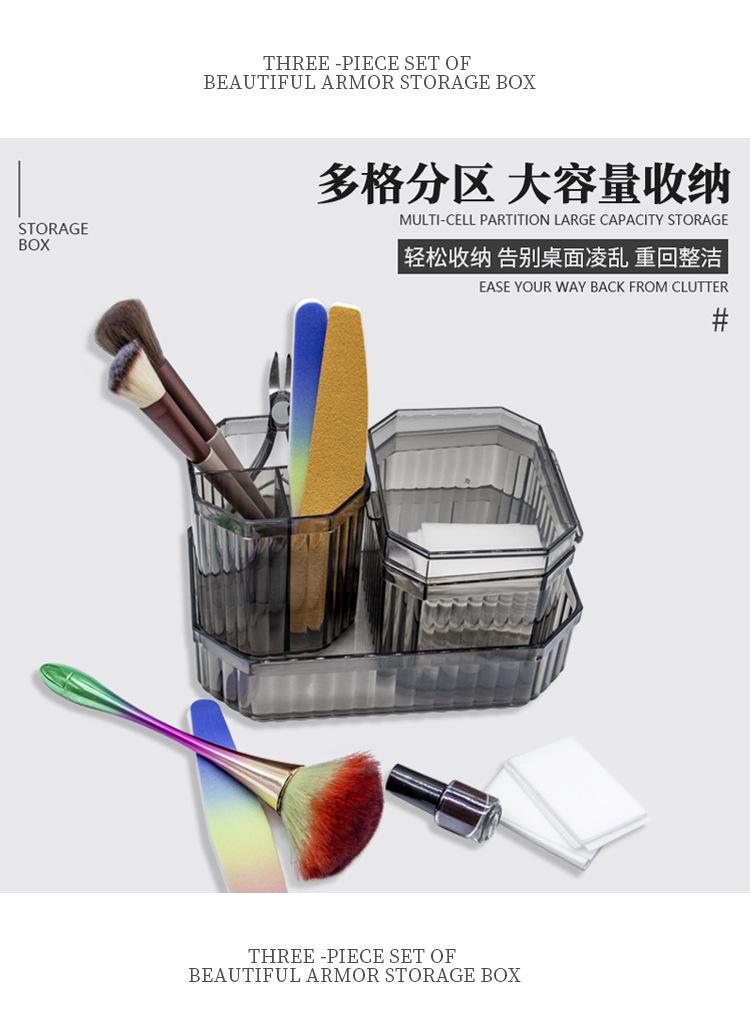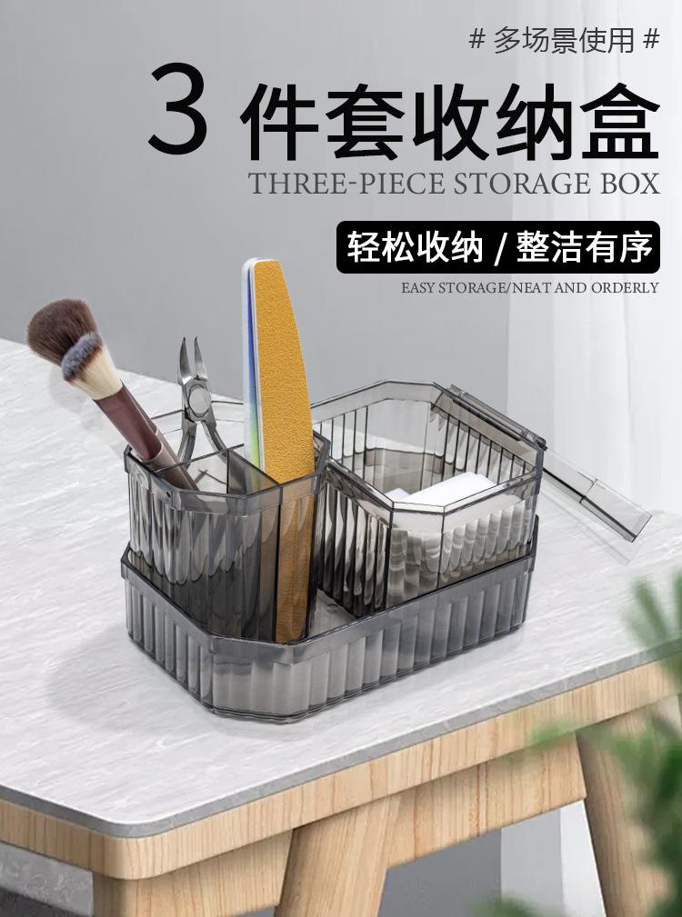 Caja de herramientas de 3 piezas para decoración de uñas transfronteriza, caja de herramientas de almacenamiento de acabado de escritorio, caja de almacenamiento de herramientas especiales para tienda de uñas