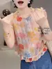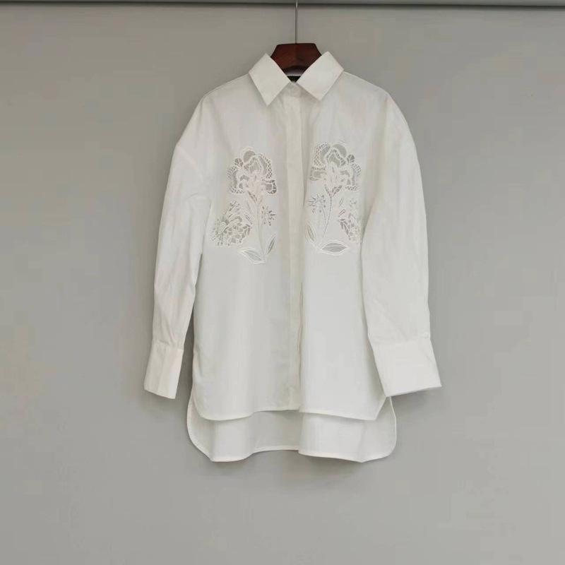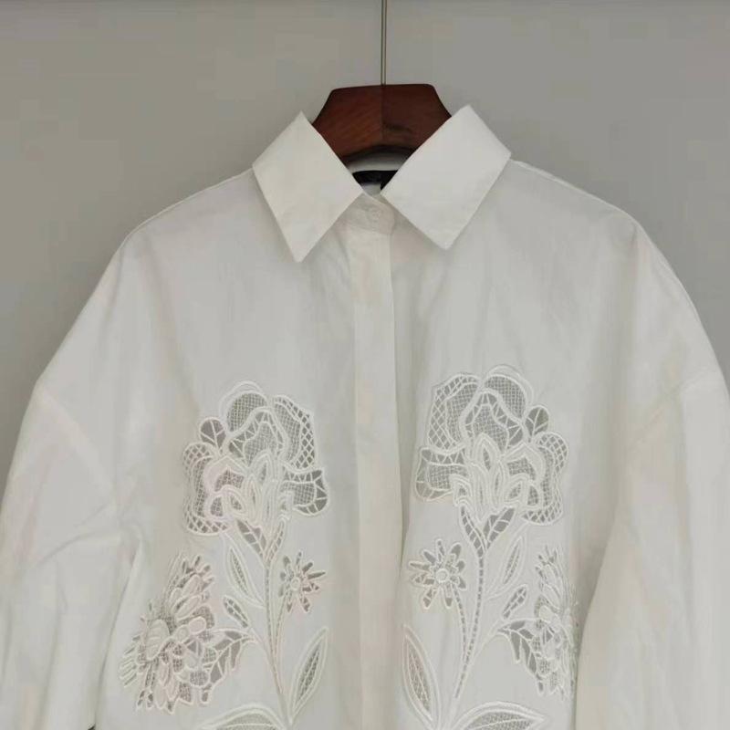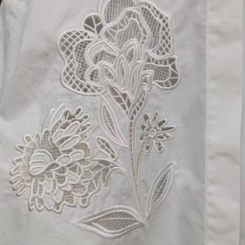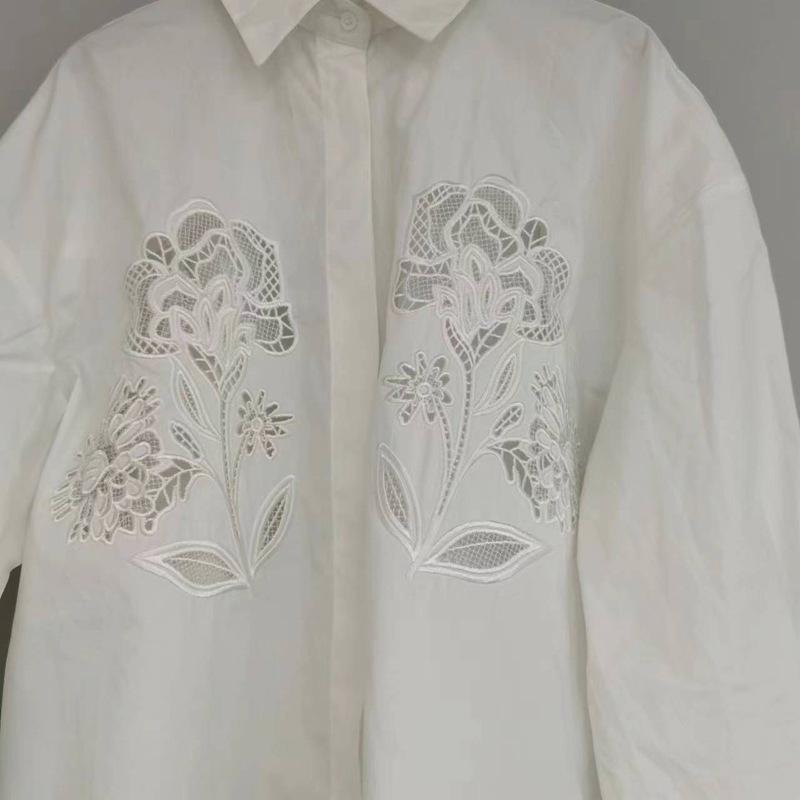 Elegante Nicho Estilo Francés Primavera y Verano Nueva Moda Blanco Calado Bordado Floral Camisa Holgada Algodón Romántico