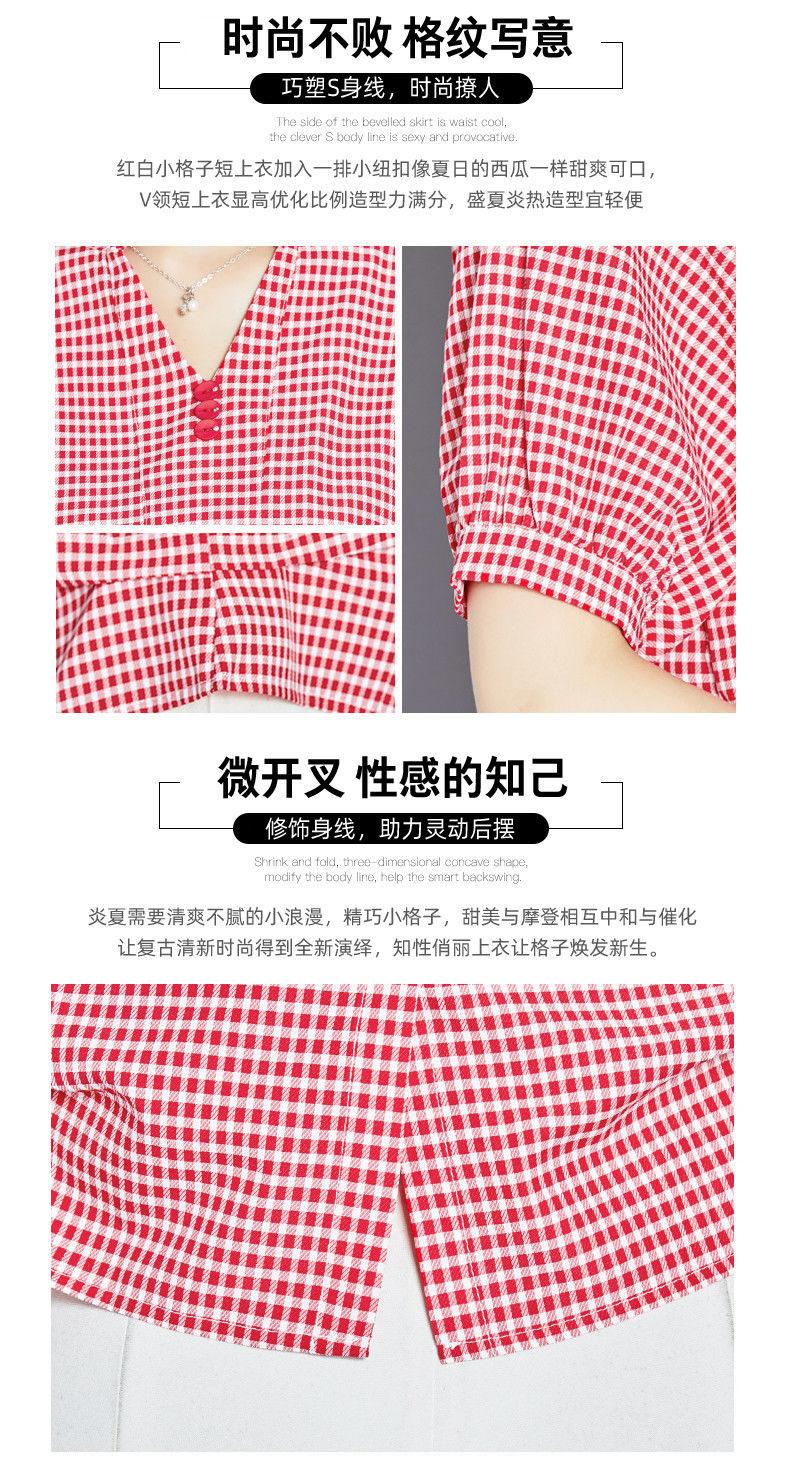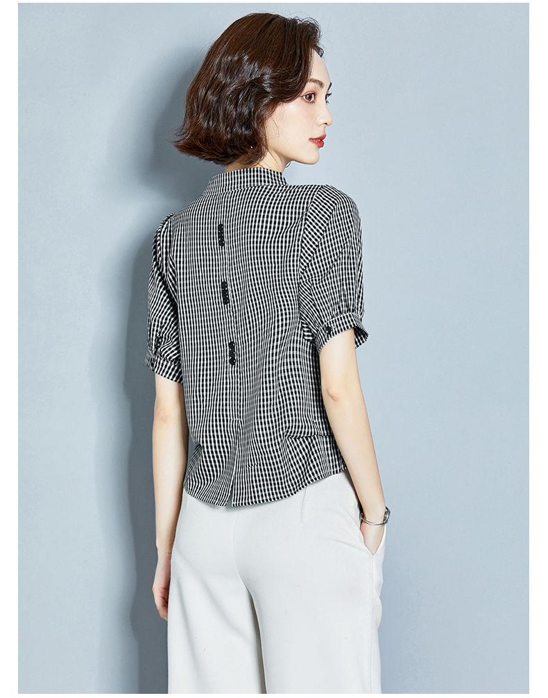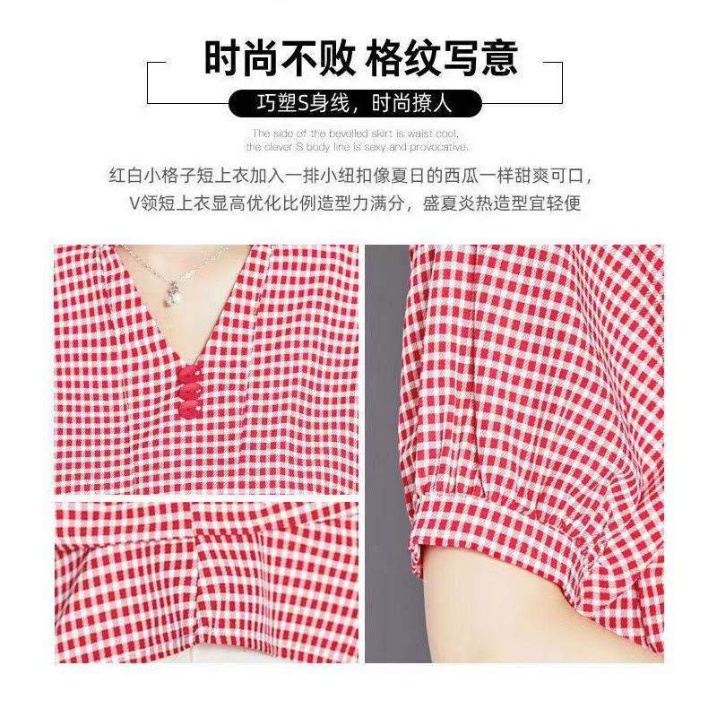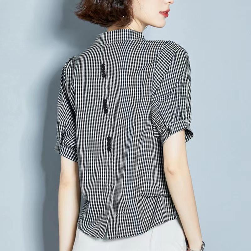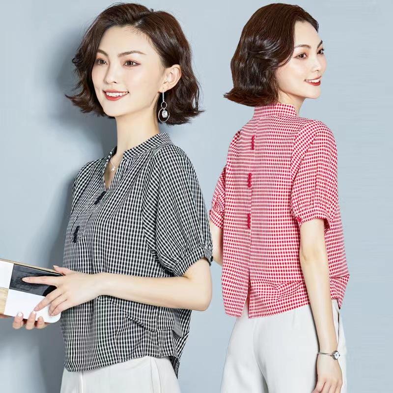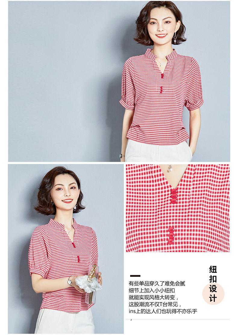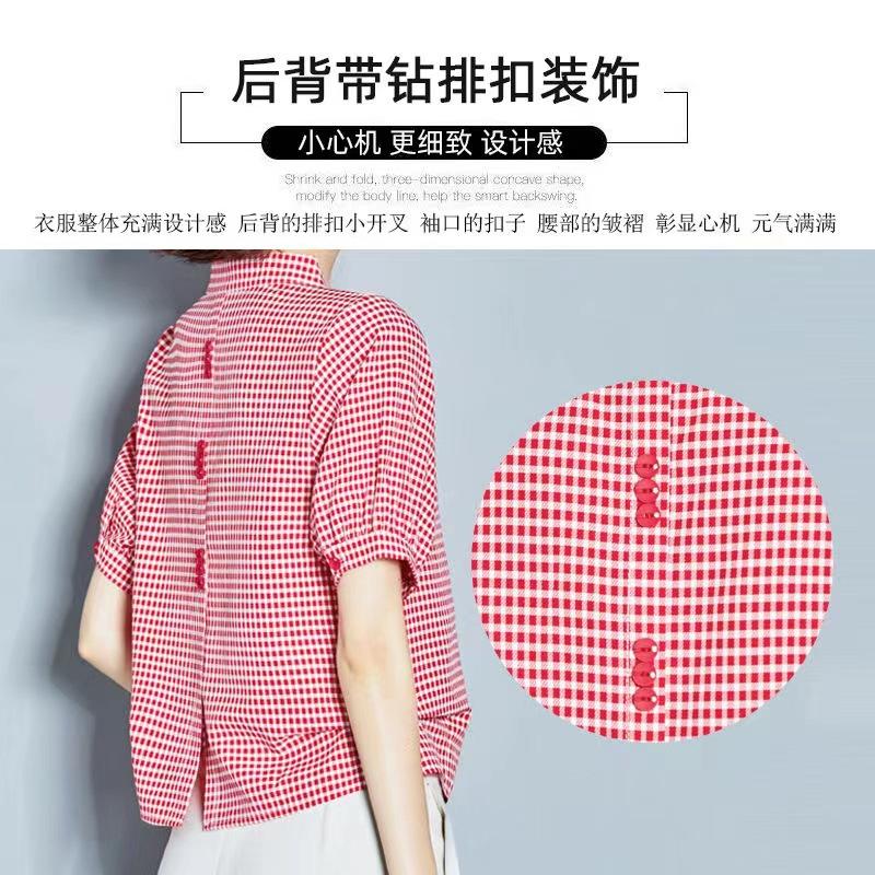 Sense Camisa de gasa de manga corta para mujer 2024 Nicho Cuadros Nuevo Top Estilo occidental Cubre vientre Diseño de cuello en V Verano Camisa pequeña