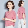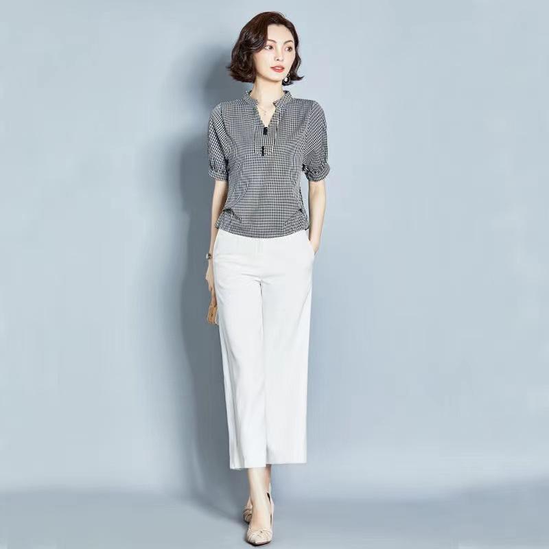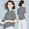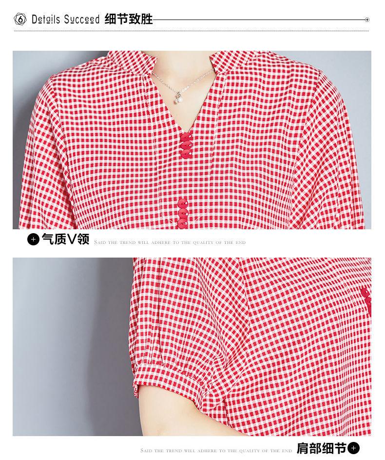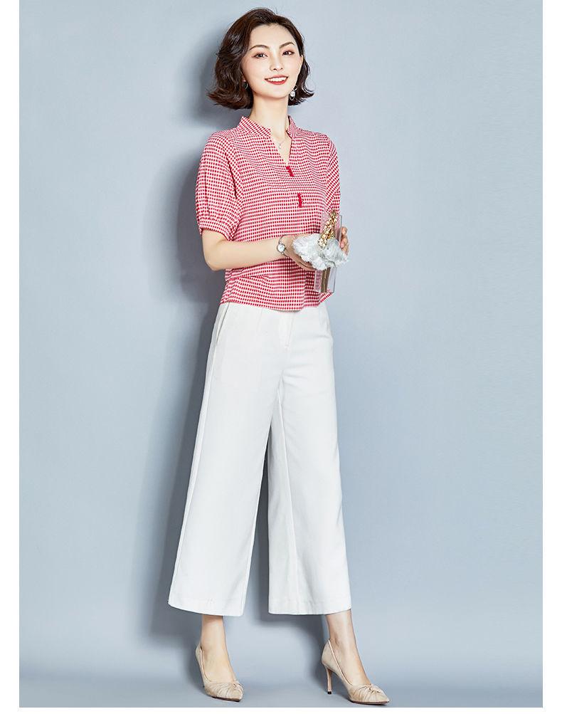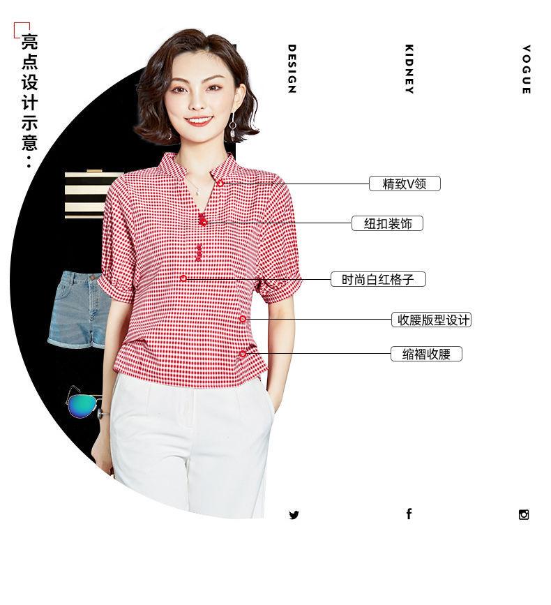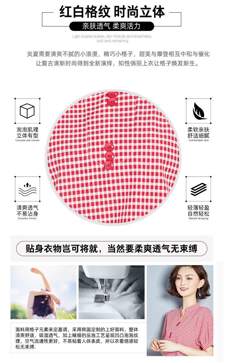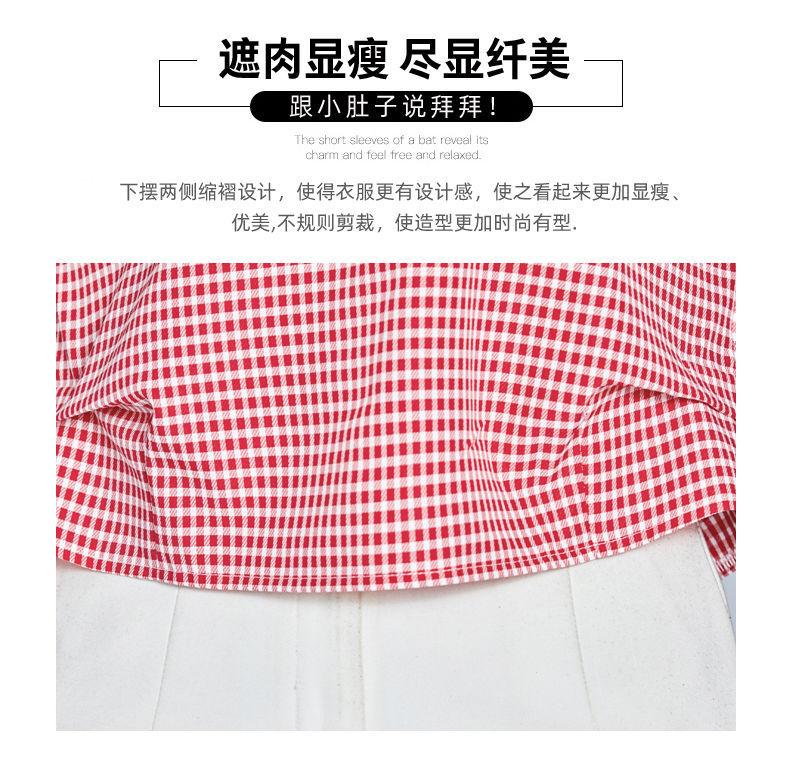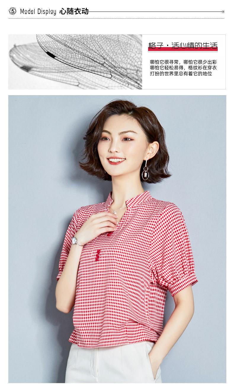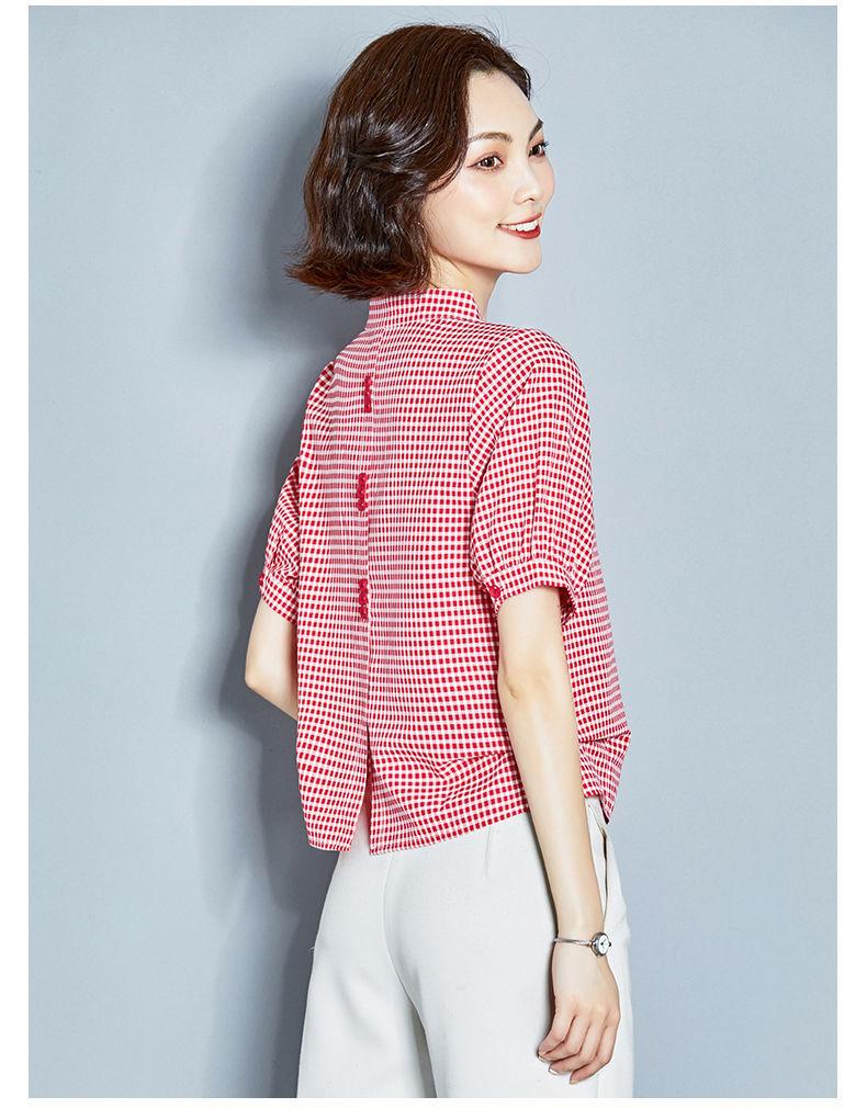 Sense Camisa de gasa de manga corta para mujer 2024 Nicho Cuadros Nuevo Top Estilo occidental Cubre vientre Diseño de cuello en V Verano Camisa pequeña