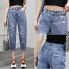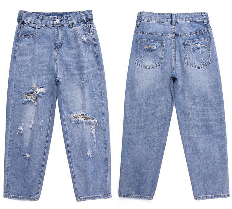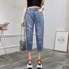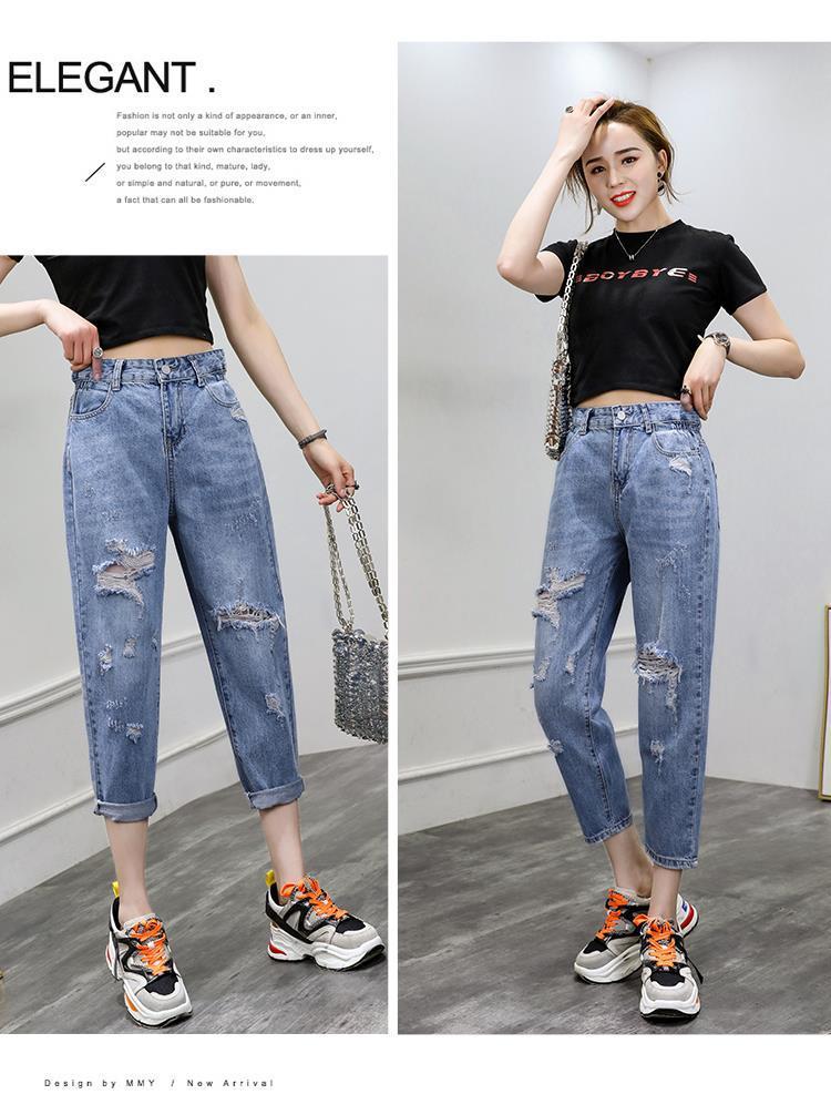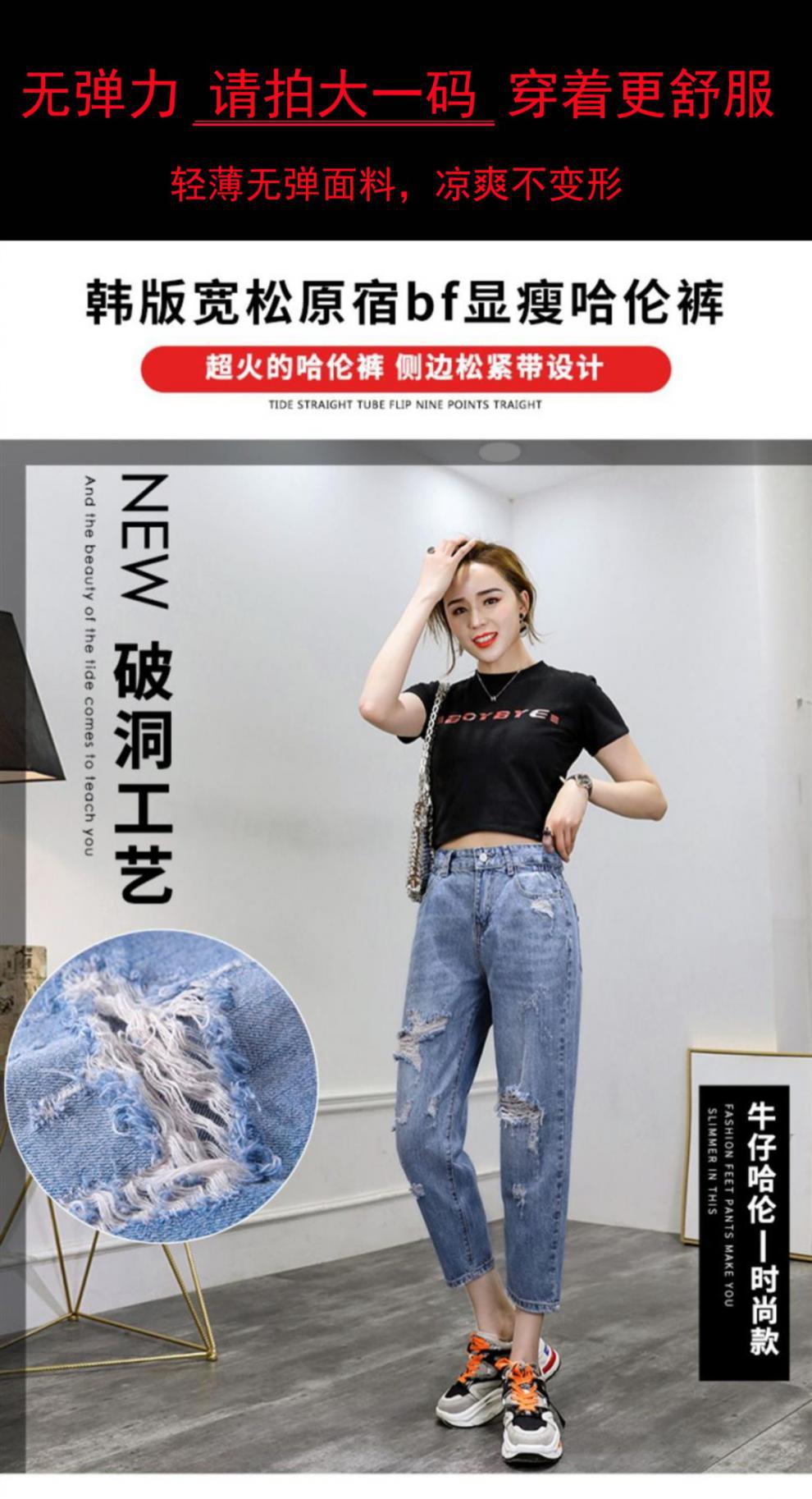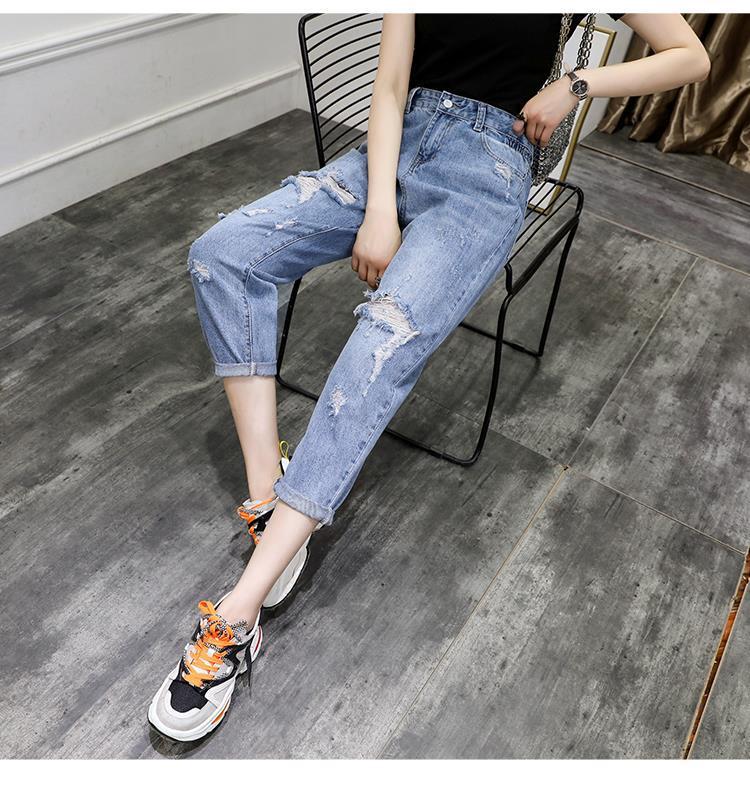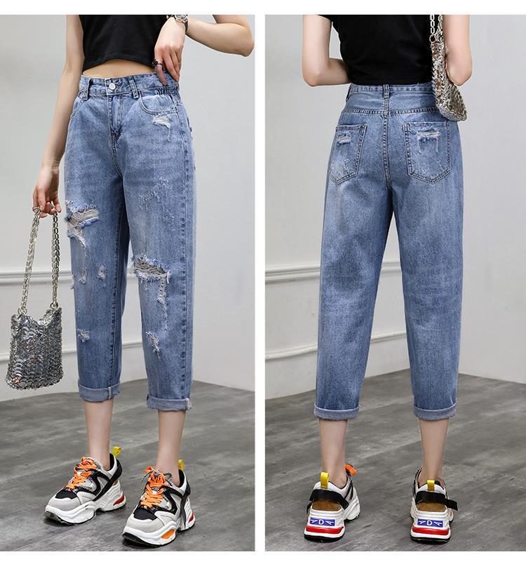 Pantalones vaqueros rasgados para mujer, holgados, adelgazantes, de verano 2024, finos, rectos, pequeños, de nueve puntos, estilo harén para mujer