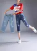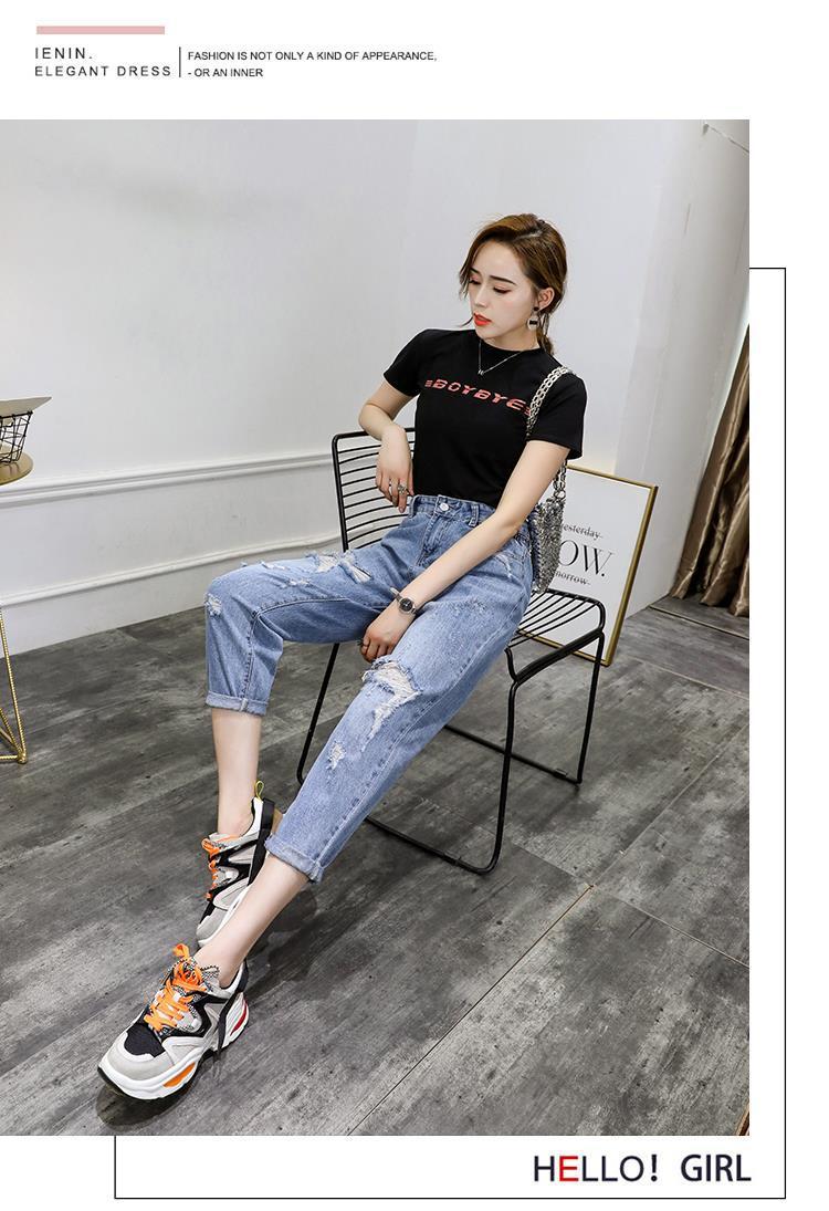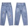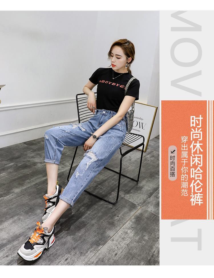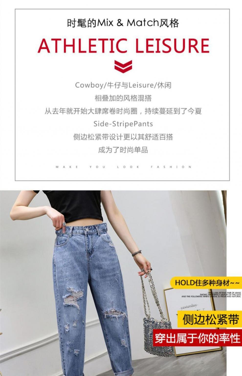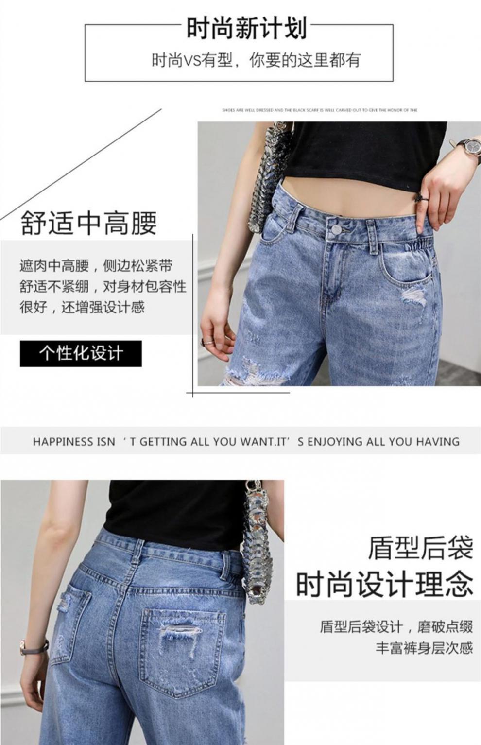 Pantalones vaqueros rasgados para mujer, holgados, adelgazantes, de verano 2024, finos, rectos, pequeños, de nueve puntos, estilo harén para mujer