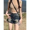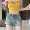 Pantalones cortos vaqueros de cintura alta estilo retro americano de color rojo, finos, modernos y de moda para verano