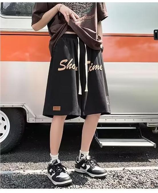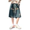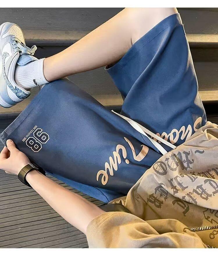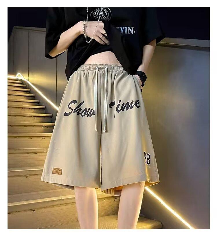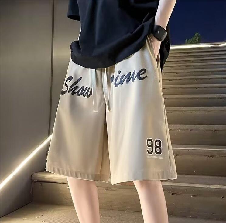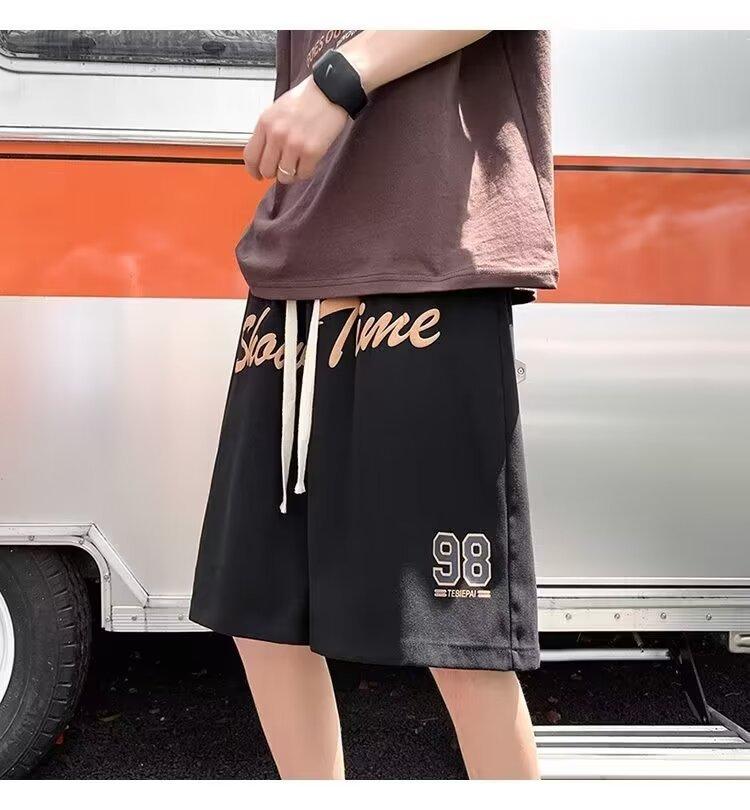 Pantalones cortos americanos 2024 para hombre, de verano, finos, para playa, holgados, de seda helada, estilo vintage, informales