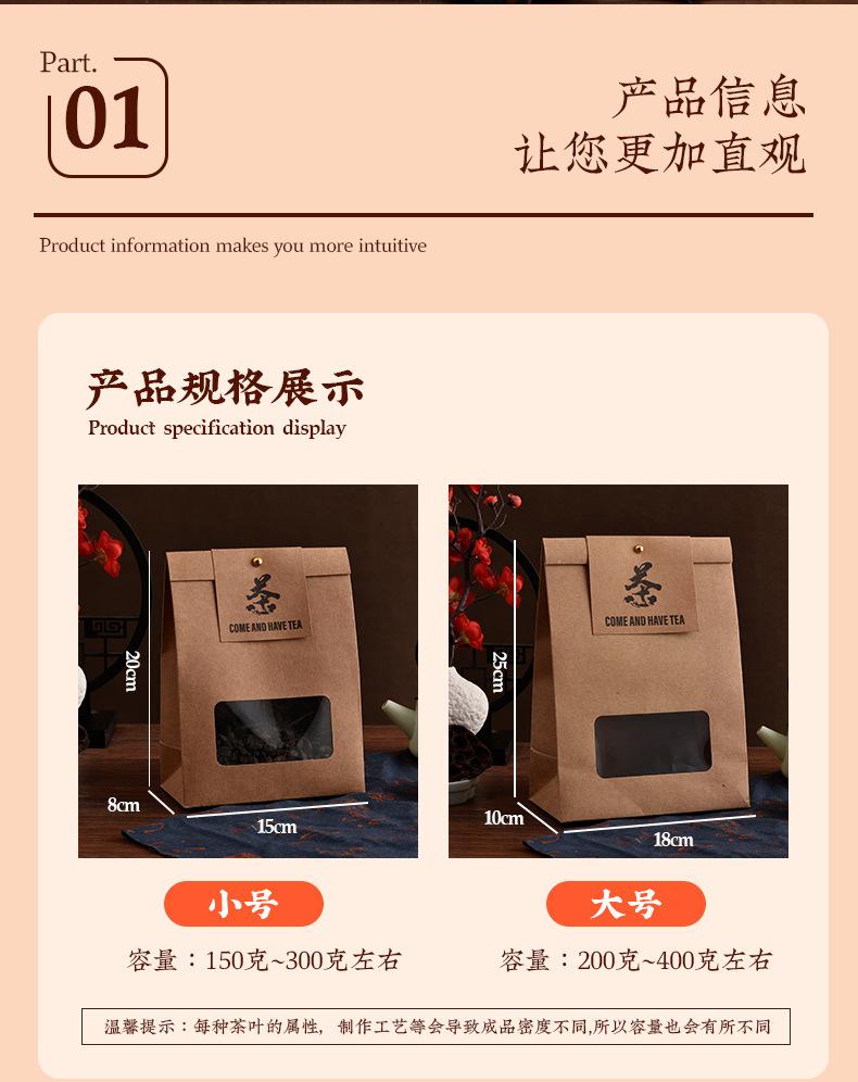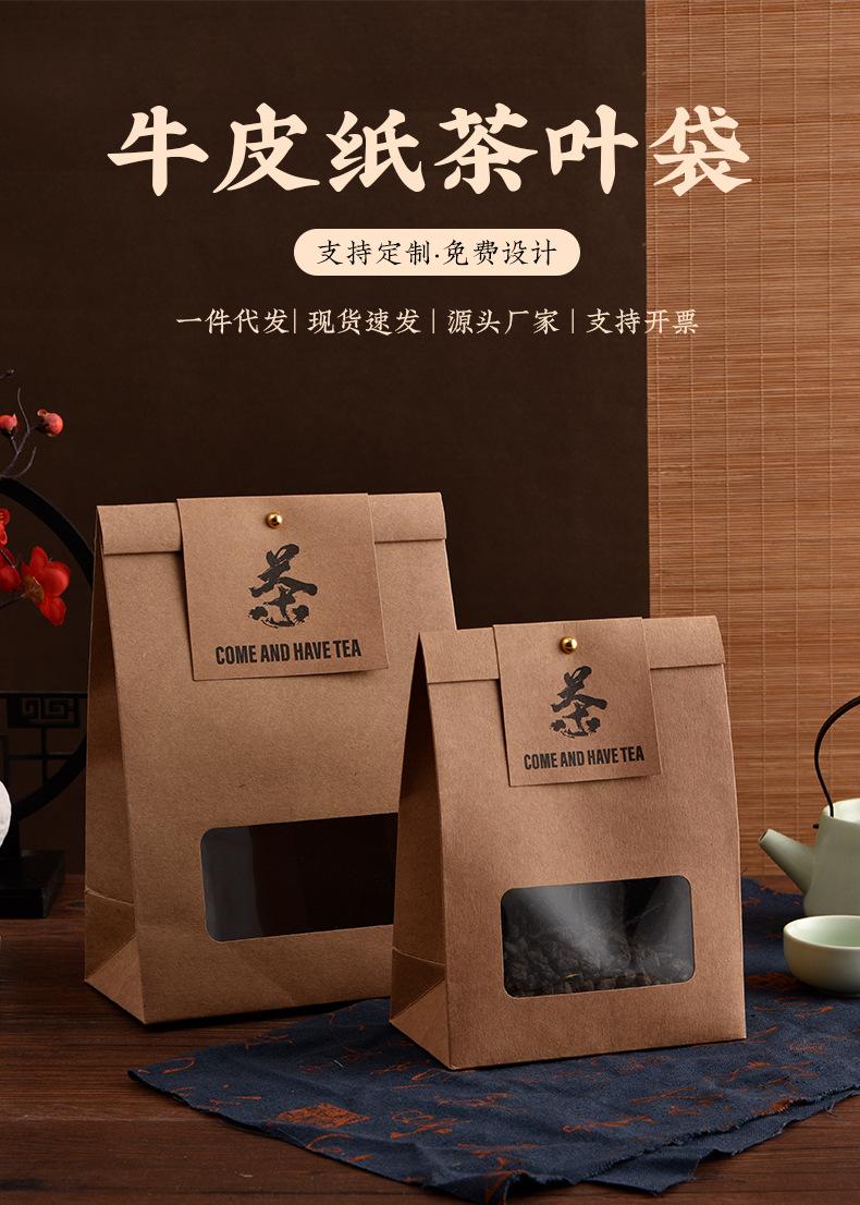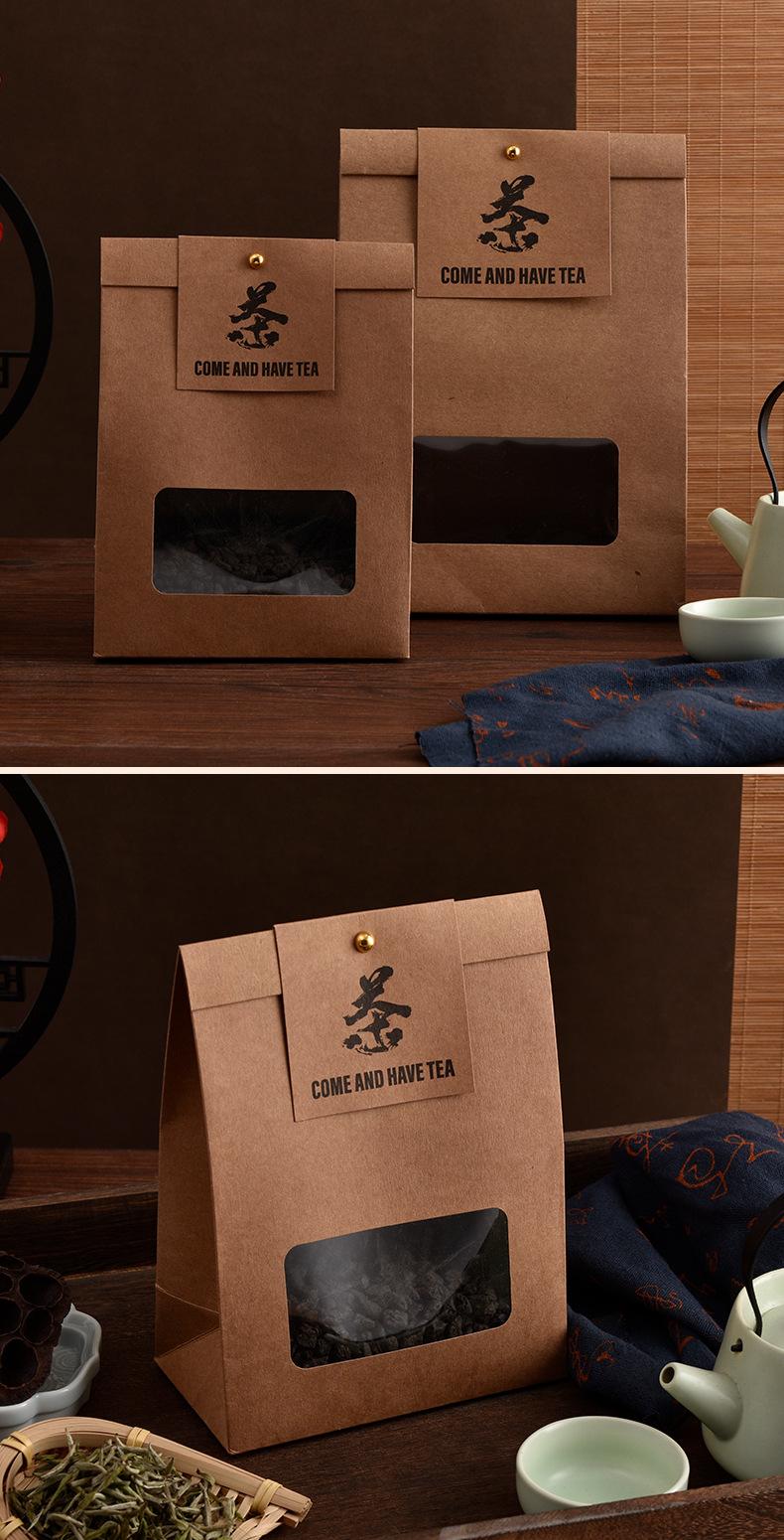 Bolsa de Papel Kraft con Ventana Bolsa de Embalaje de Papel Kraft Bolsa de Embalaje para Té Bolsa de Regalo Alimento Café Logotipo Imprimible