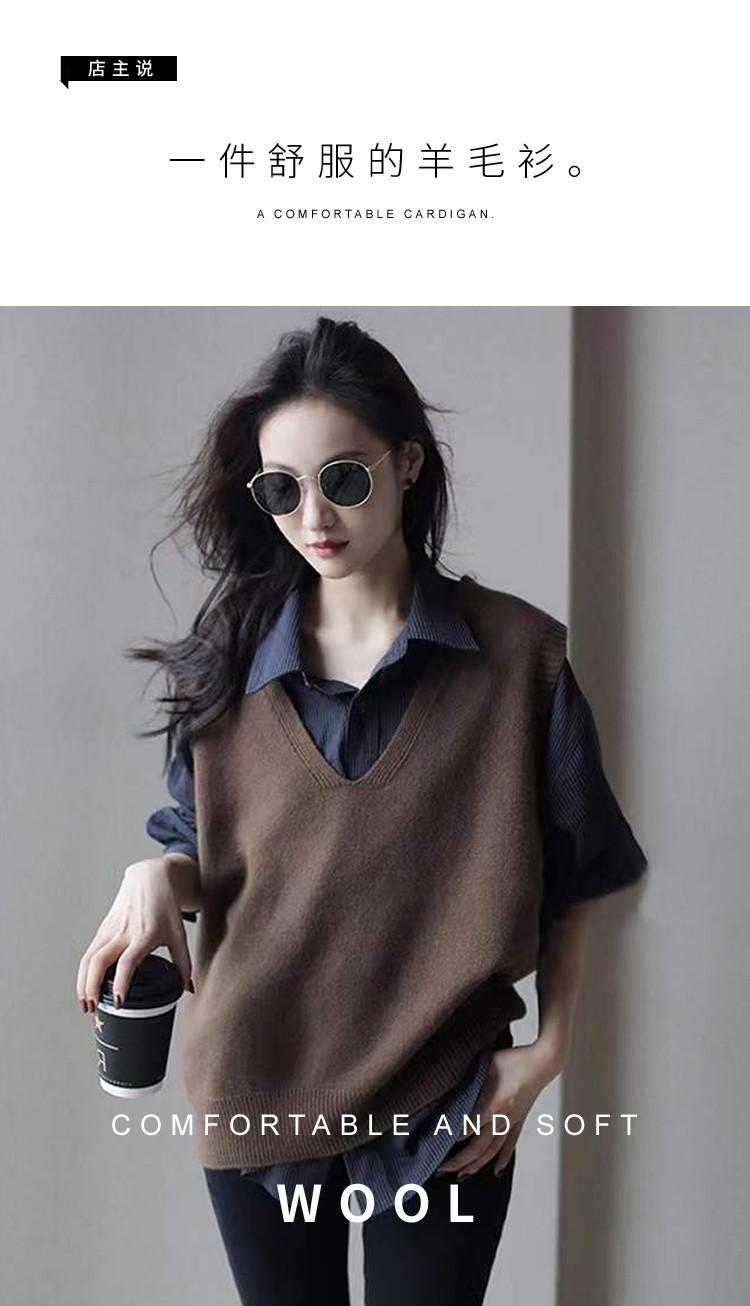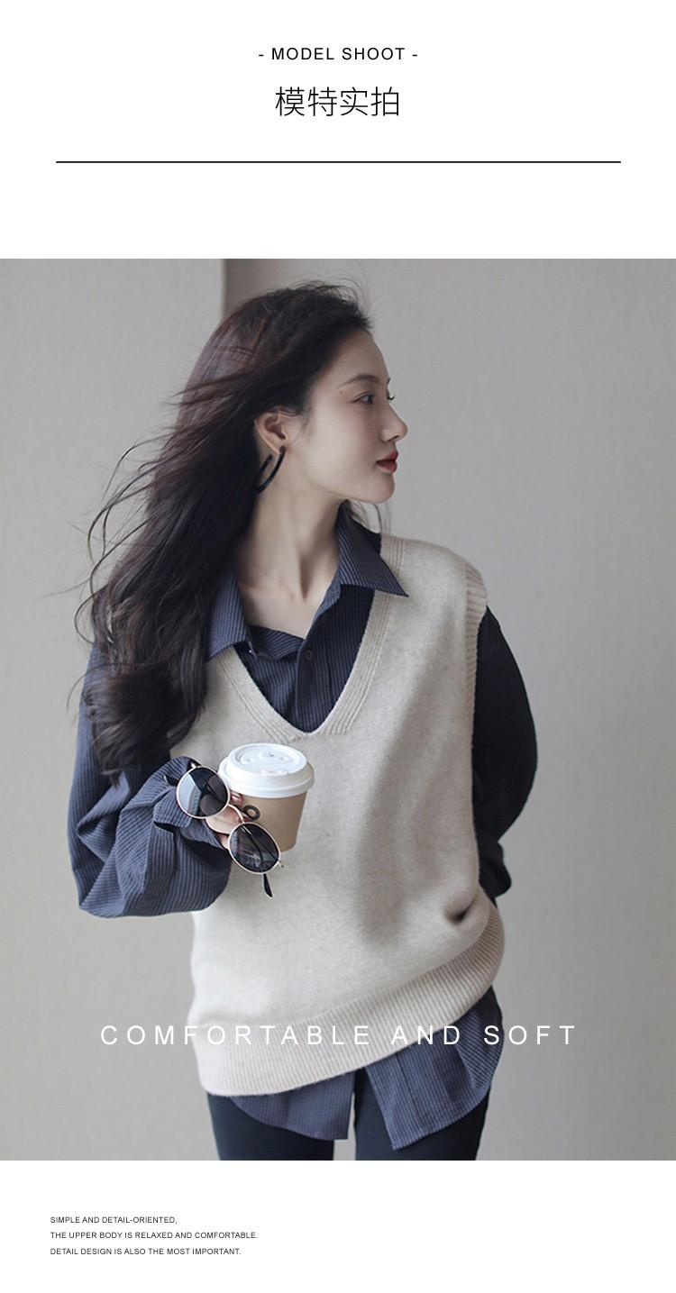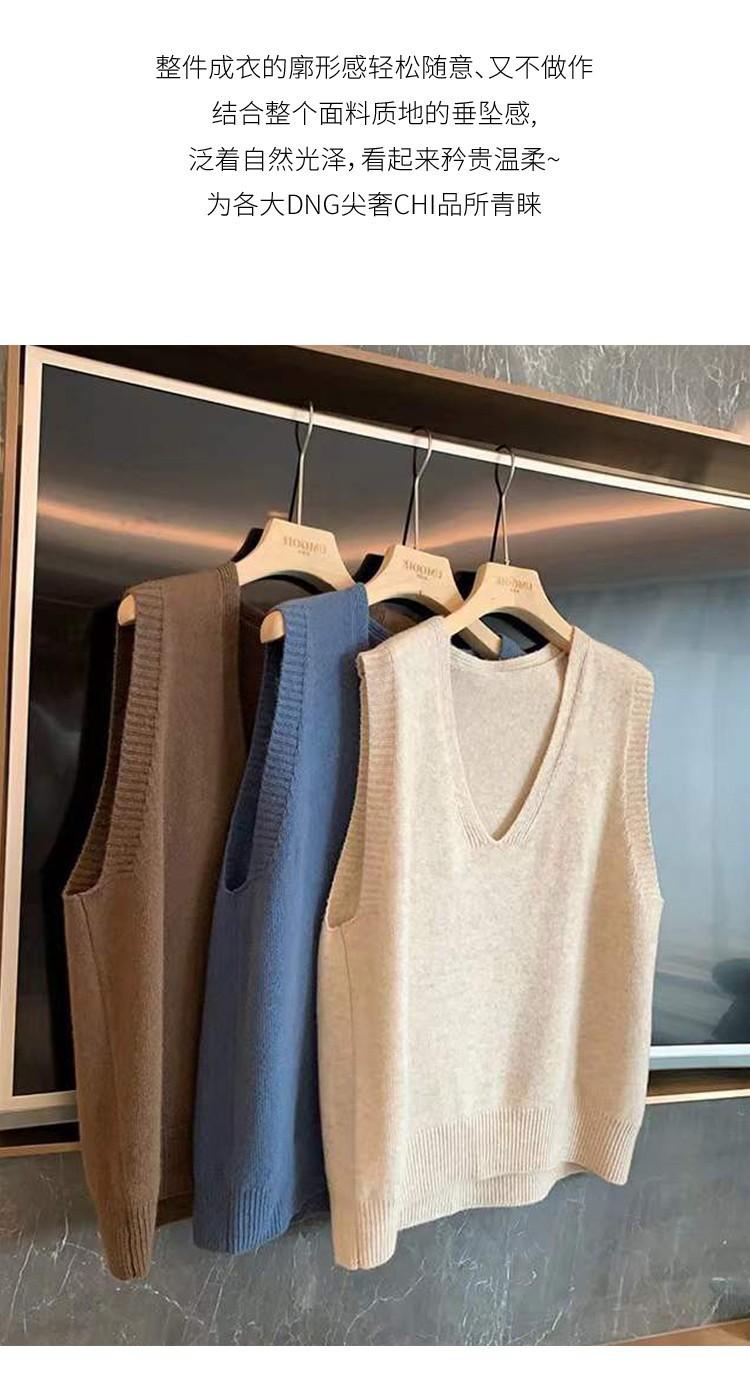 Chaleco de lana 100% pura para mujer, cuello en V, chaleco de cachemira engrosado sin mangas, suéter base apilado, chaleco tipo pulóver versátil