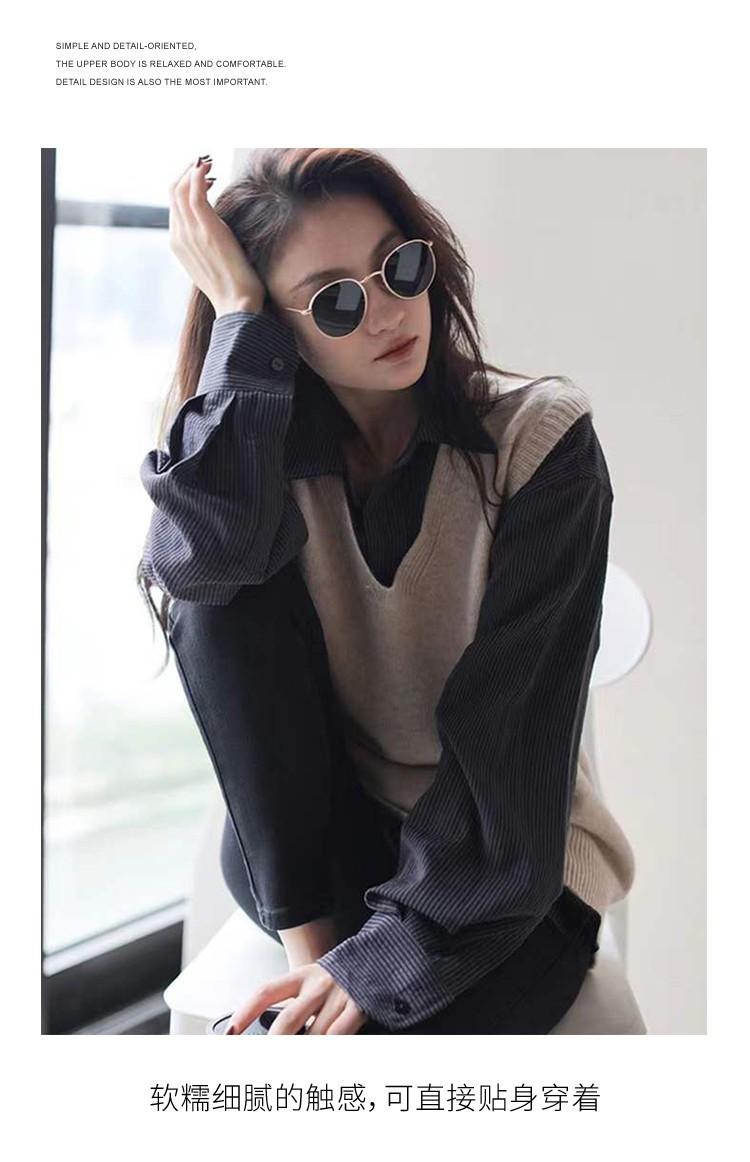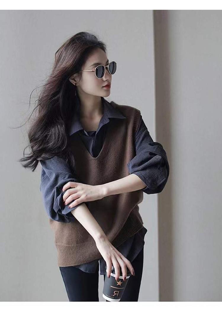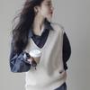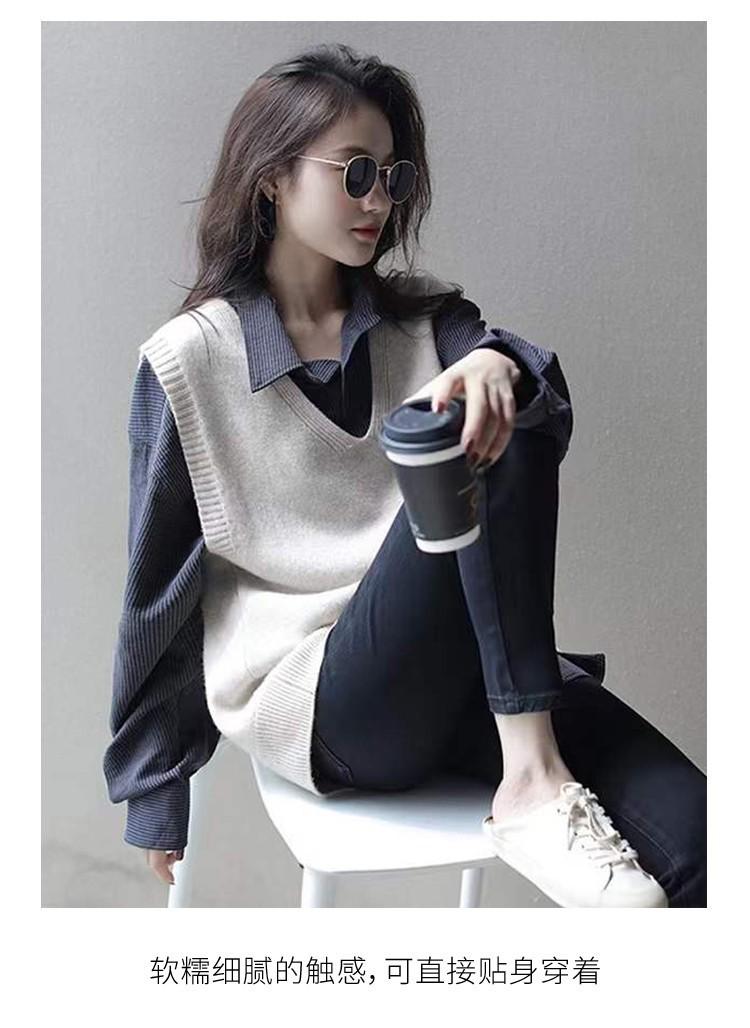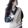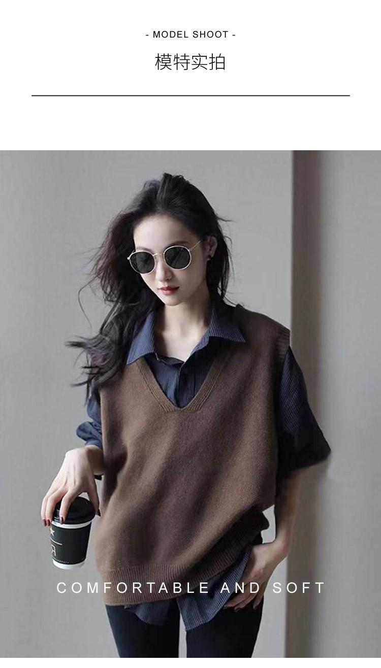 Chaleco de lana 100% pura para mujer, cuello en V, chaleco de cachemira engrosado sin mangas, suéter base apilado, chaleco tipo pulóver versátil