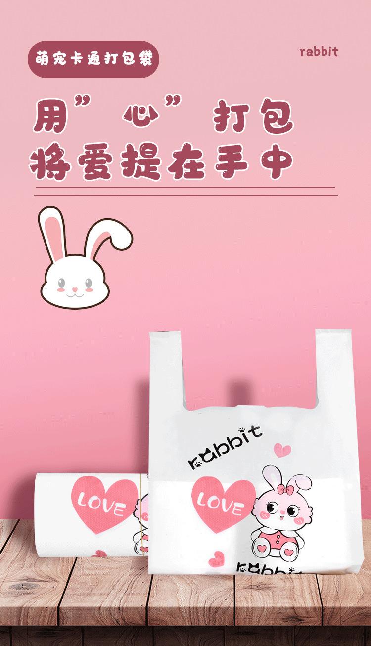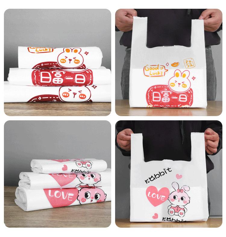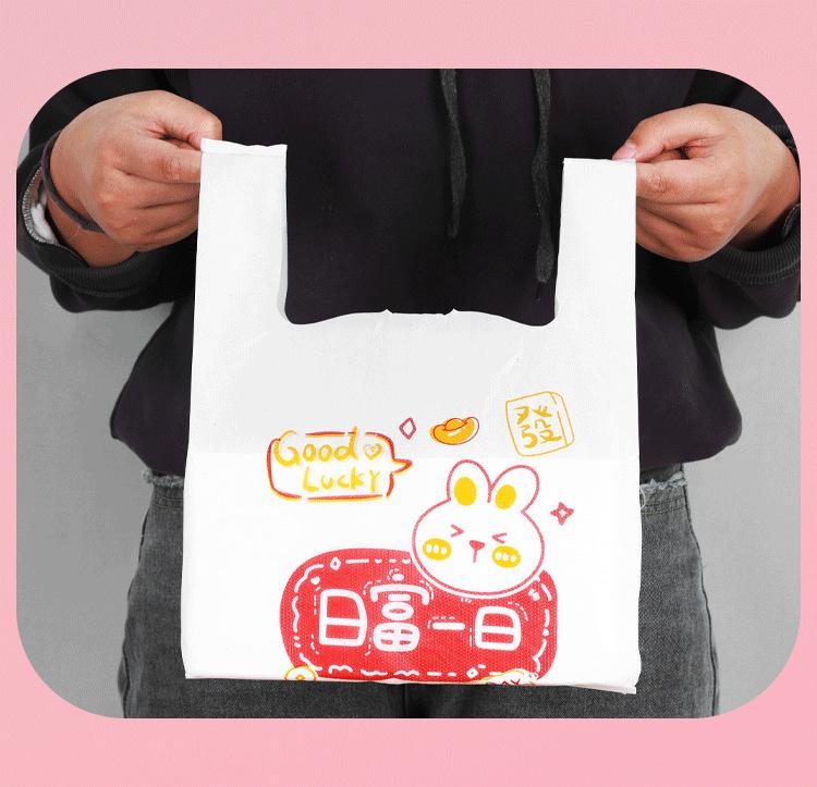 Bolsa de regalo de frutas y dulces para bodas del Día de Rifu, bolsa de plástico con bonito diseño de conejo, bolsa de plástico gruesa de nuevo material.