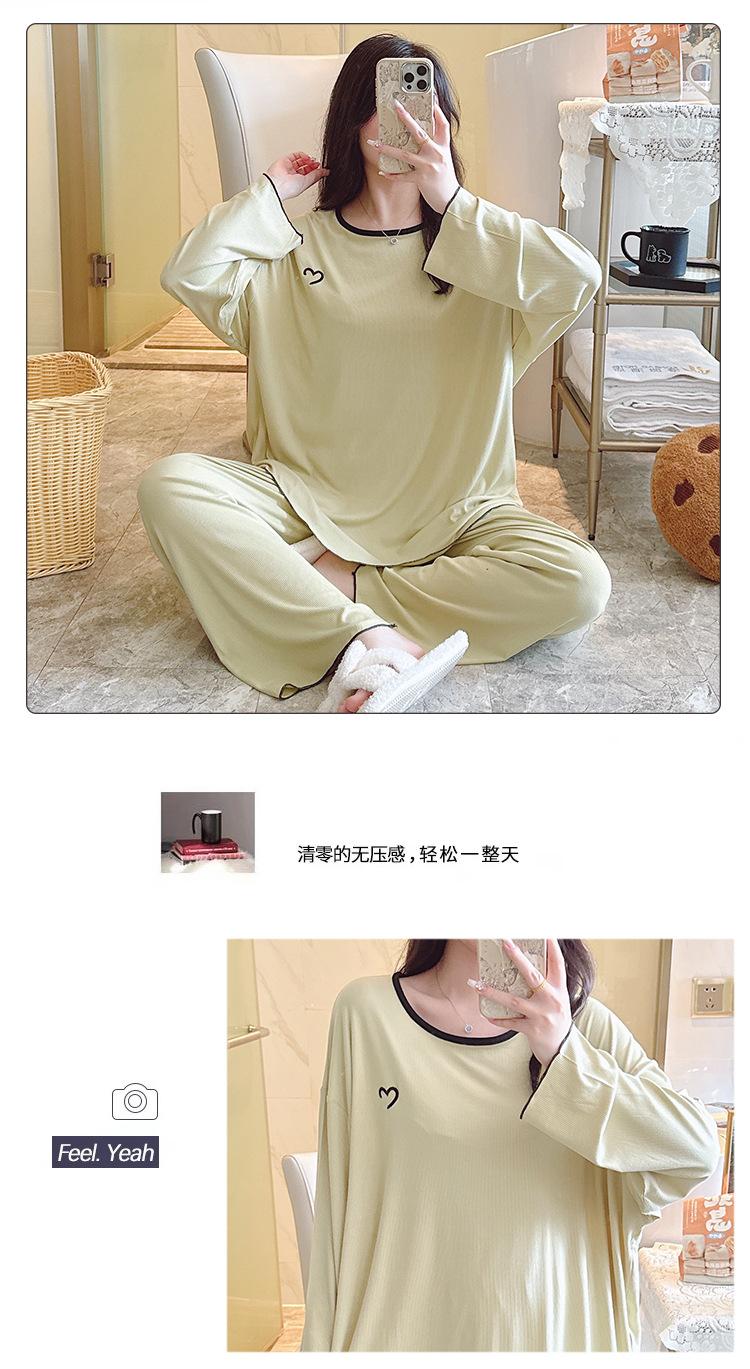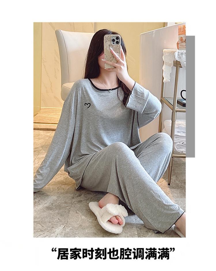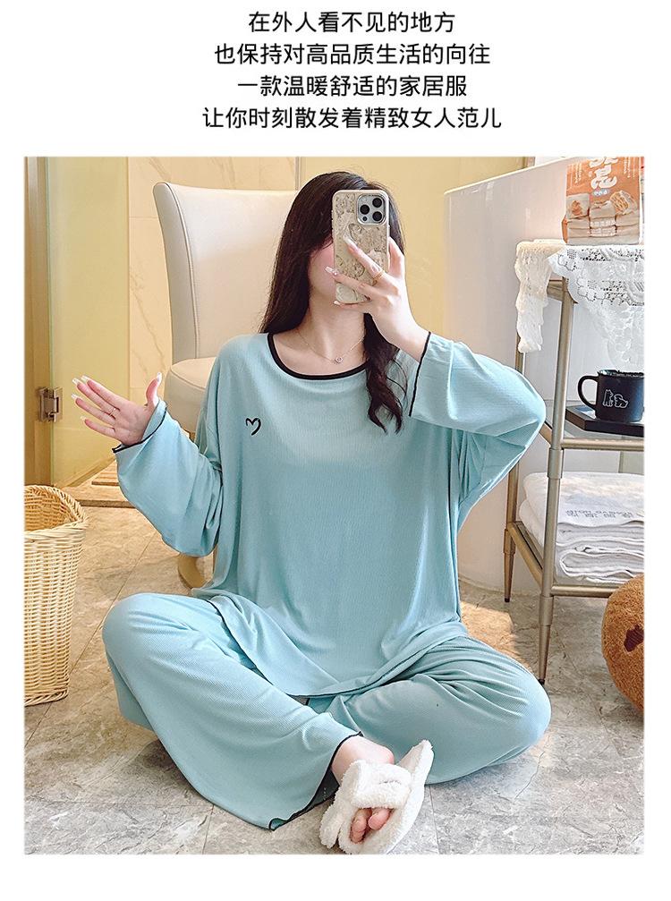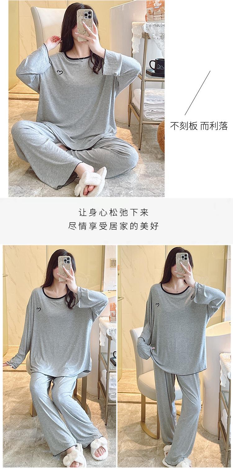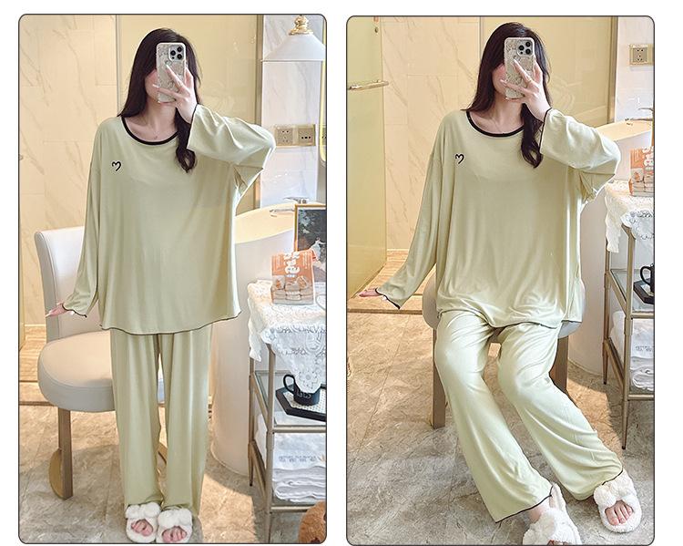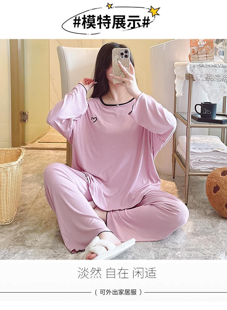 Pijama de talla grande para mujer de otoño, manga larga, cuello redondo, modal con almohadilla en el pecho, talla grande, suelto, traje de 200 jin