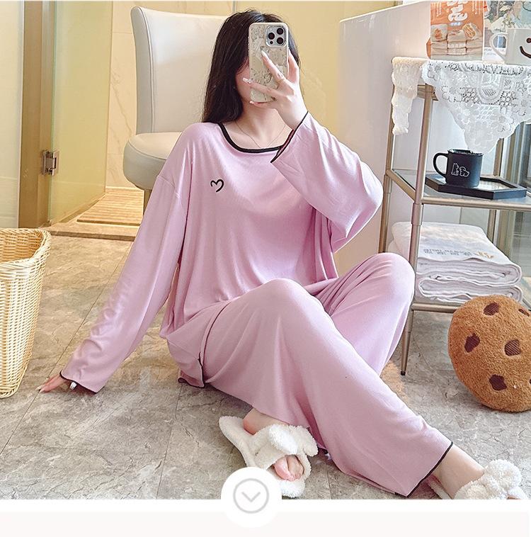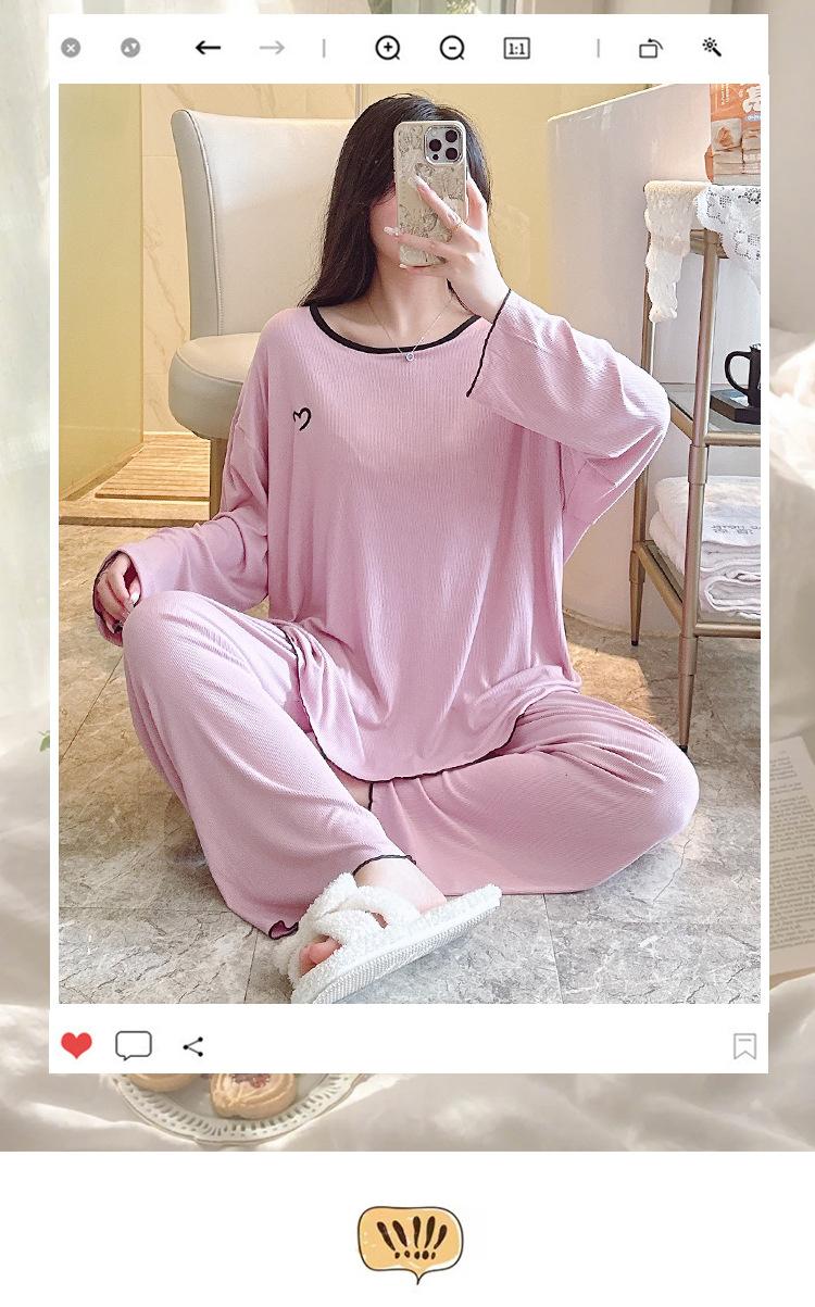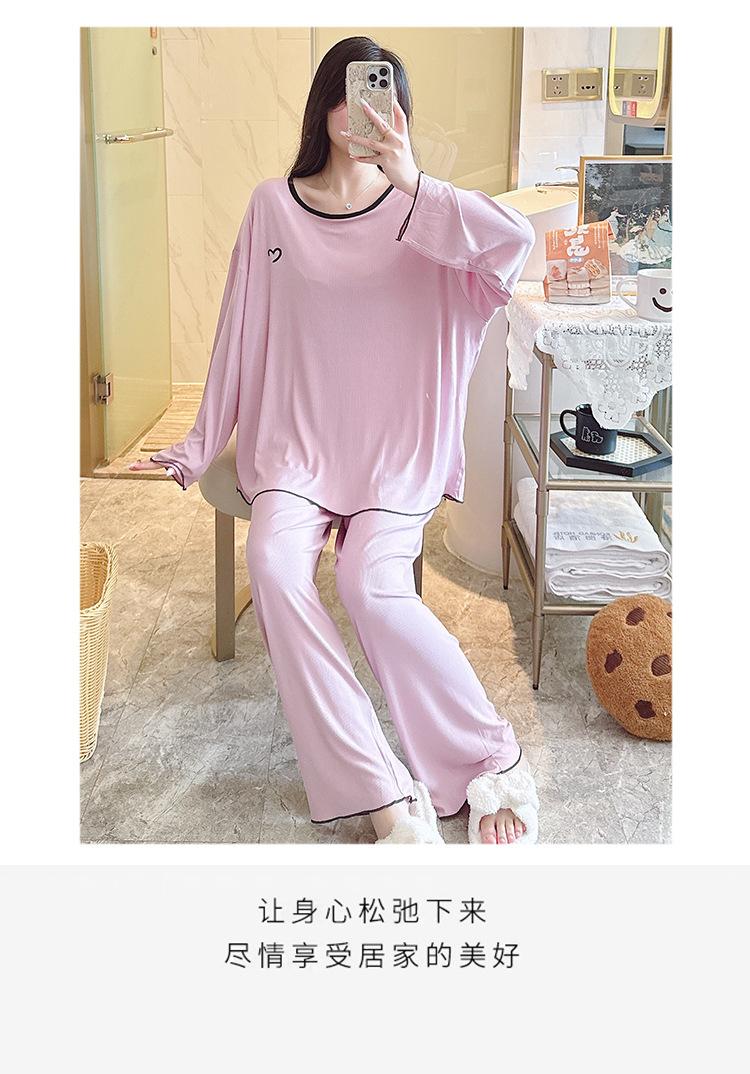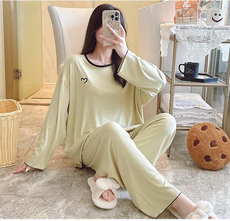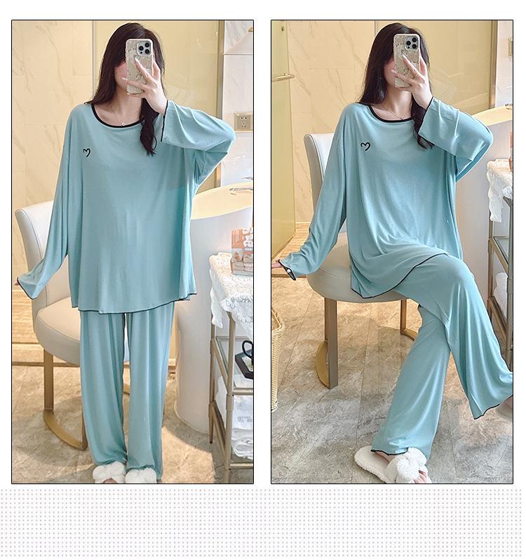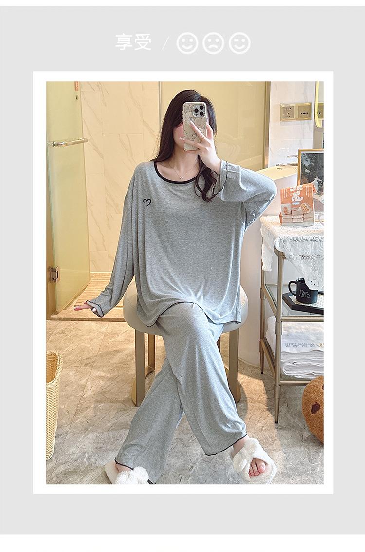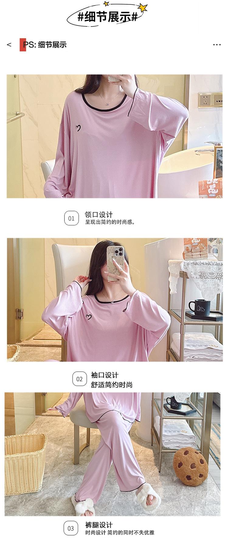 Pijama de talla grande para mujer de otoño, manga larga, cuello redondo, modal con almohadilla en el pecho, talla grande, suelto, traje de 200 jin