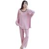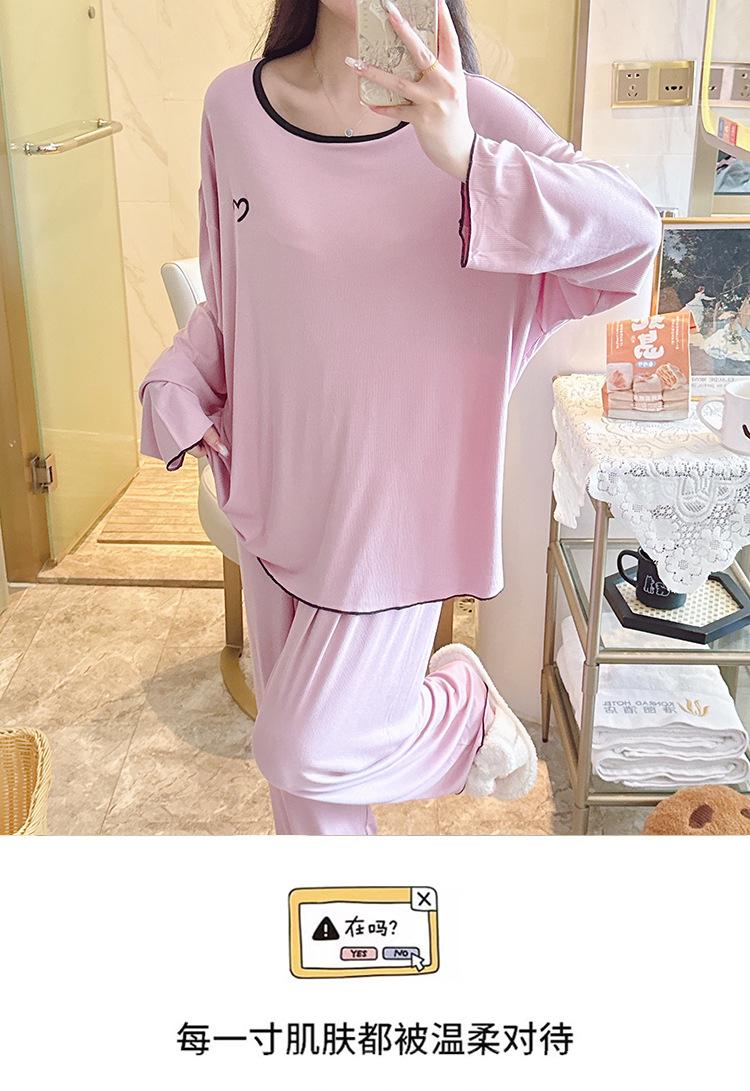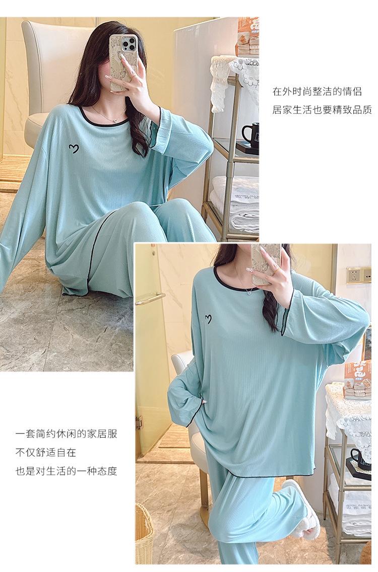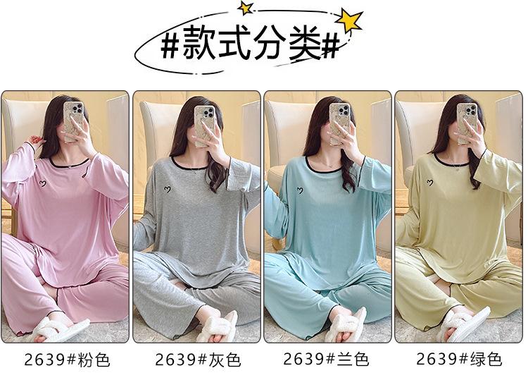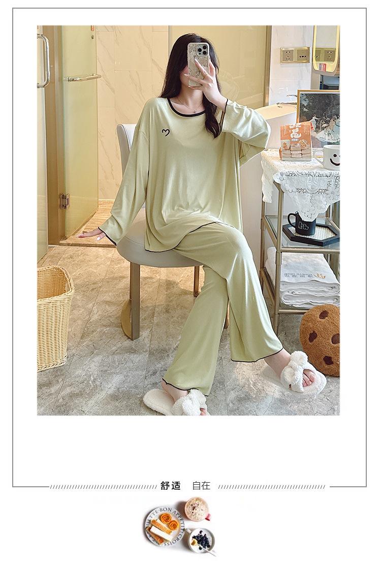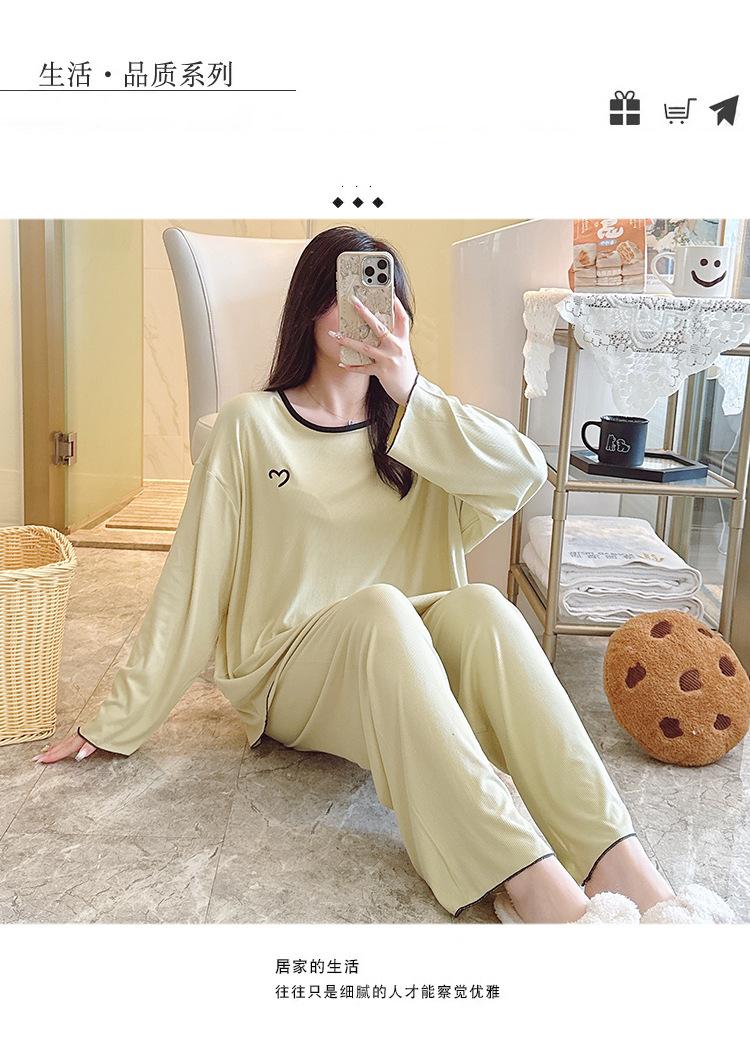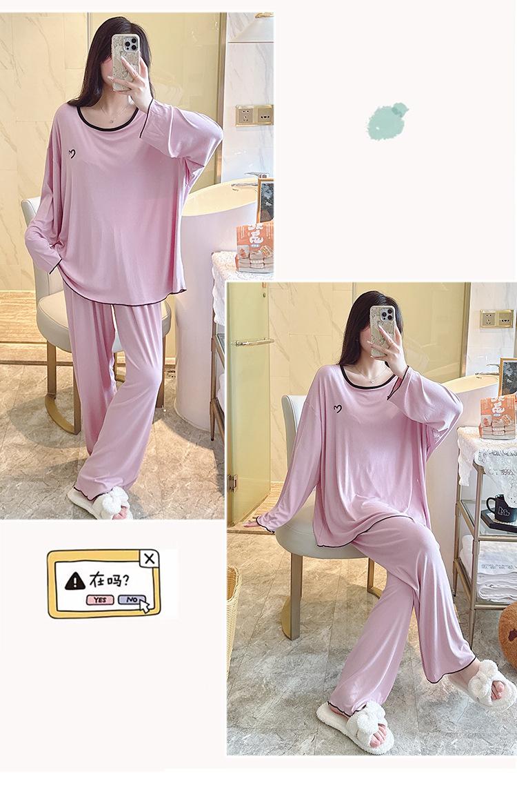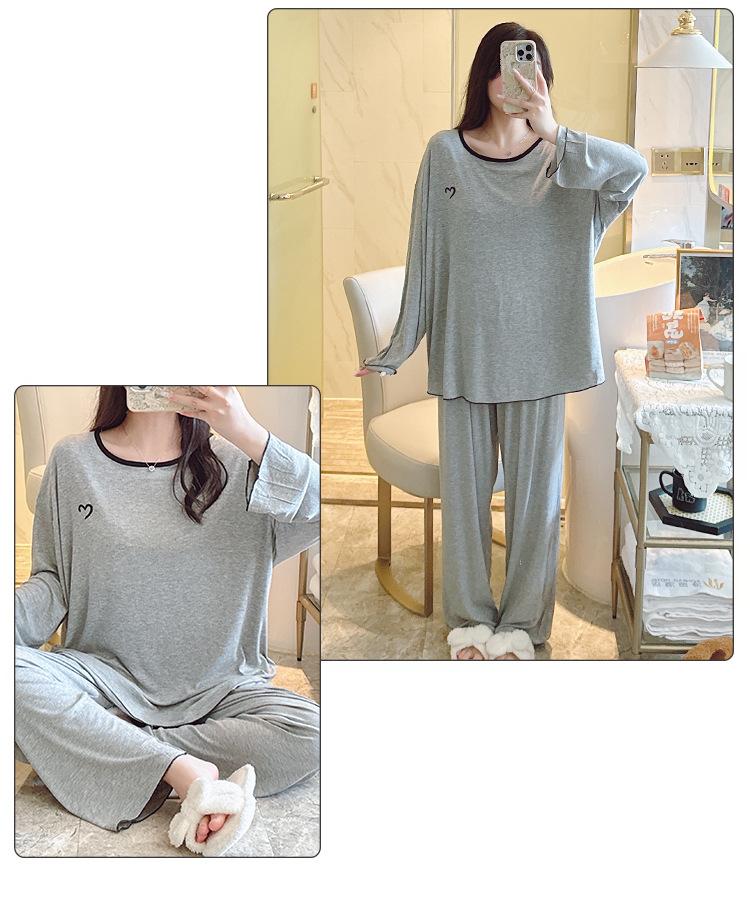 Pijama de talla grande para mujer de otoño, manga larga, cuello redondo, modal con almohadilla en el pecho, talla grande, suelto, traje de 200 jin