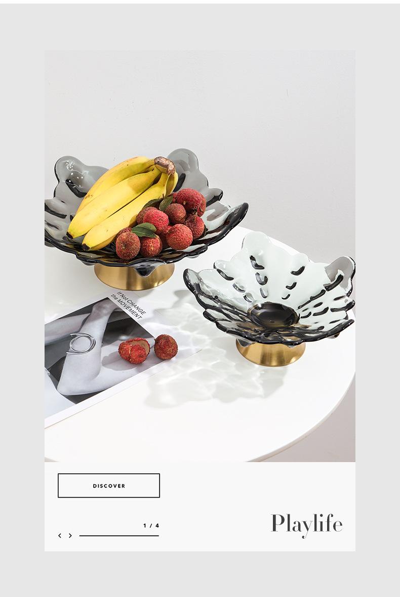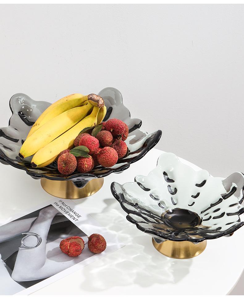 Plato de fruta de vidrio grueso de calidad, ligero, de lujo, creativo, para sala de estar, banquete, mesa de centro para el hogar, plato grande y pequeño para refrigerios y frutas secas