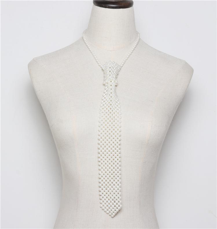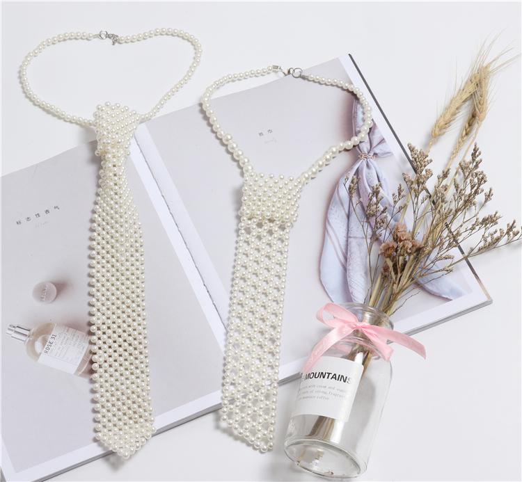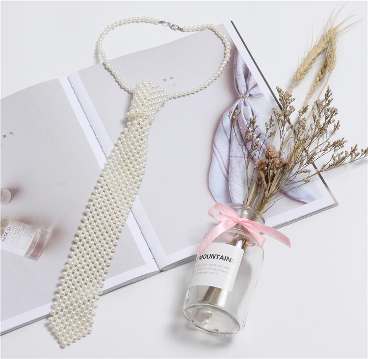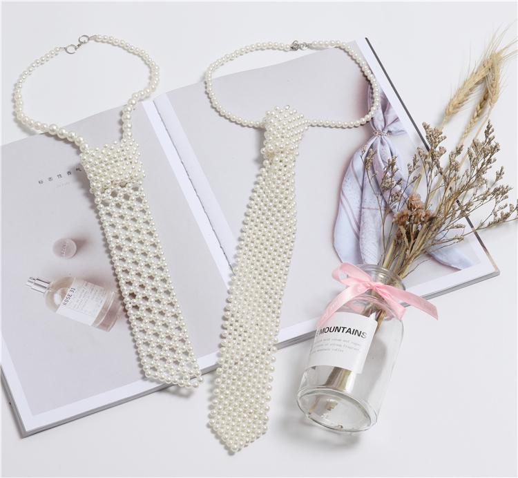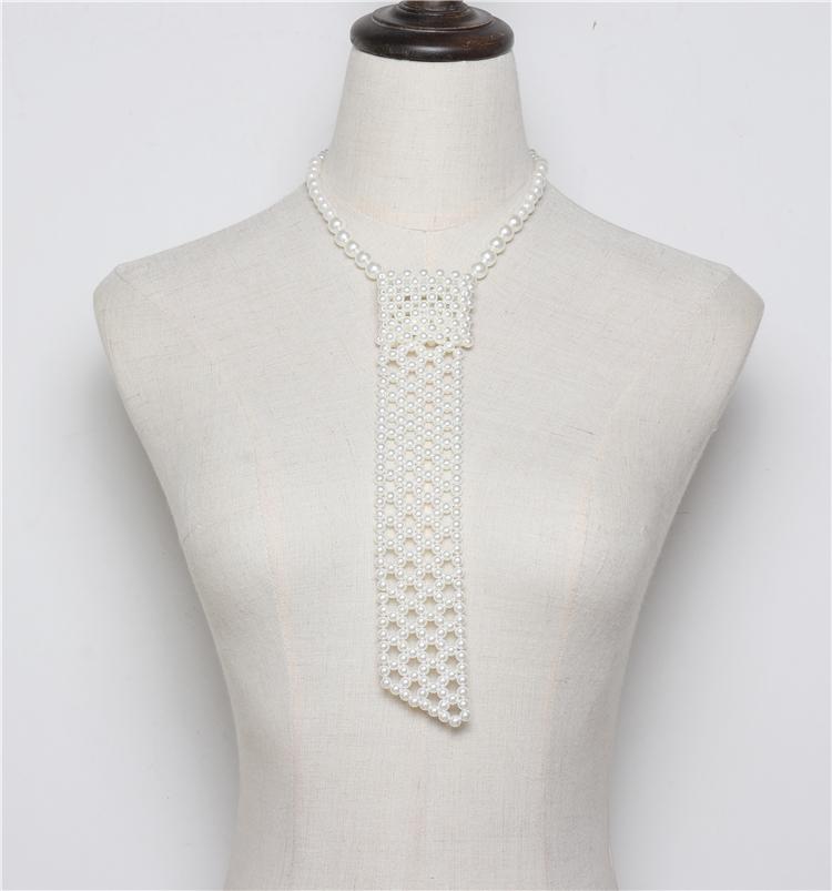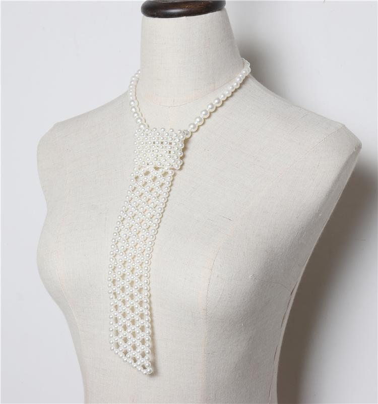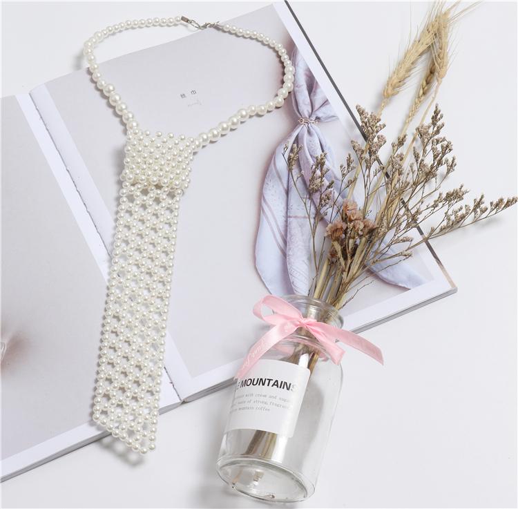 2019 nueva moda retro tejida a mano versátil corbata de perla hueca forma cóncava con collar de joyería
