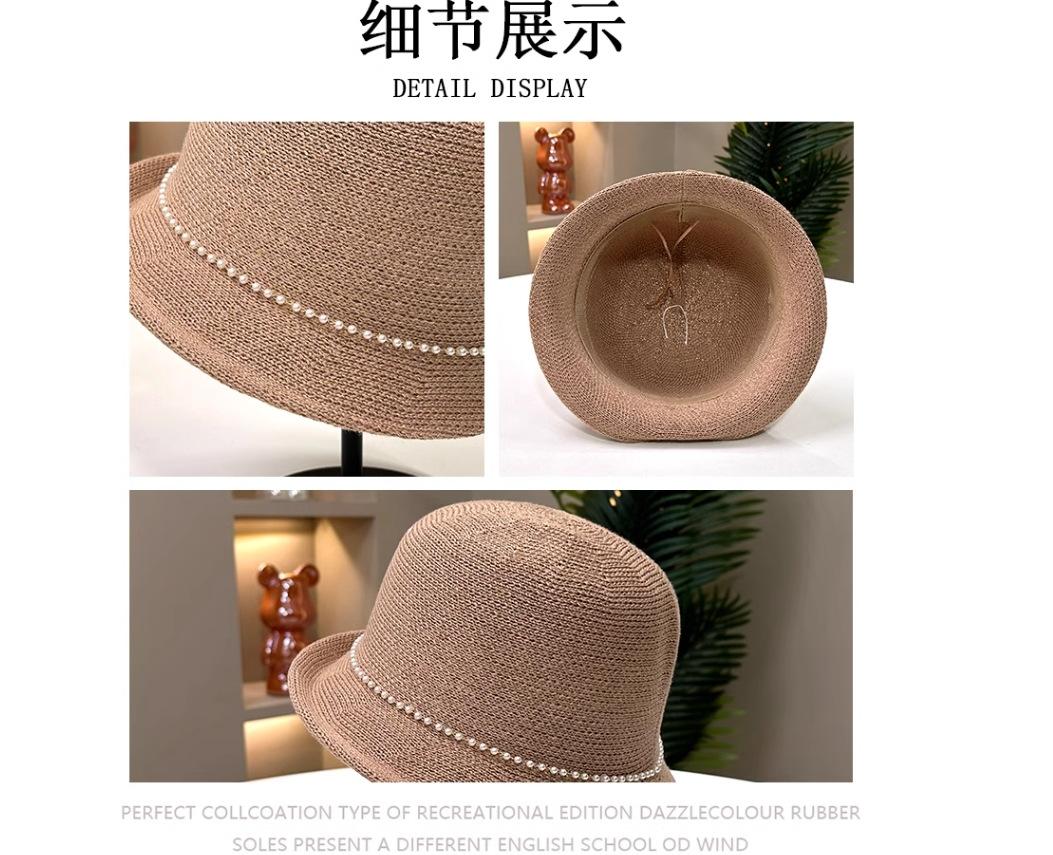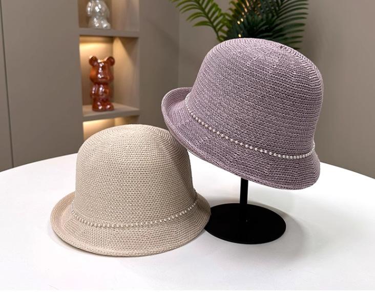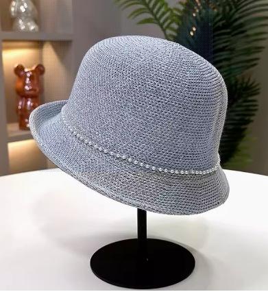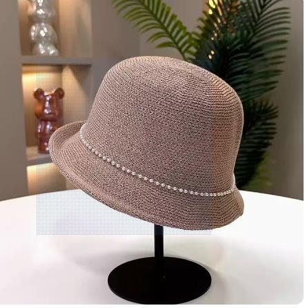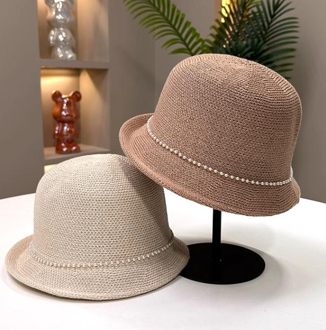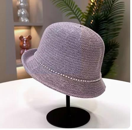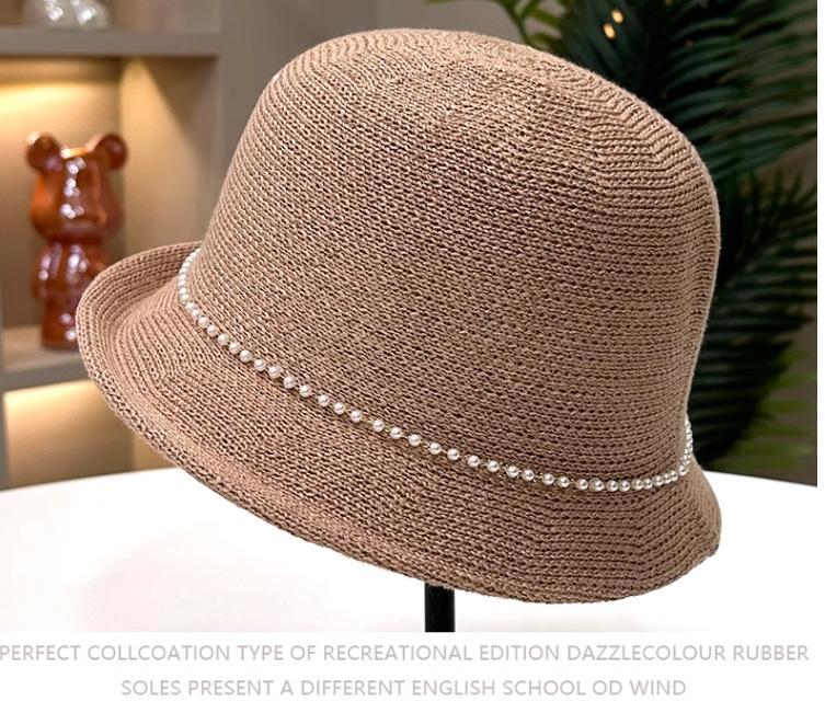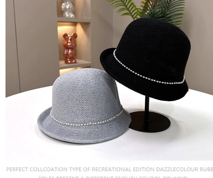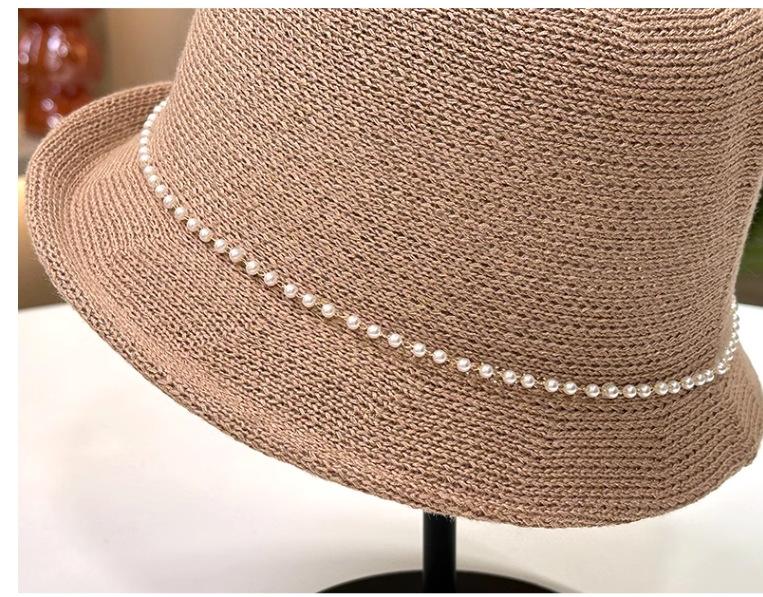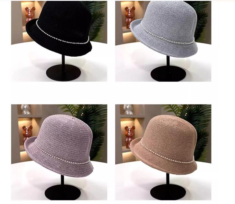 Sombrero Cubo de Verano para Mujer Delgado Enrollable Sombrero para Mujer Estilo Francés Plegable Perla Sombrero de Sol Herburn Sombrero Casual