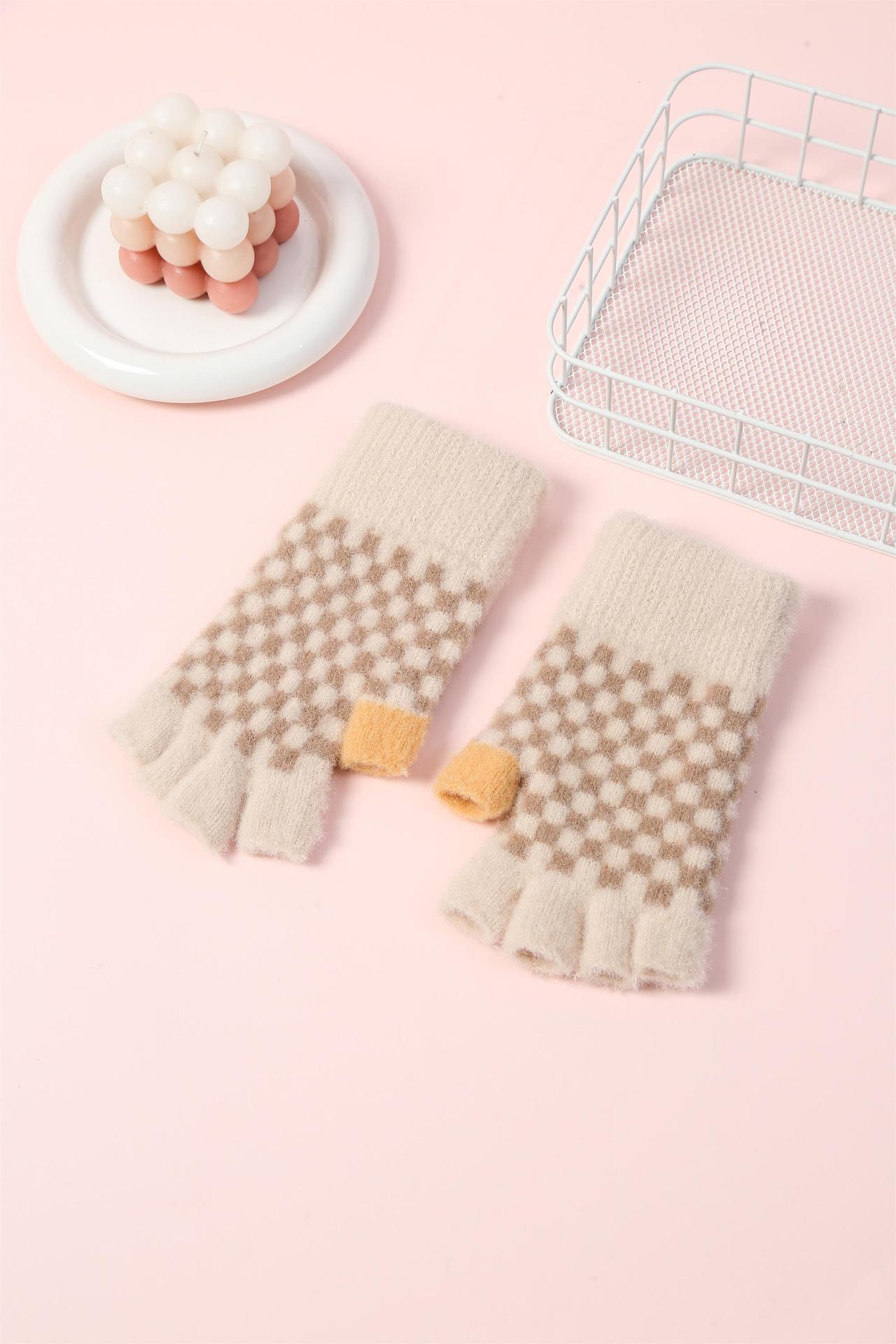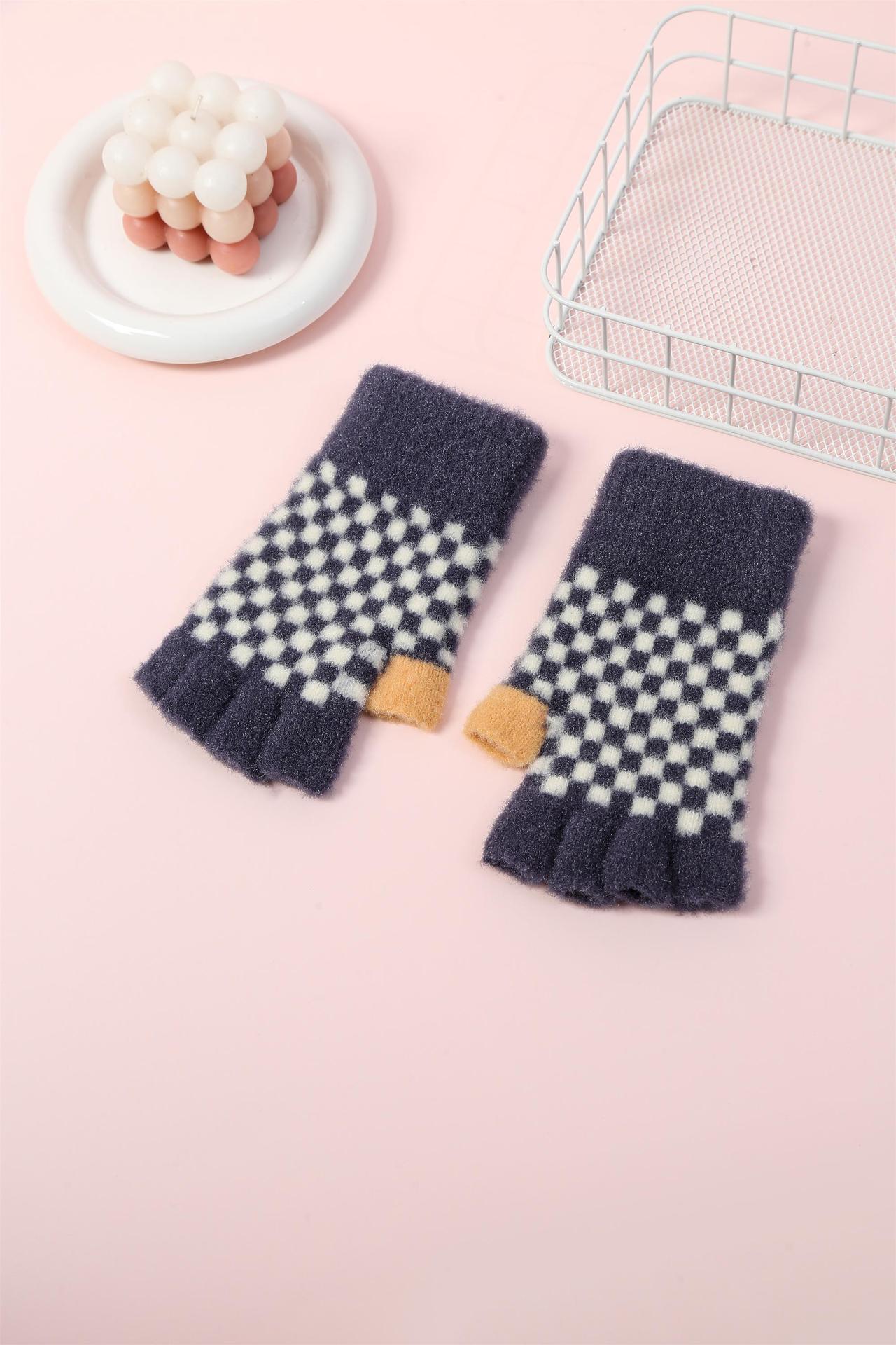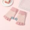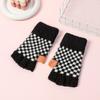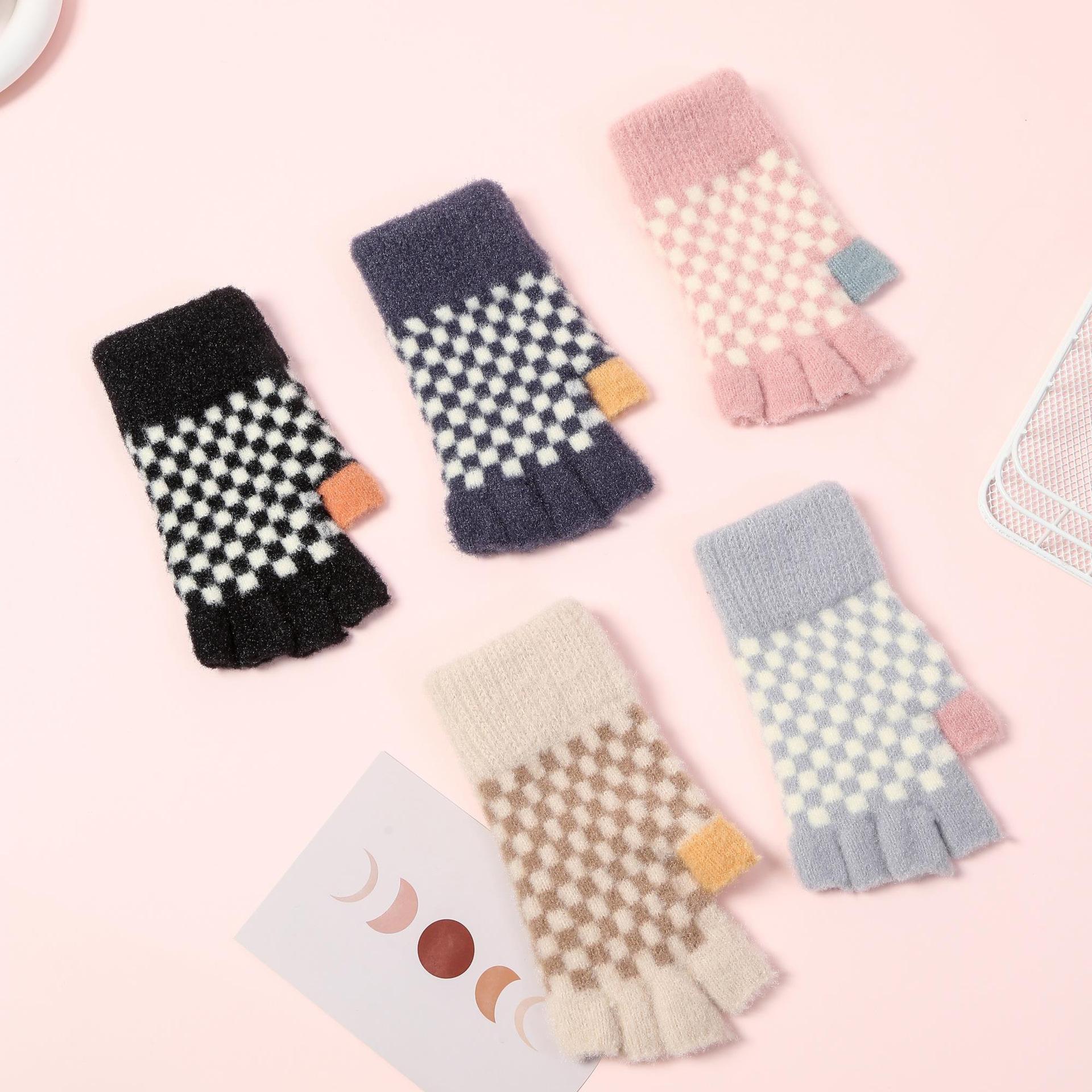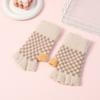 Guantes de Medio Dedo para Mujer de Otoño e Invierno con Diseño de Tablero de Ajedrez, Estilo Coreano Tejido a la Moda, Cálidos, Tejidos, para Exterior, para Montar, Táctiles