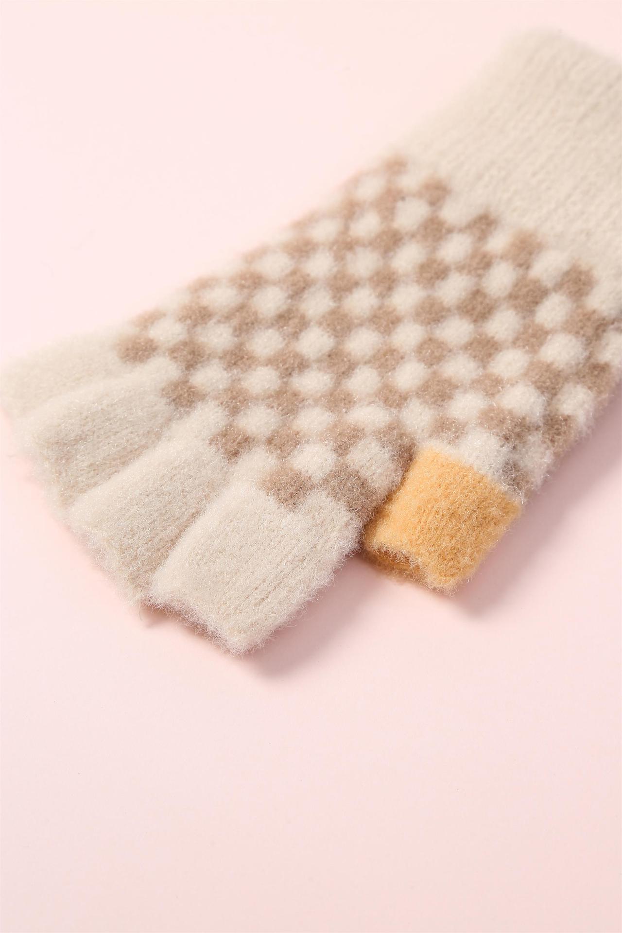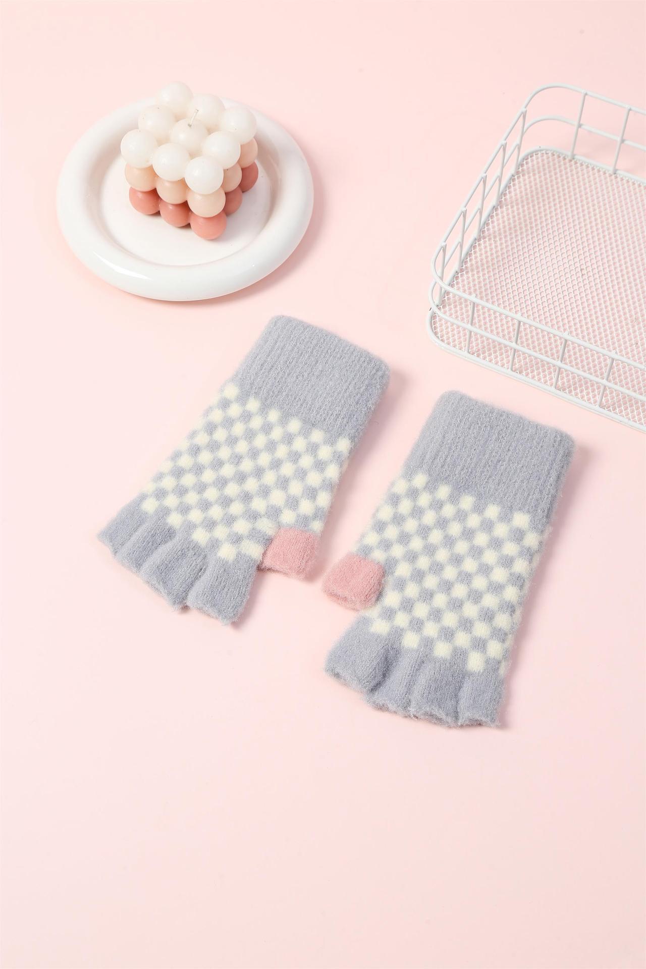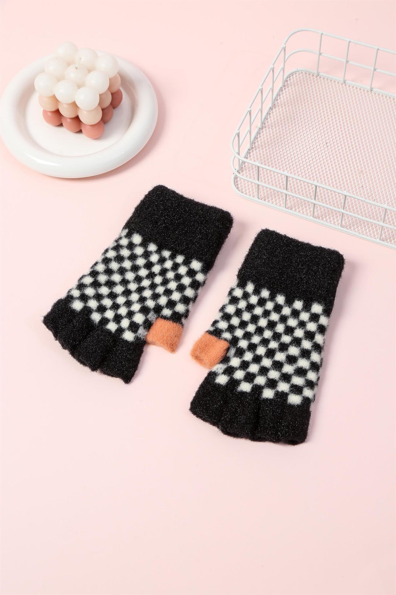 Guantes de Medio Dedo para Mujer de Otoño e Invierno con Diseño de Tablero de Ajedrez, Estilo Coreano Tejido a la Moda, Cálidos, Tejidos, para Exterior, para Montar, Táctiles