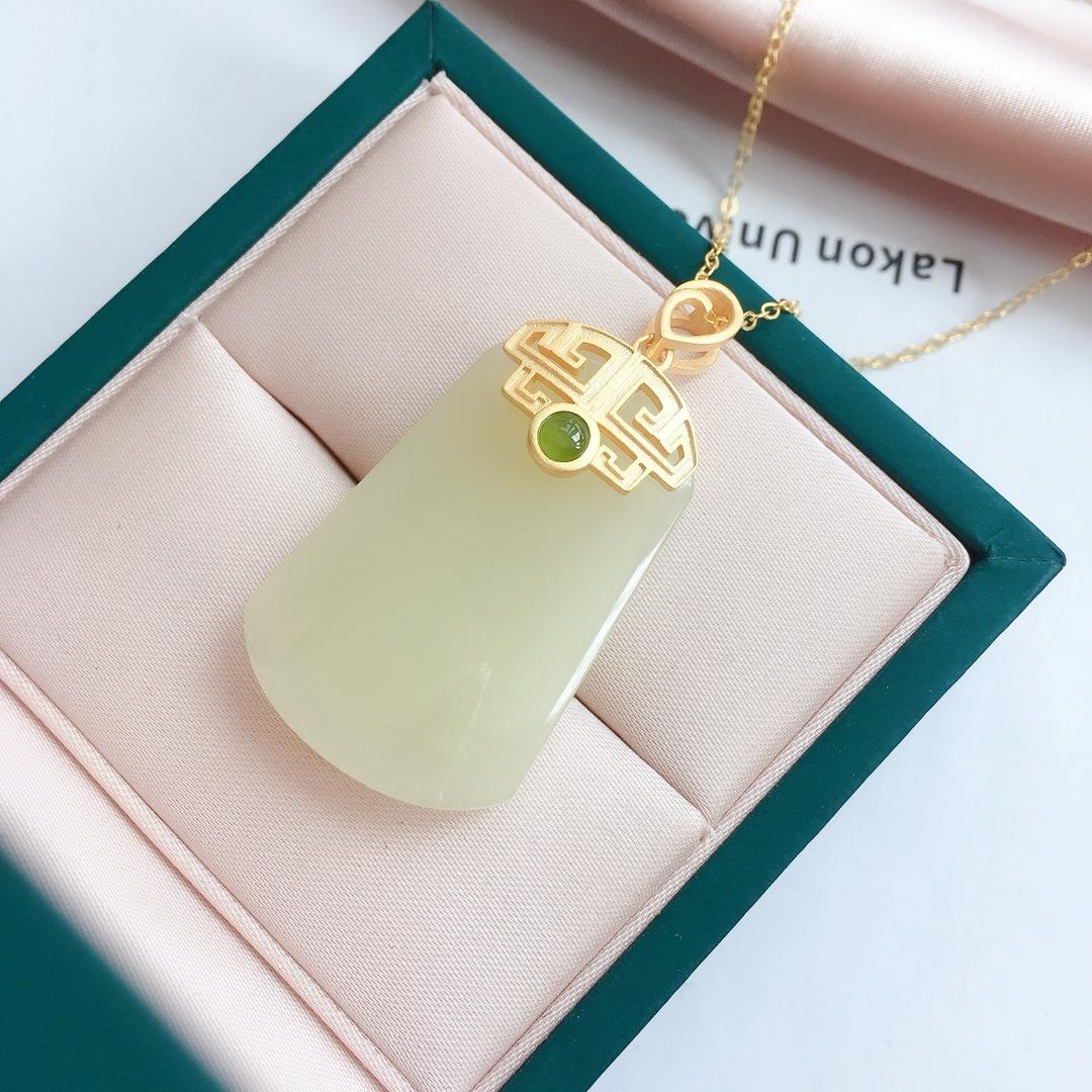 Colgante de jade hetiano de la suerte para mujer, joyería de plata 925, regalo de vacaciones de verano 2021, collar de nicho ligero de lujo