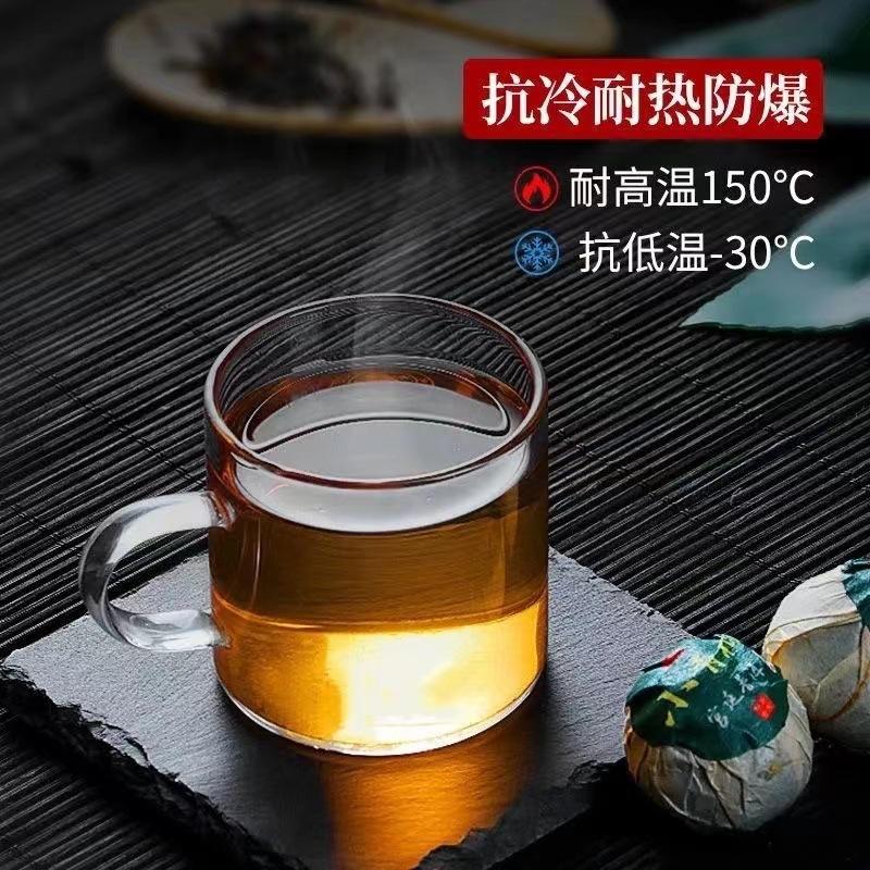 Taza de té de vidrio pequeña con asa, taza de té de vidrio, taza de asa pequeña, juego de té de kung fu simple, vidrio grueso resistente al calor