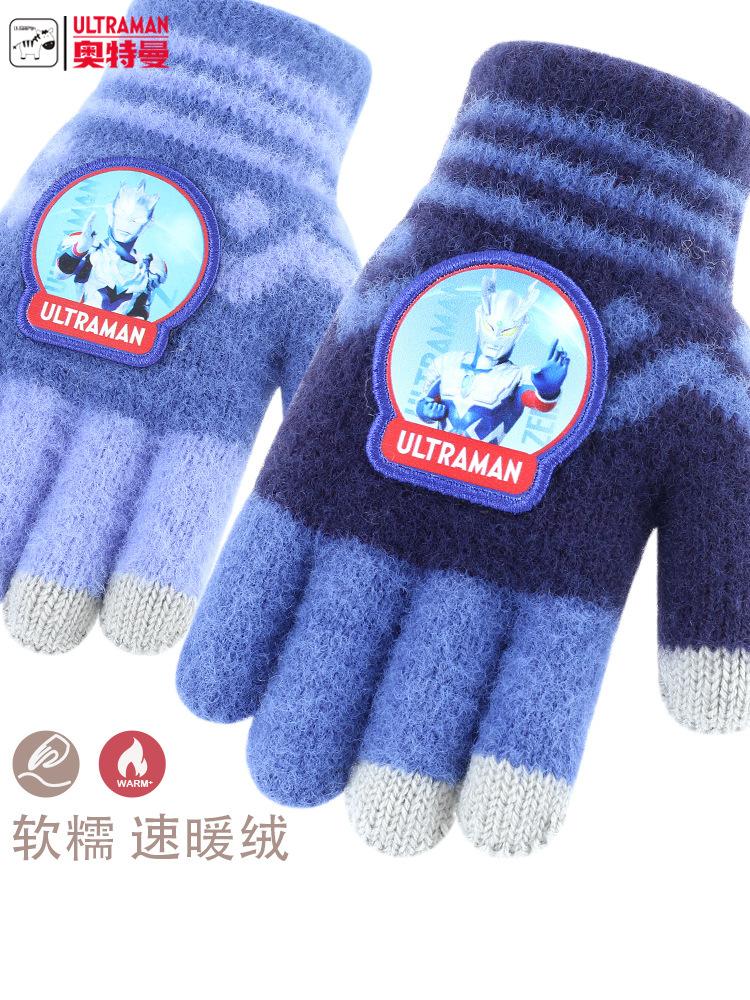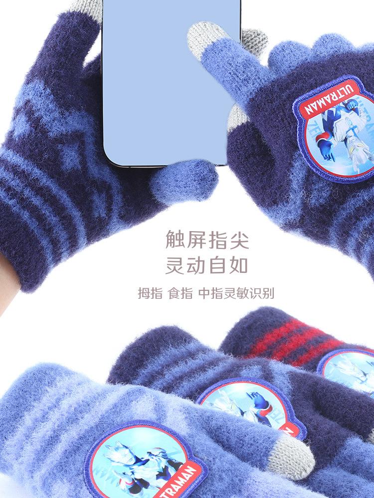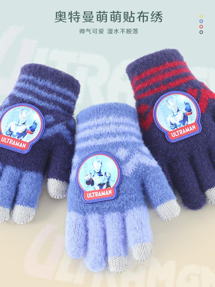 Guantes para Niños Invierno Cálido Tejido de Lana Espesado Tejido de Cinco Dedos Cubierta para Niños y Niños