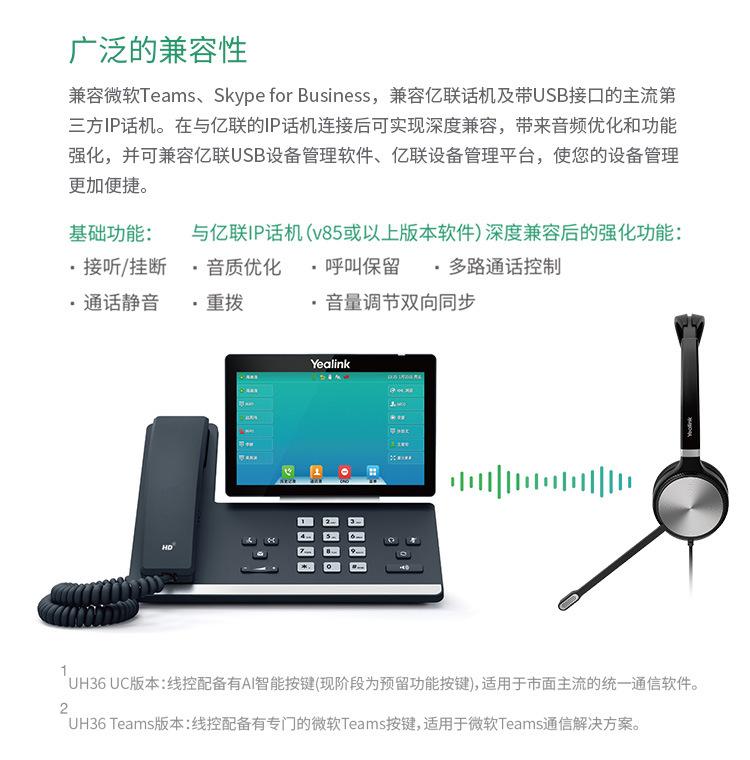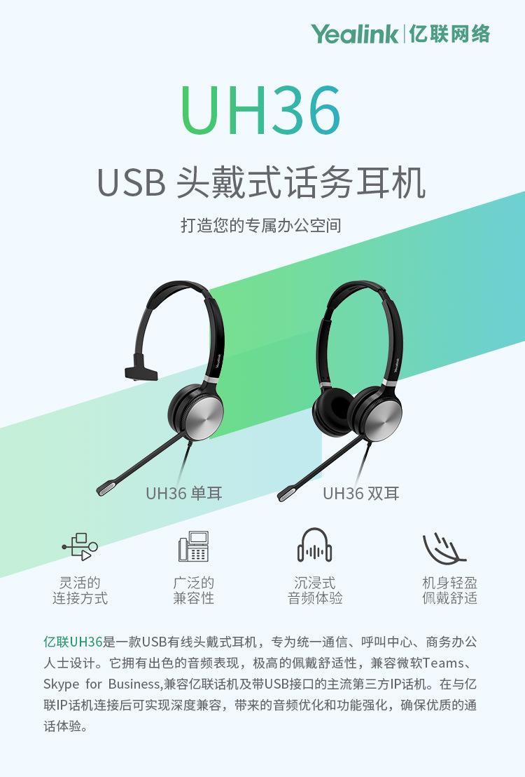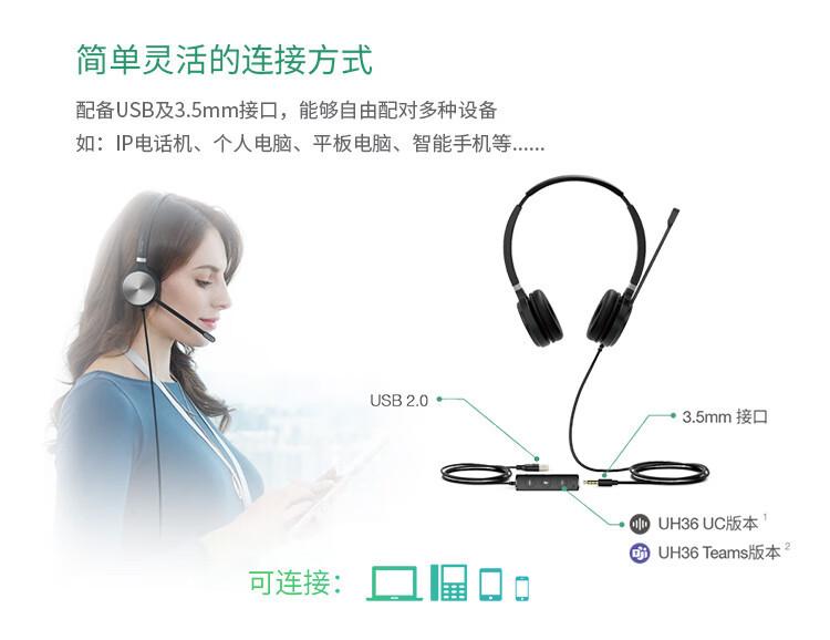 Auriculares Yealink Yilian para oficina de atención al cliente, centro de llamadas de comunicación unificada, UH36 Teams