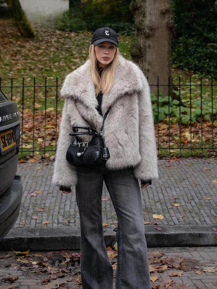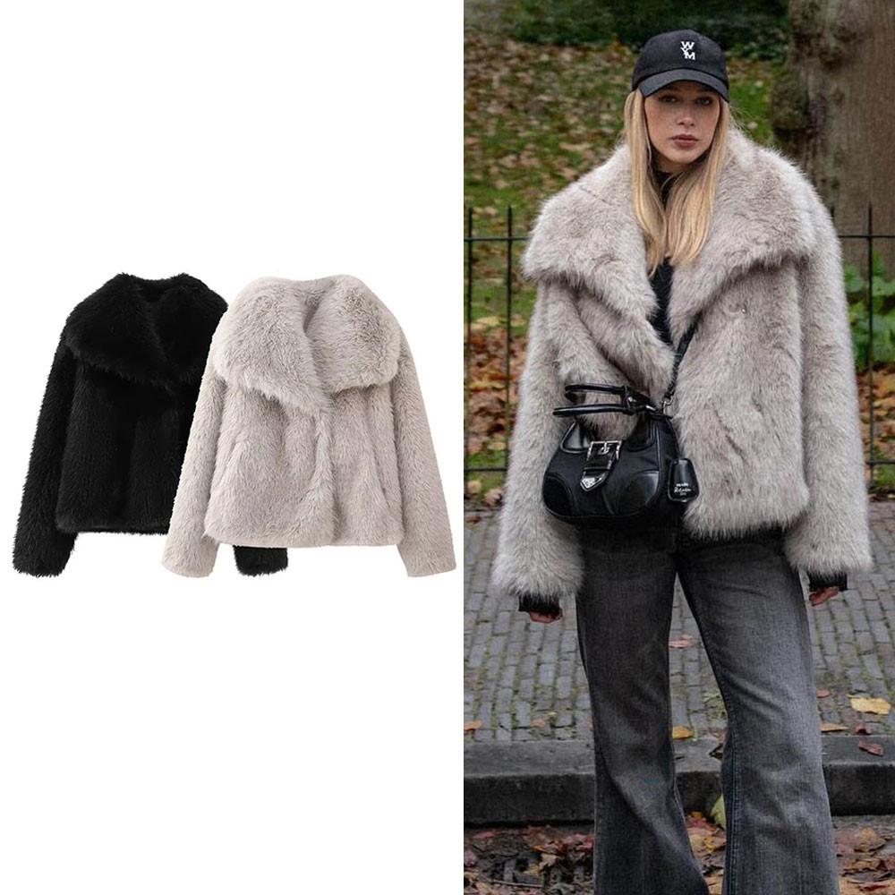 Abrigo de cuero nuevo de otoño e invierno europeo y americano para mujer de talla grande Toca top corto de lana artificial en stock