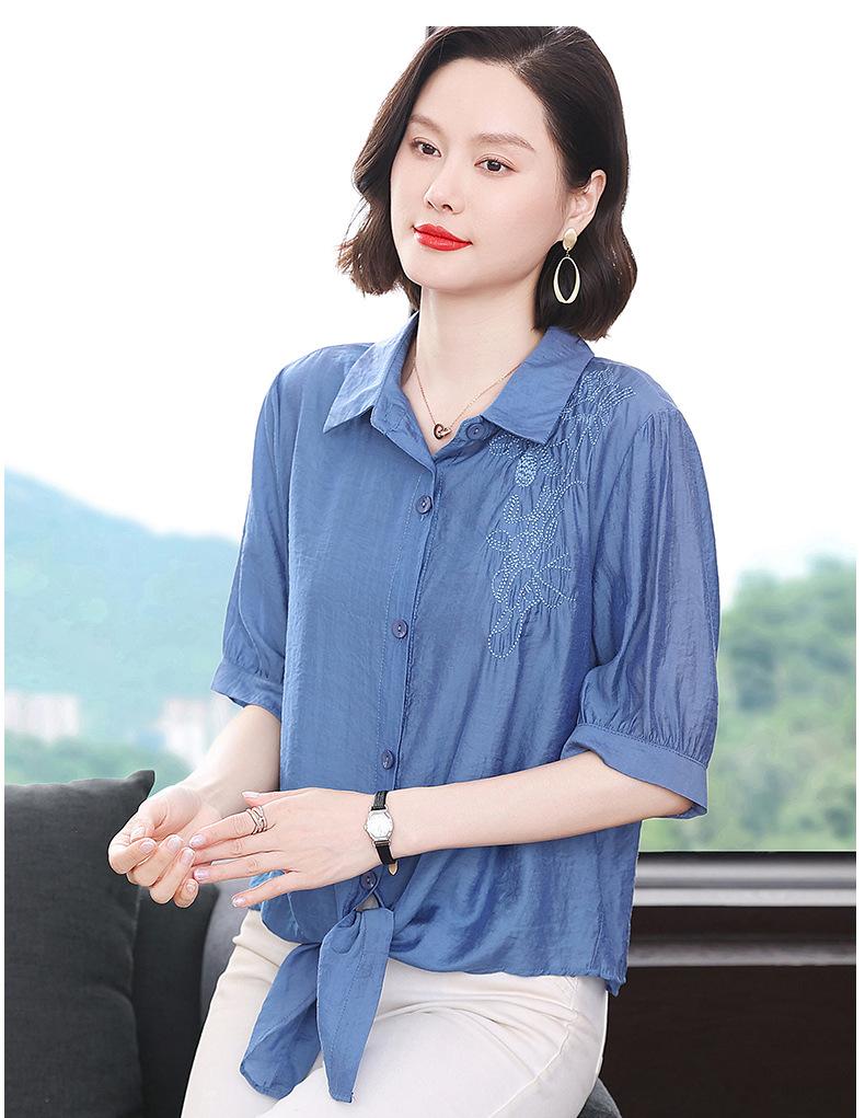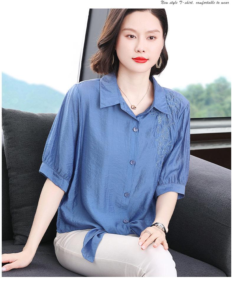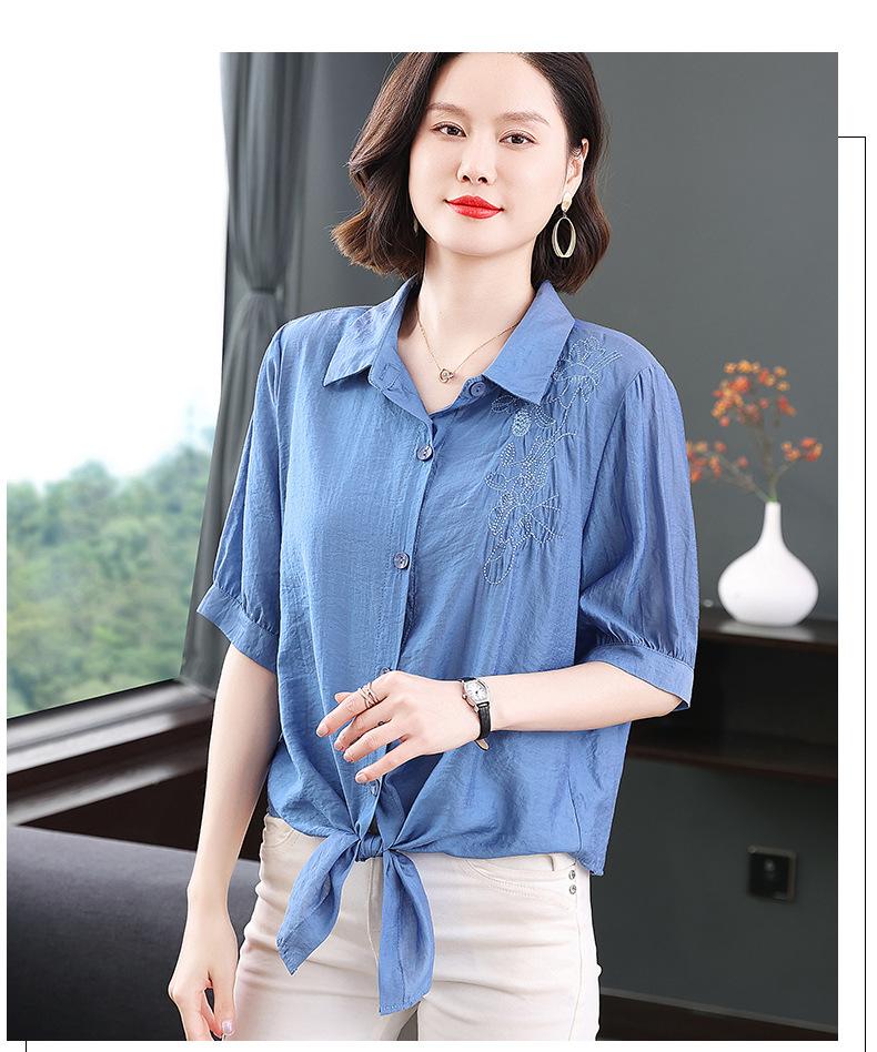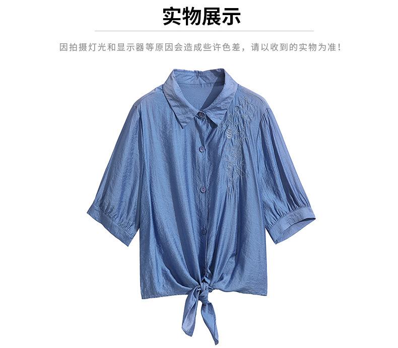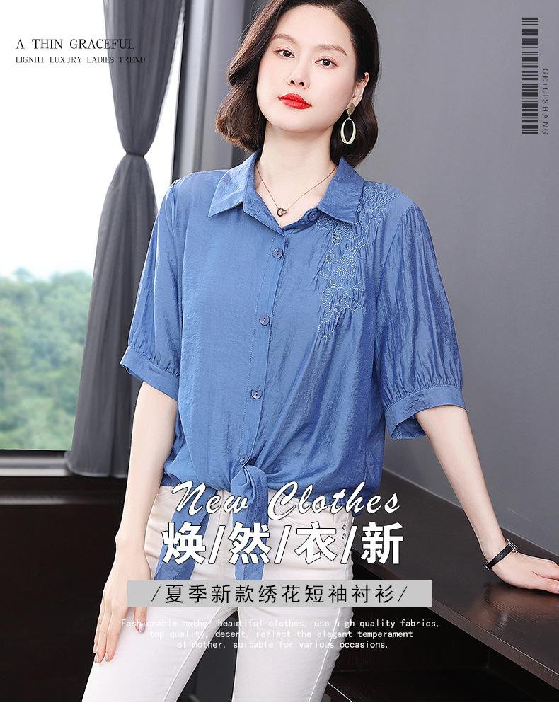 Camisa bordada para mujer, verano 2024, nueva primavera y otoño, estilo occidental, elegante, camisa pequeña de manga corta