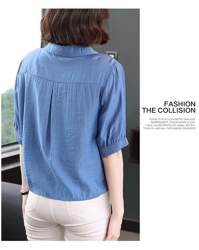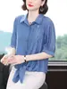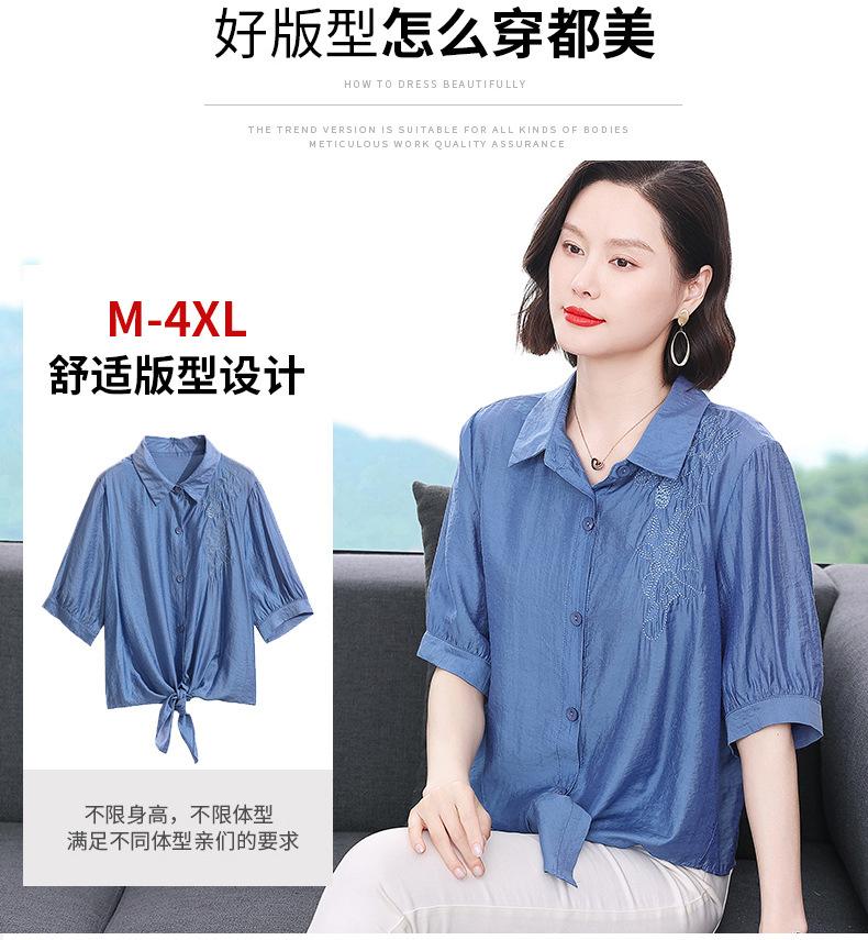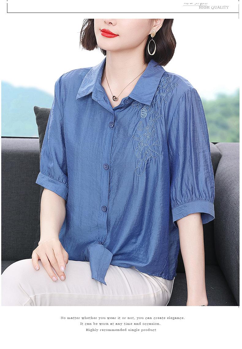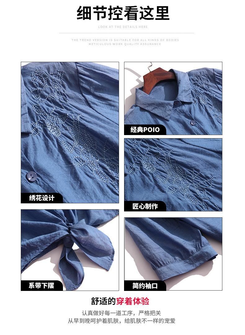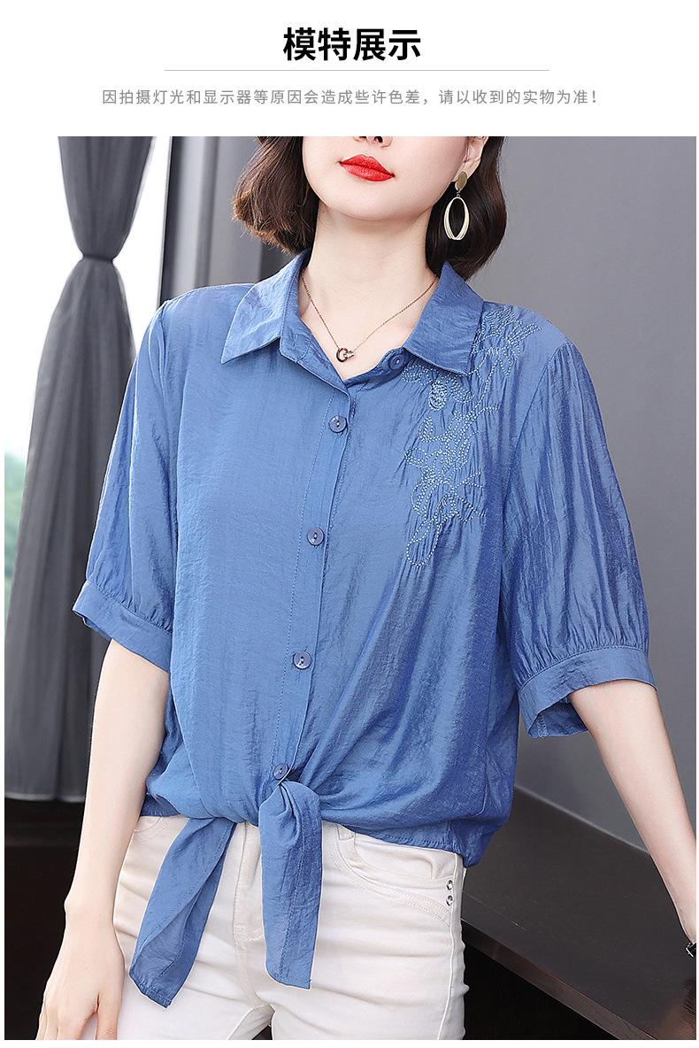Camisa bordada para mujer, verano 2024, nueva primavera y otoño, estilo occidental, elegante, camisa pequeña de manga corta