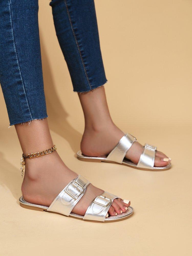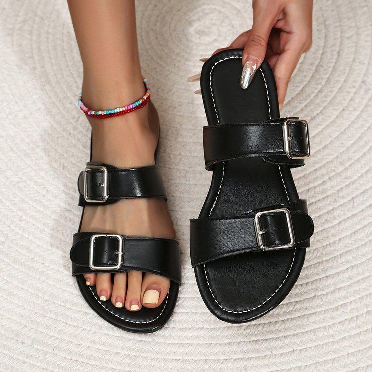 Comercio exterior transfronterizo 2023 Europeo y Americano nuevo de una tira plano cómodo combinable simple zapatos de playa hebilla de cinturón hueca para mujer