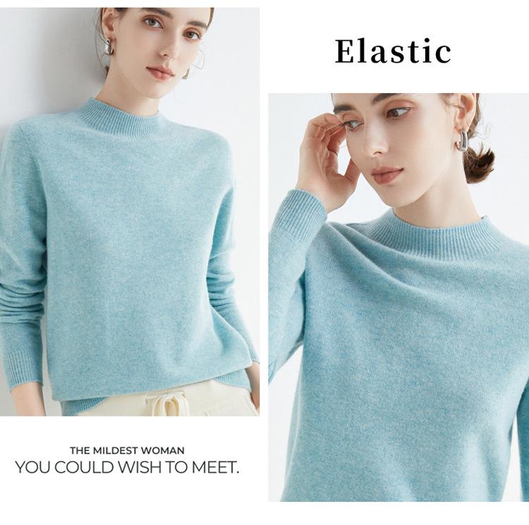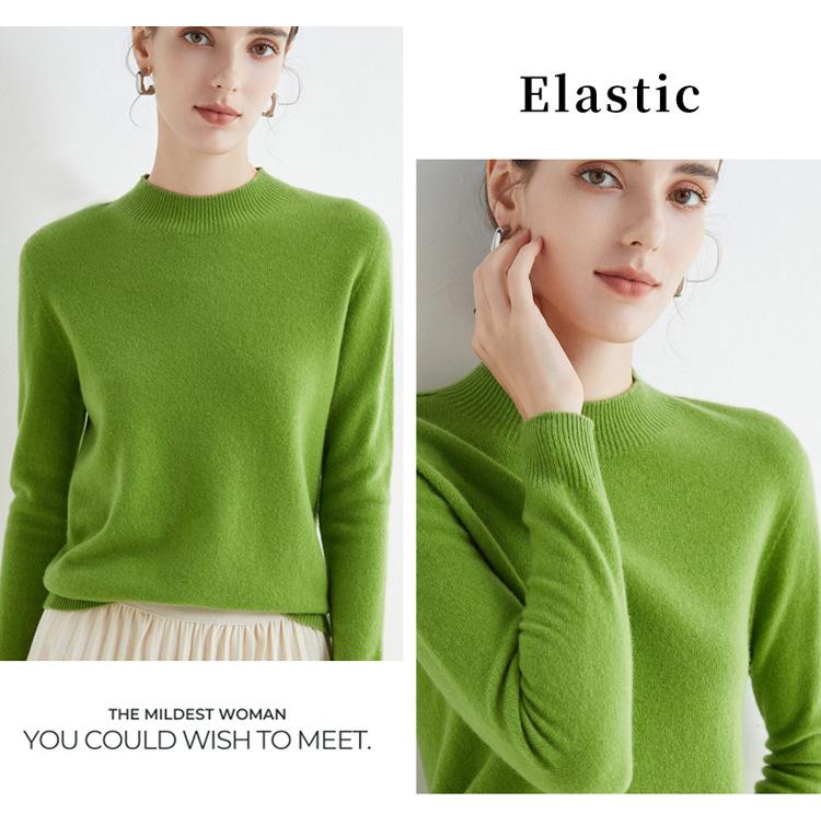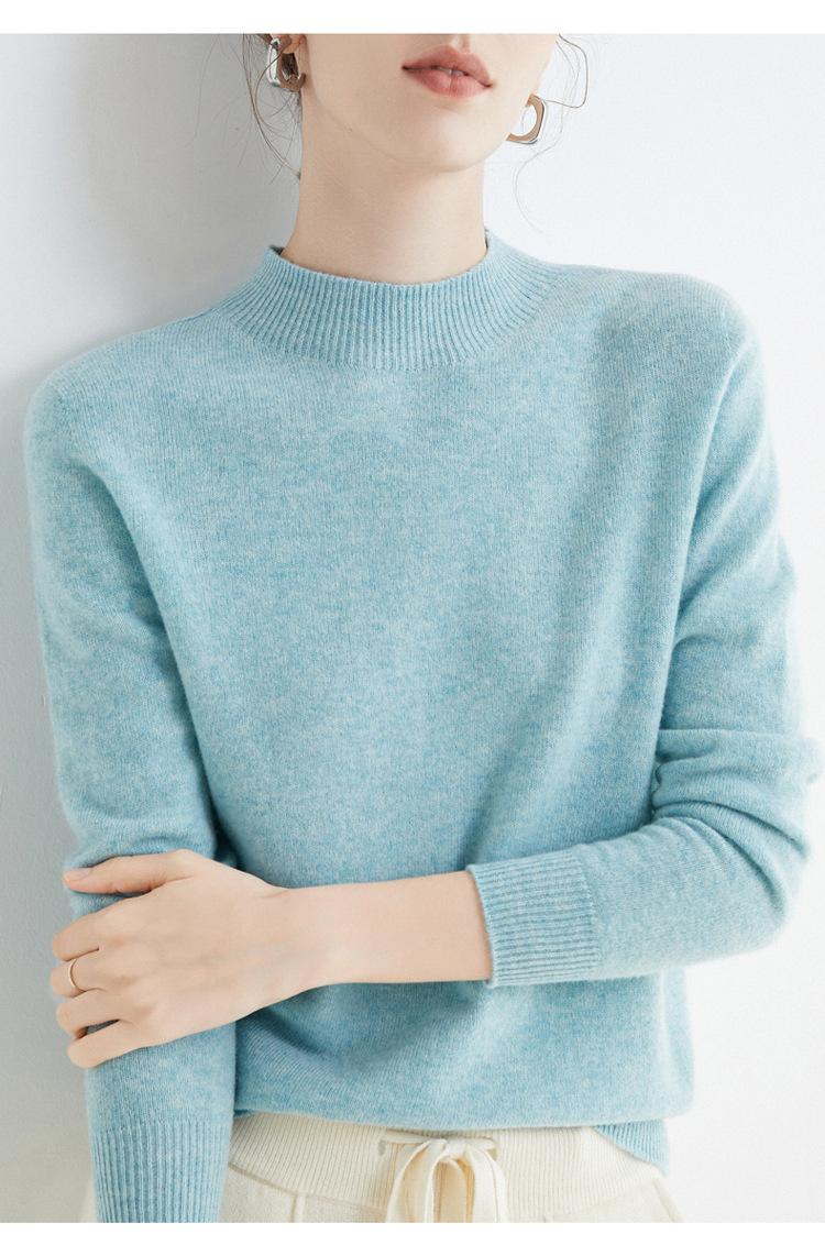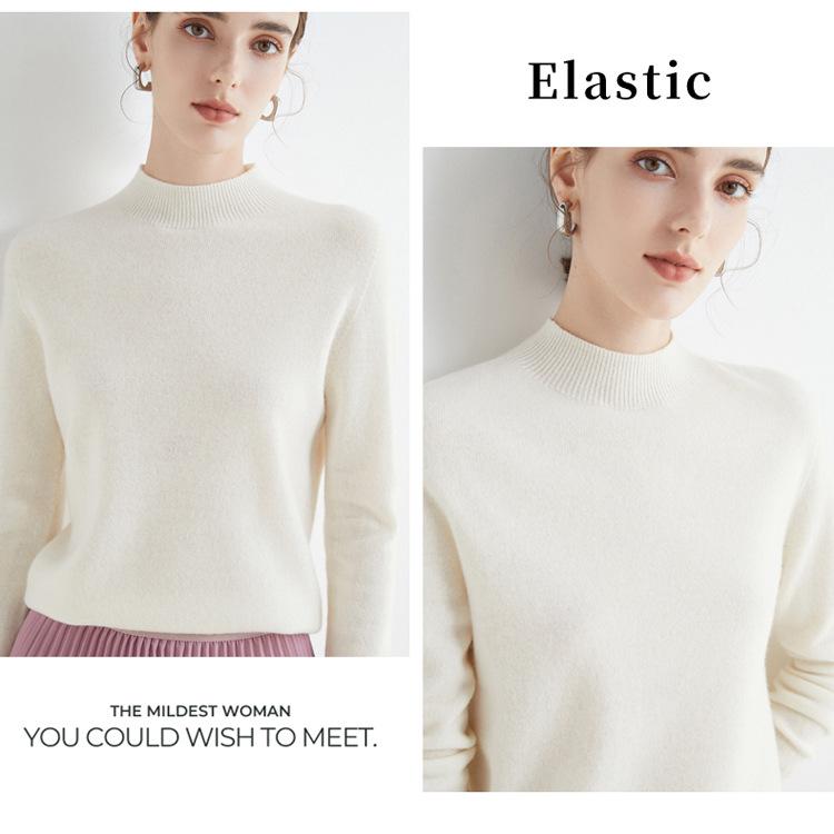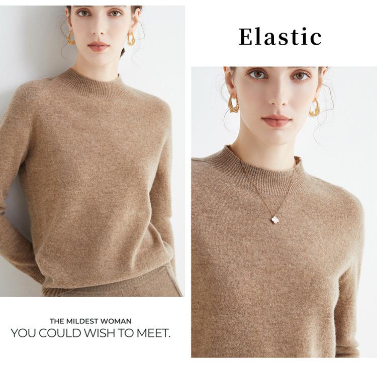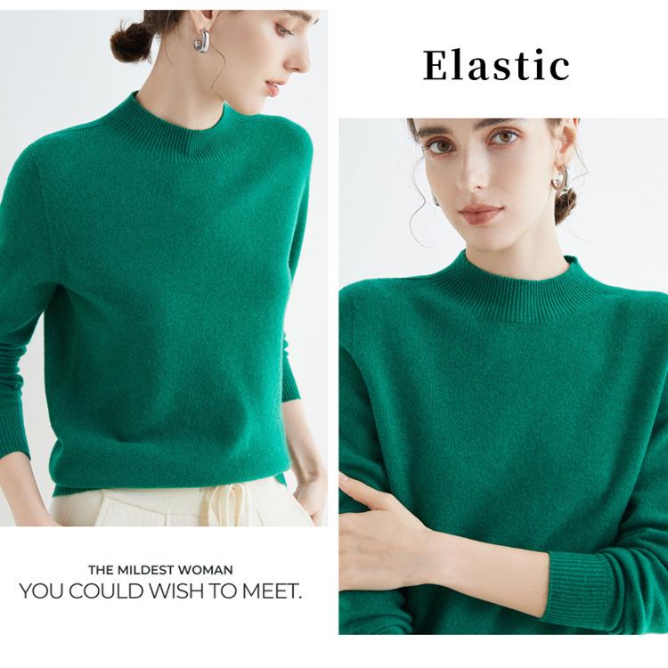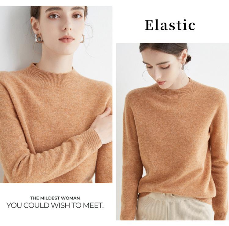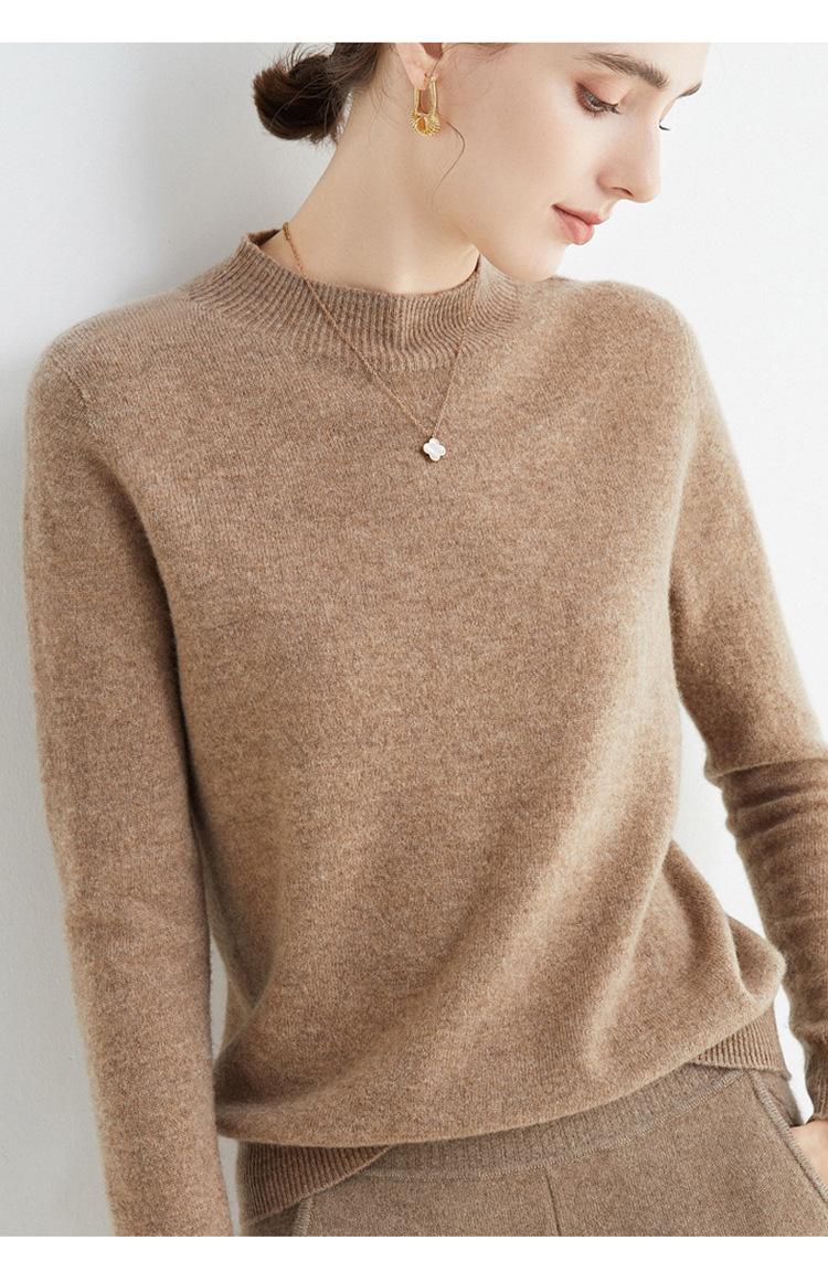 Suéter de otoño para mujer, 100% lana pura, tacto suave, cuello alto medio, corte entallado, camisa básica para todo tipo de combinaciones, moda para exteriores