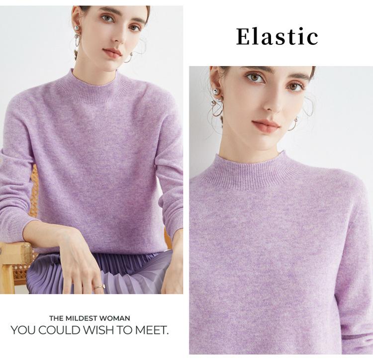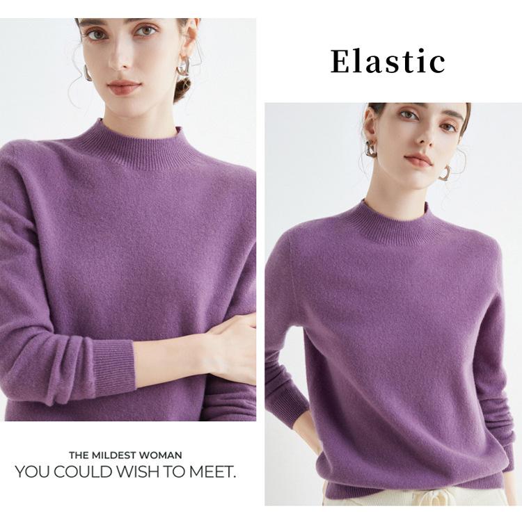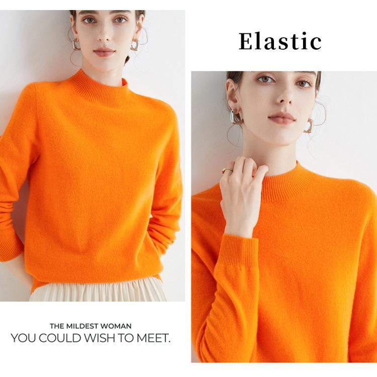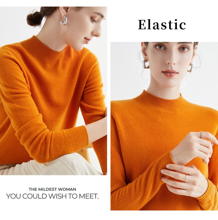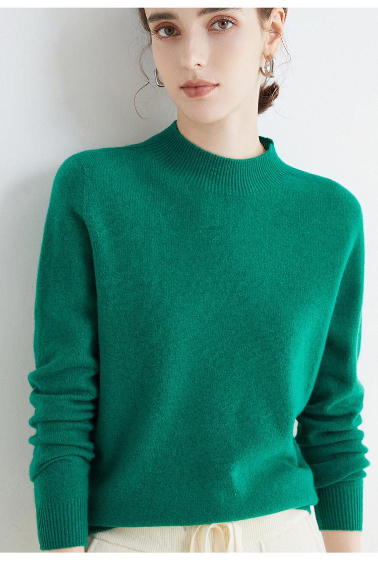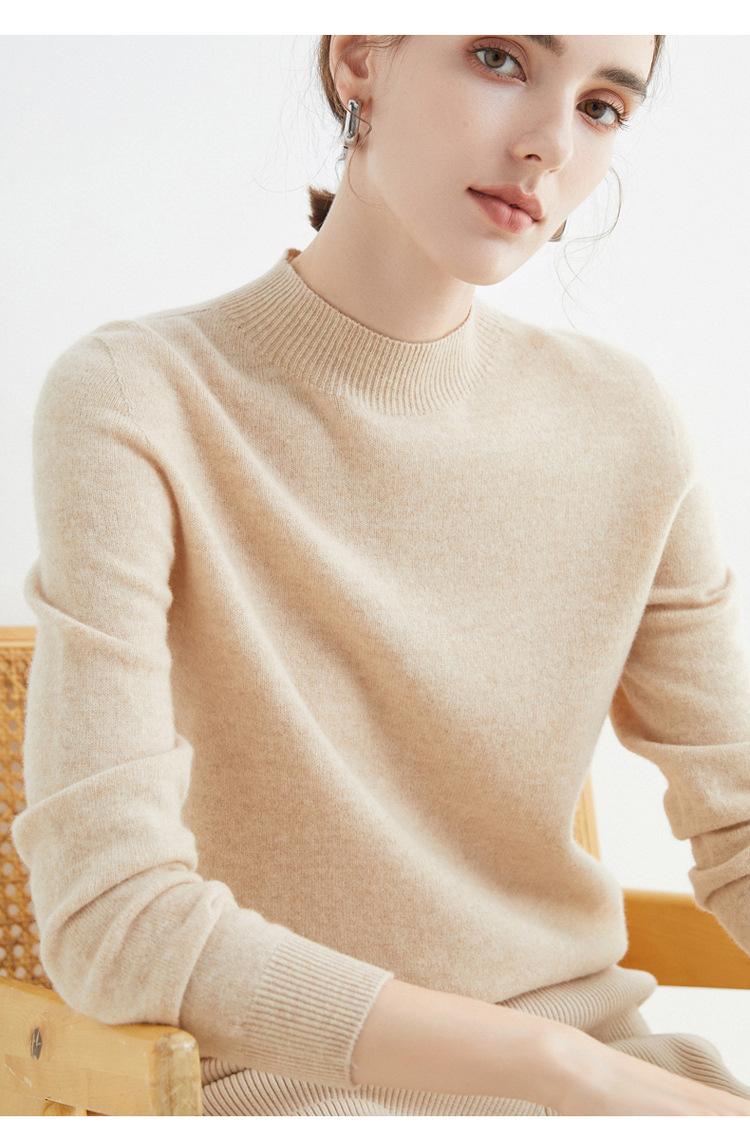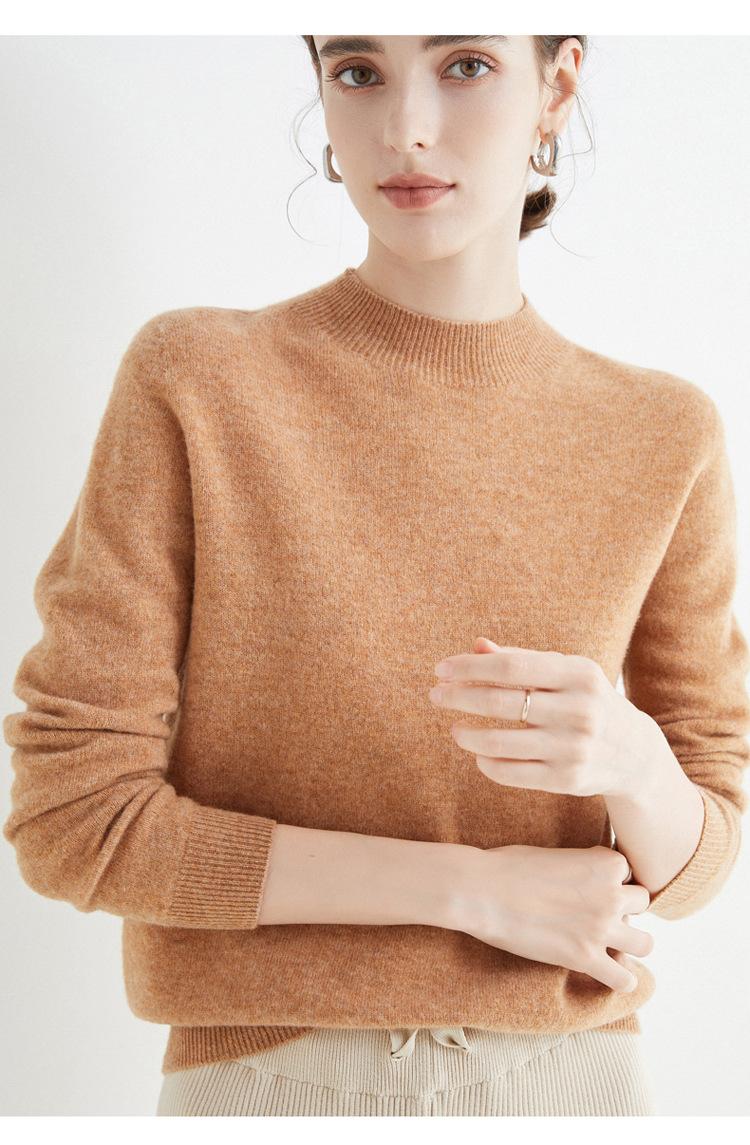 Suéter de otoño para mujer, 100% lana pura, tacto suave, cuello alto medio, corte entallado, camisa básica para todo tipo de combinaciones, moda para exteriores