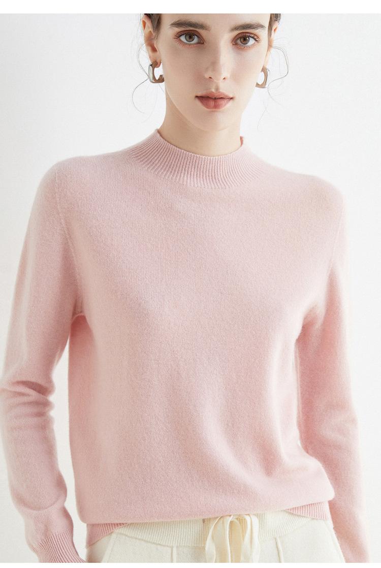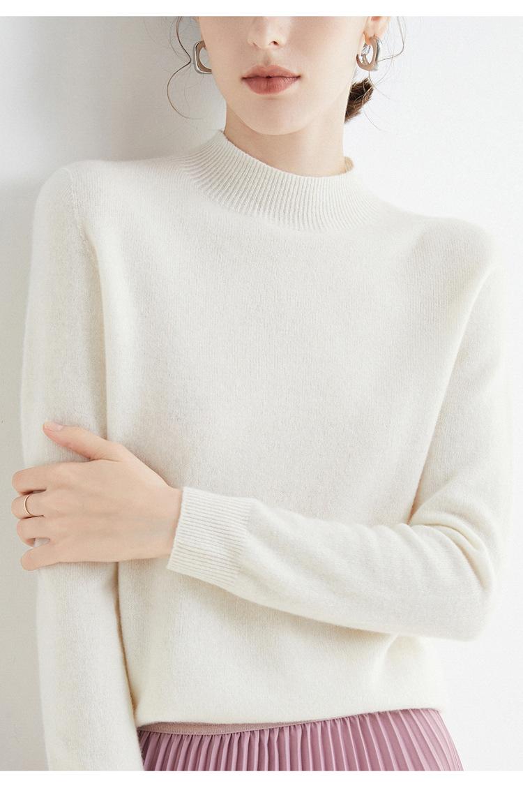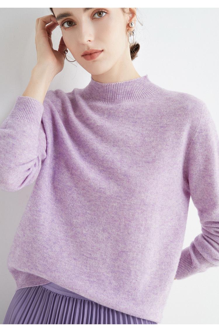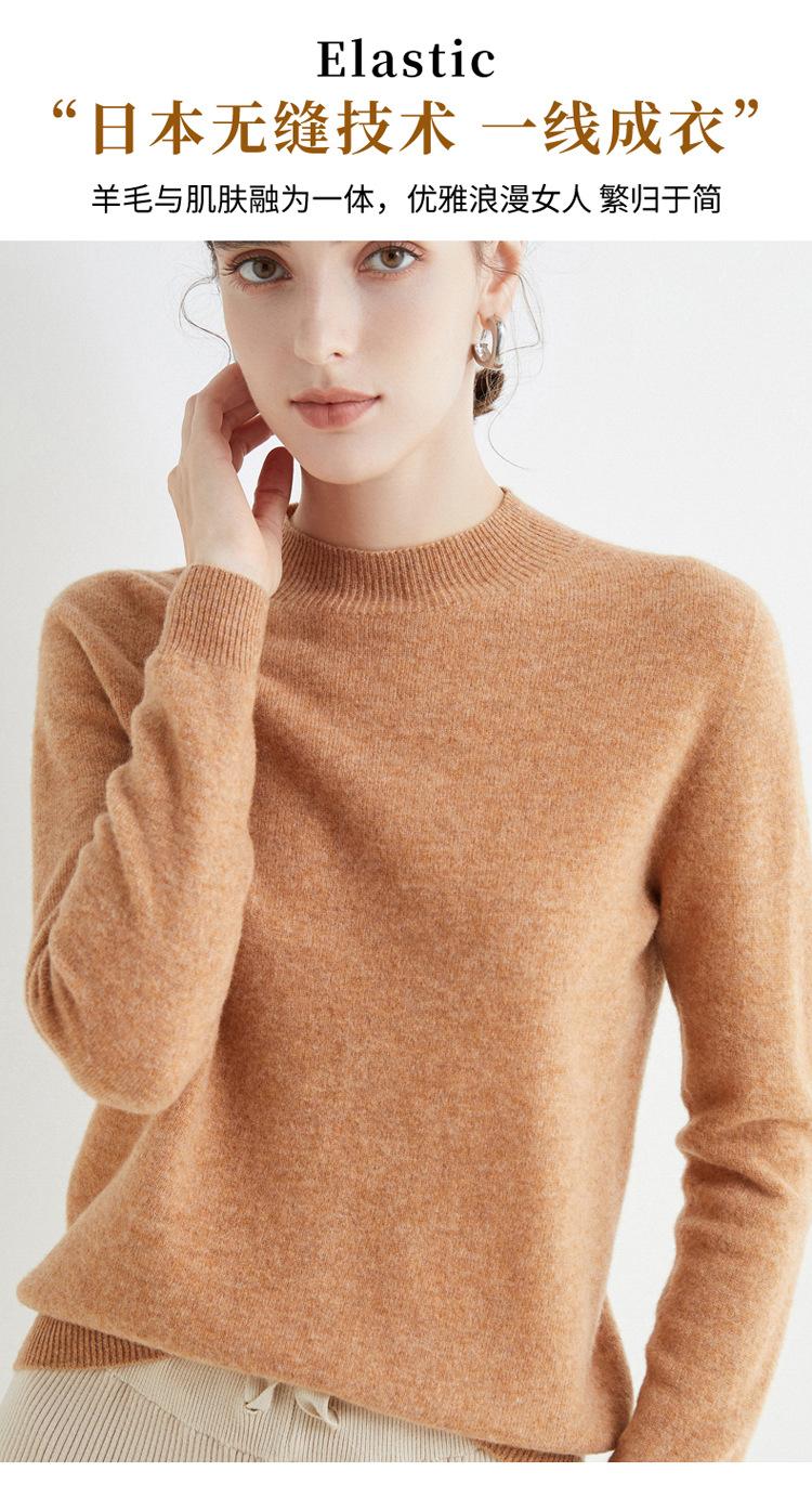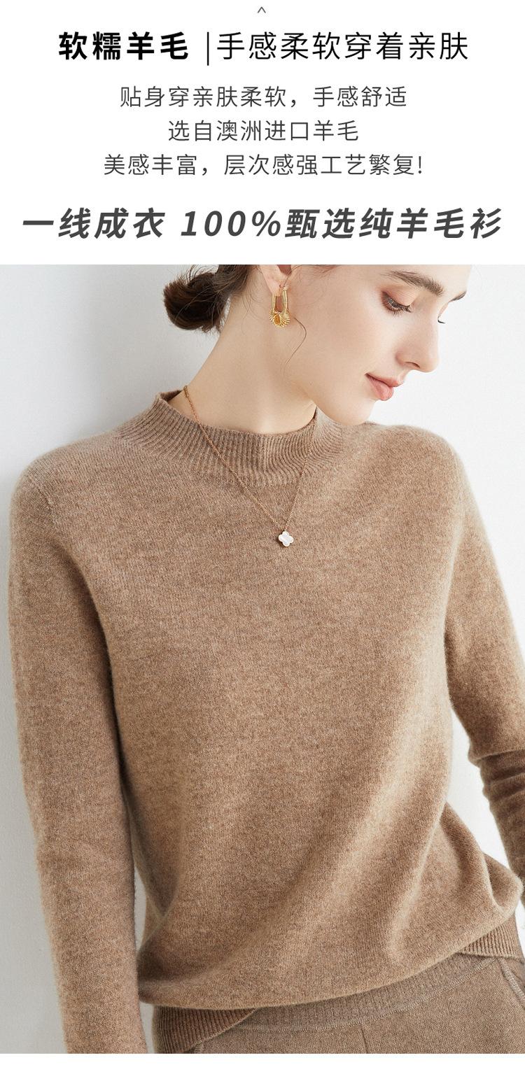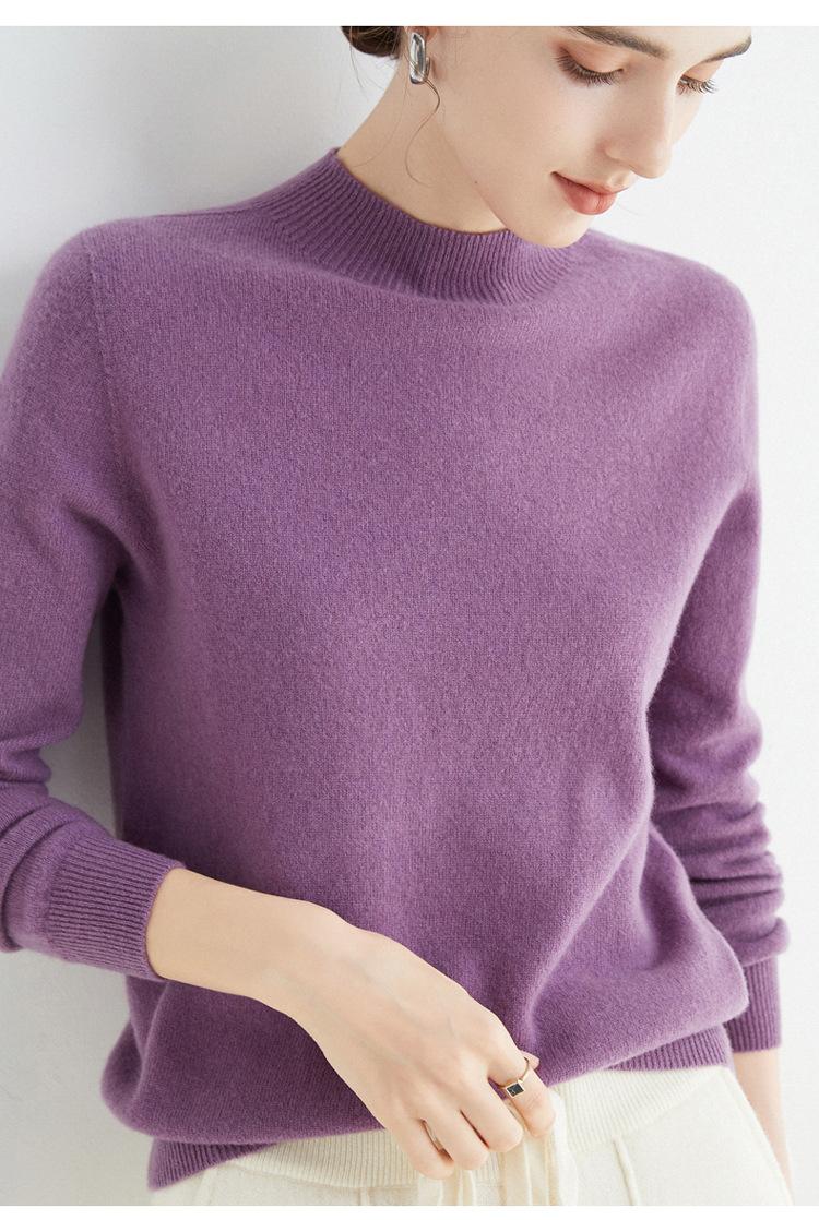 Suéter de otoño para mujer, 100% lana pura, tacto suave, cuello alto medio, corte entallado, camisa básica para todo tipo de combinaciones, moda para exteriores