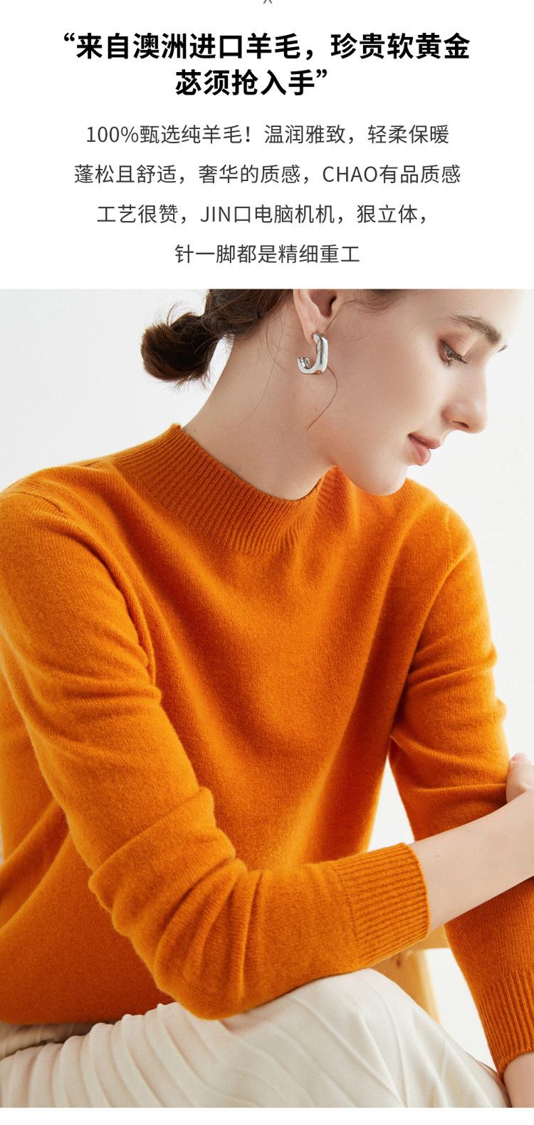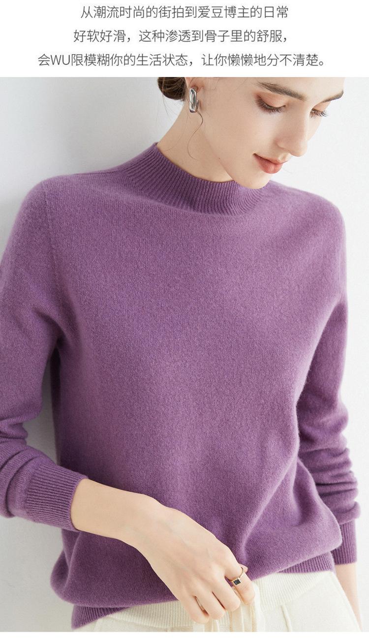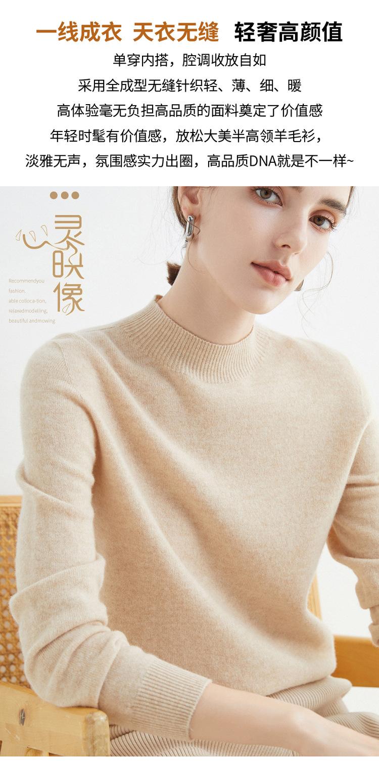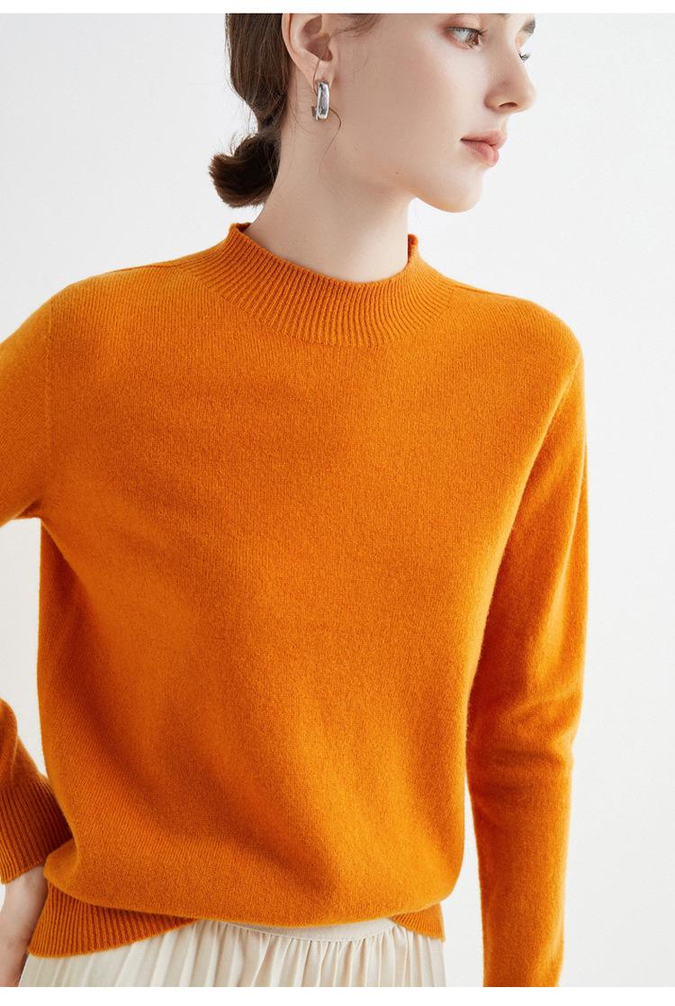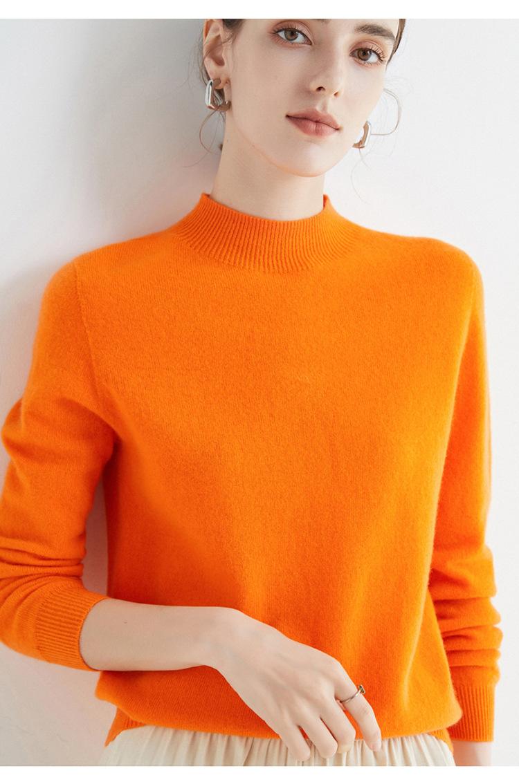 Suéter de otoño para mujer, 100% lana pura, tacto suave, cuello alto medio, corte entallado, camisa básica para todo tipo de combinaciones, moda para exteriores