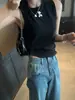 Chaleco corto para mujer Primavera y Verano 2024 Nuevo estilo coreano para llevar por dentro y por fuera, delgado, de tirantes, bordado, sin mangas, top básico