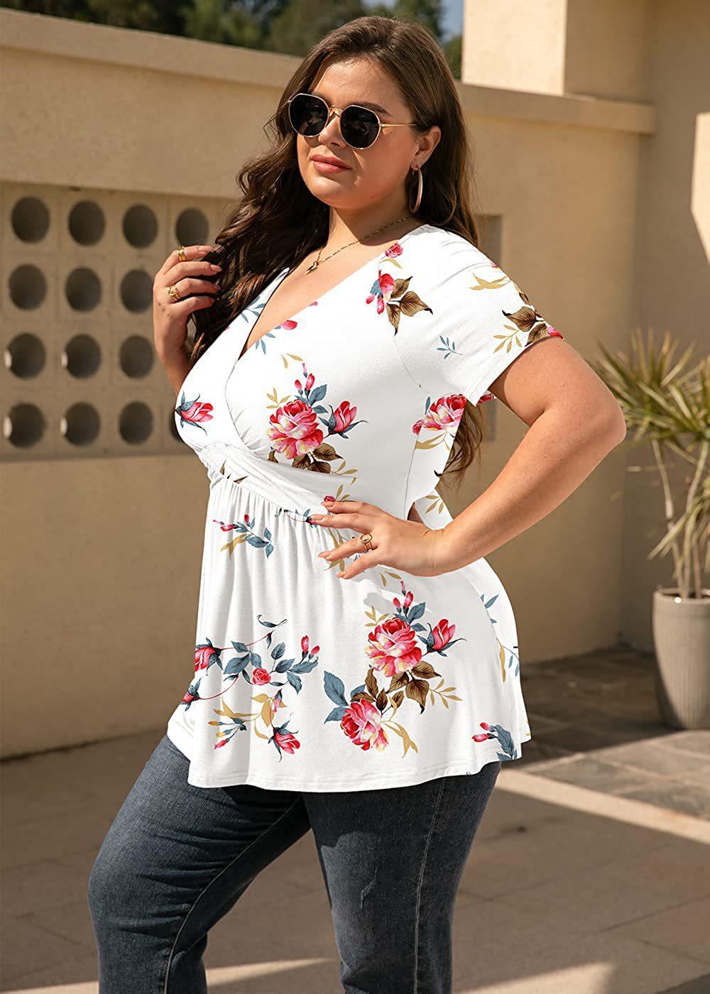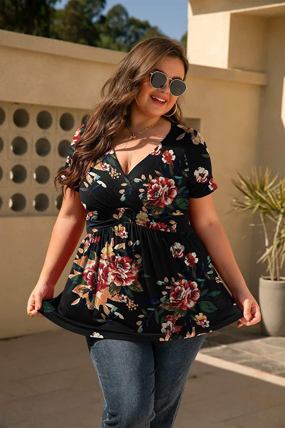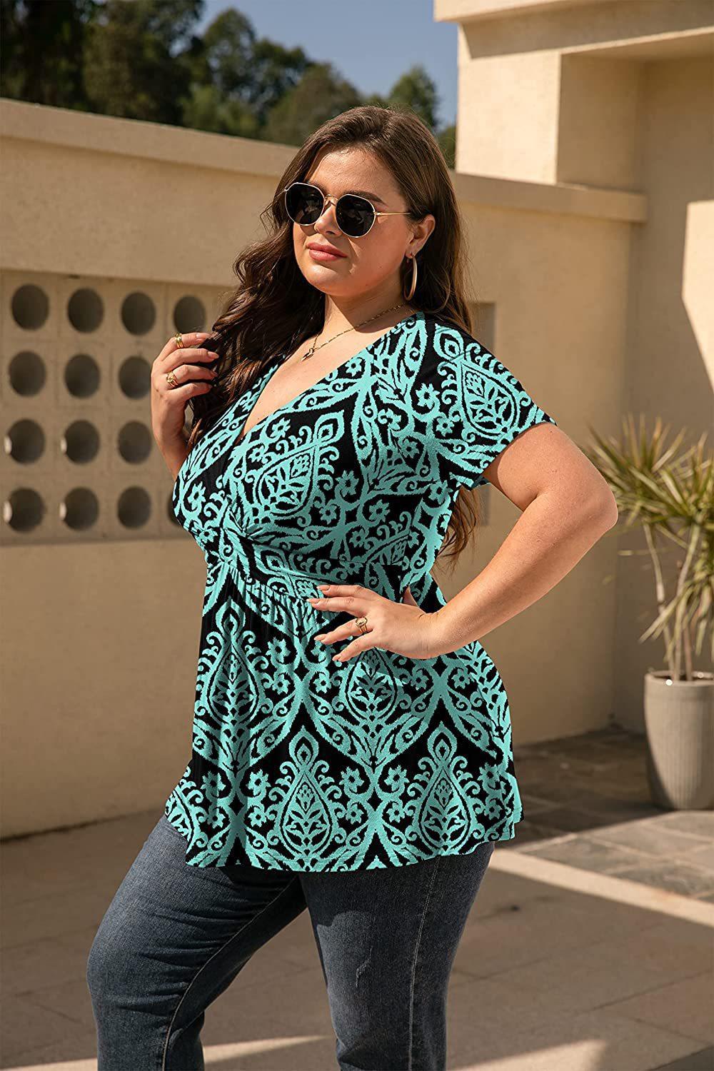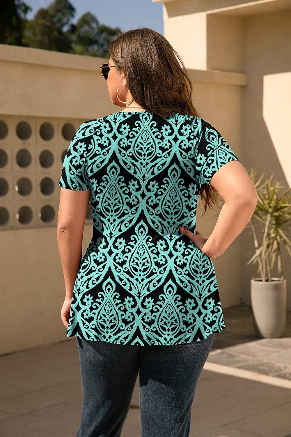 2024 primavera y verano nuevo comercio exterior transfronterizo europeo y americano Amazon popular camiseta estampada top de mujer talla grande ropa de mujer