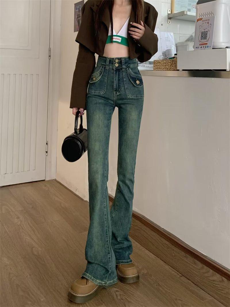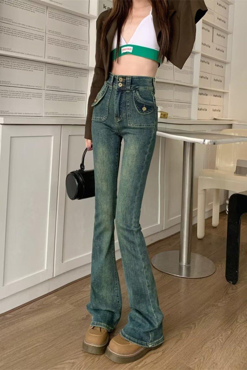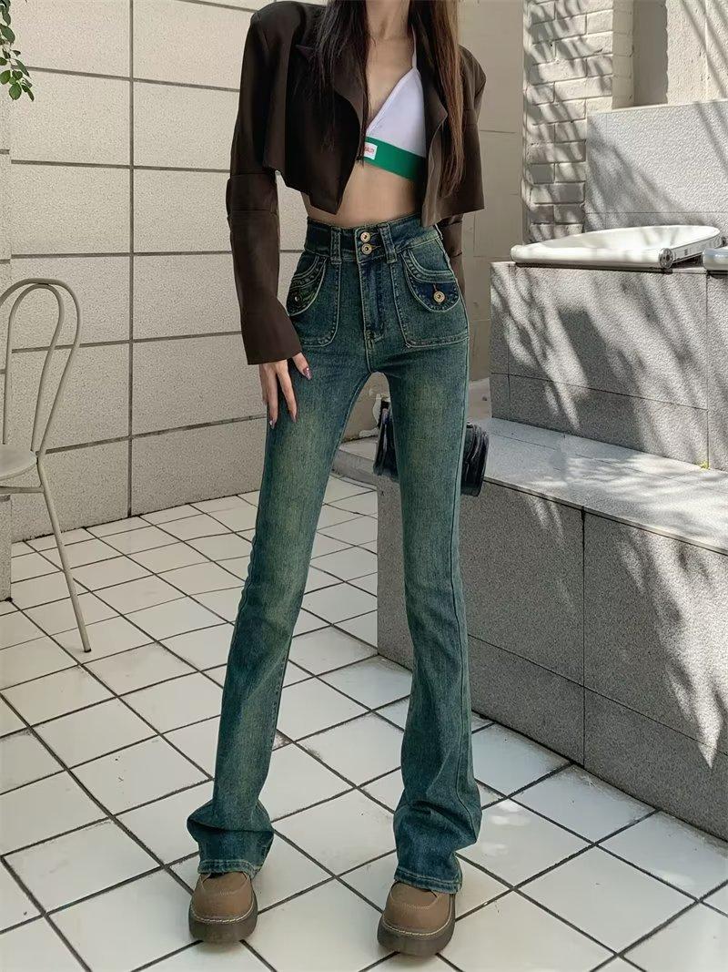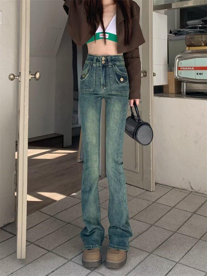 Jeans de Mujer de Cintura Alta 2024 Ajustados Skinny Elásticos Pantalones Largos Estilo Vintage Retro Desgastado