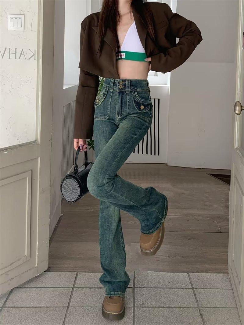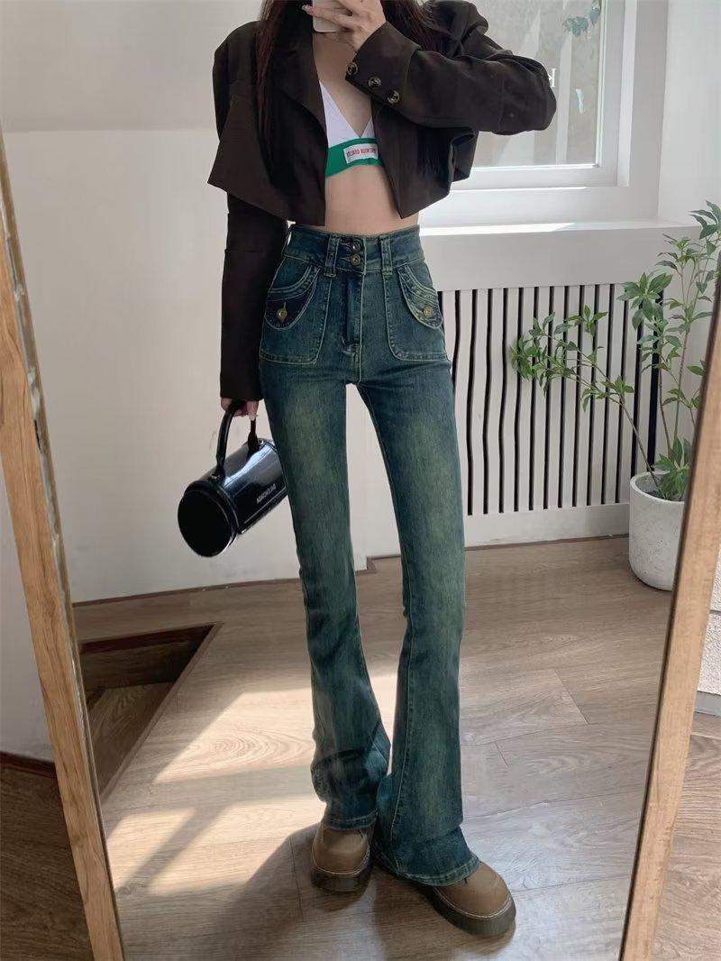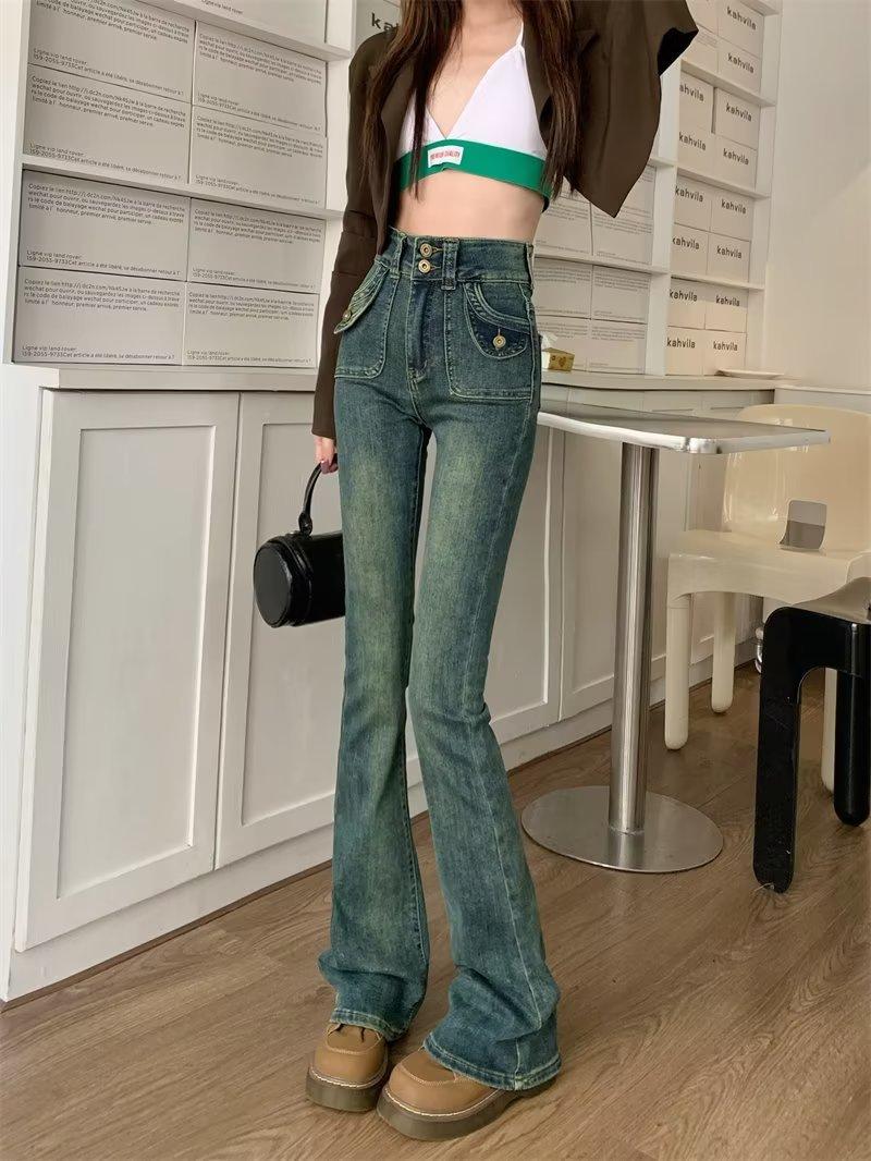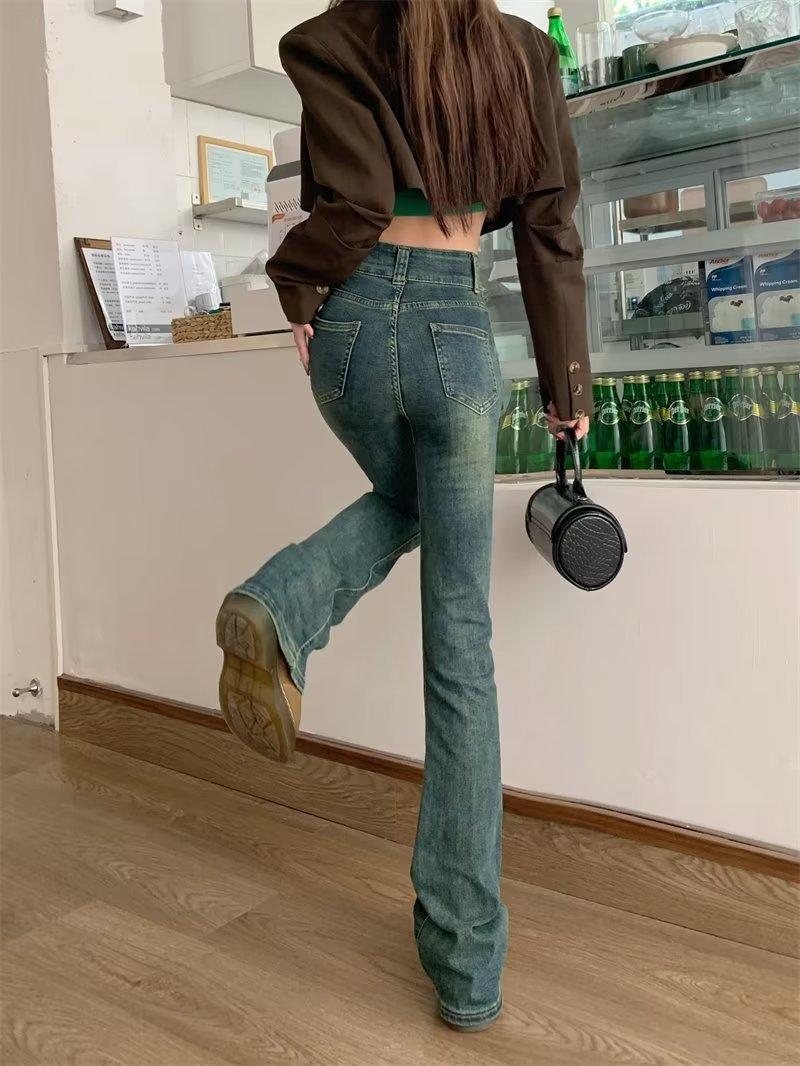 Jeans de Mujer de Cintura Alta 2024 Ajustados Skinny Elásticos Pantalones Largos Estilo Vintage Retro Desgastado