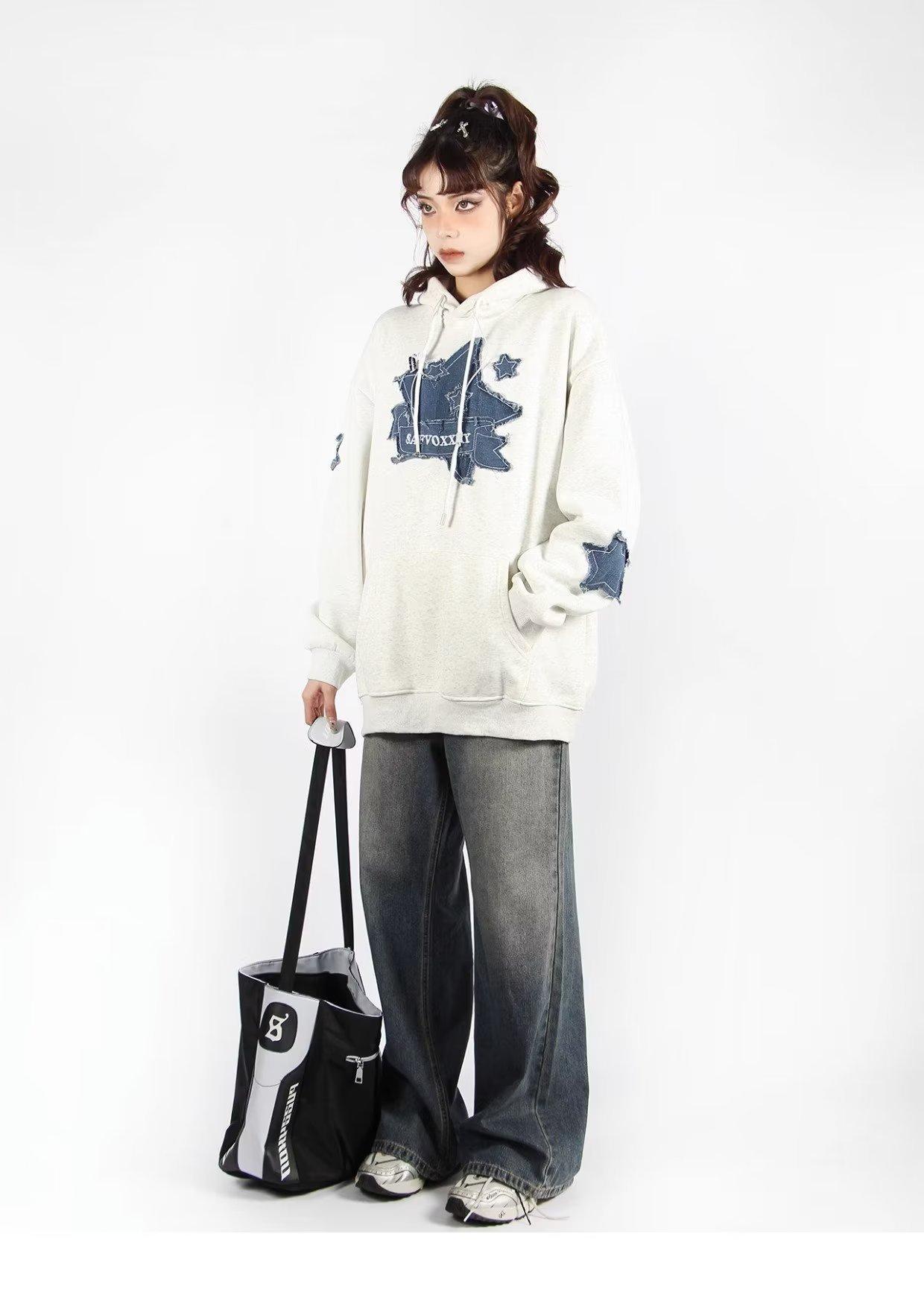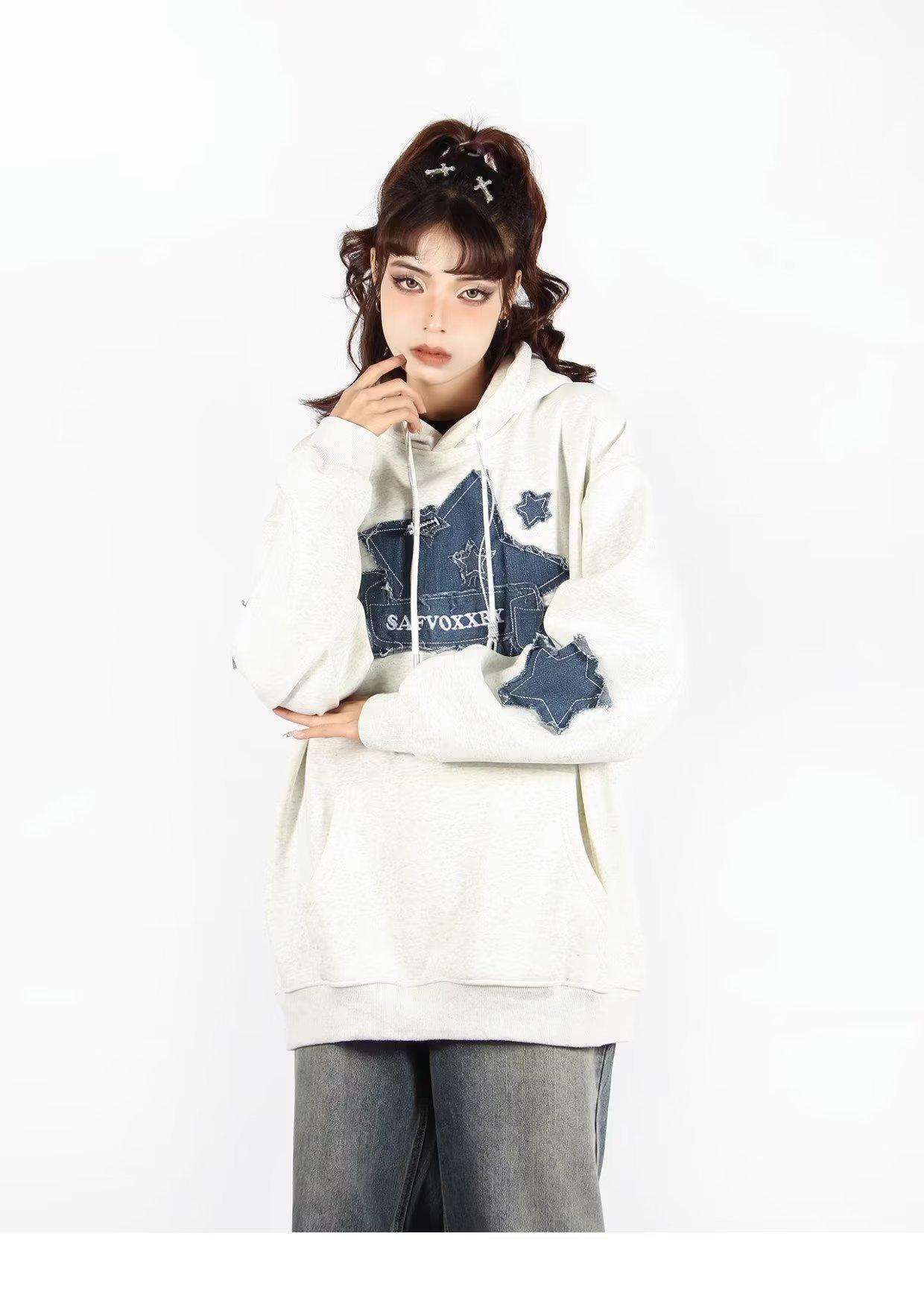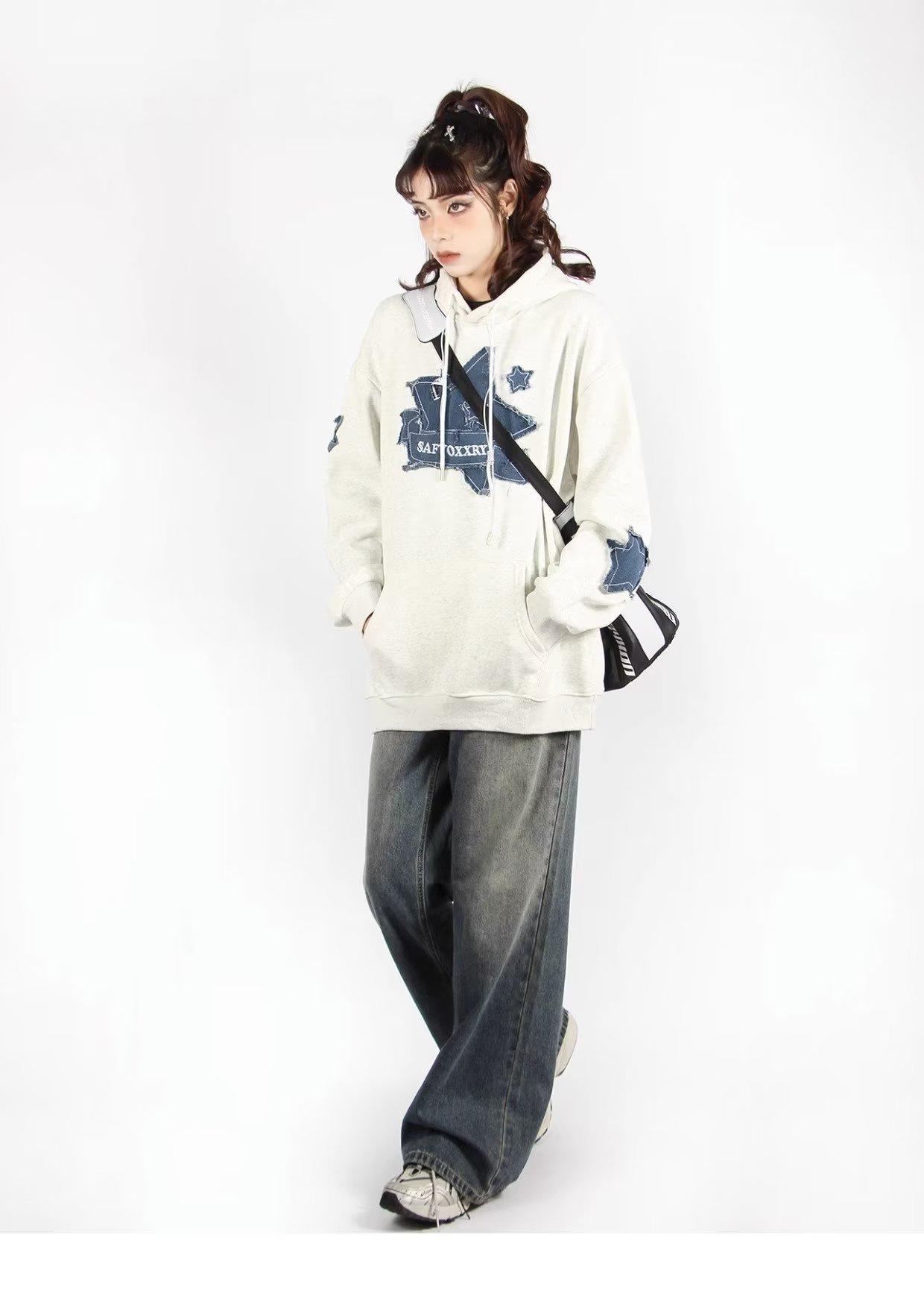 Sudadera con capucha de otoño e invierno, estilo Harajuku, sencilla, de manga larga, estilo holgado y a la moda, estilo popular y relajado, sudadera de calle.