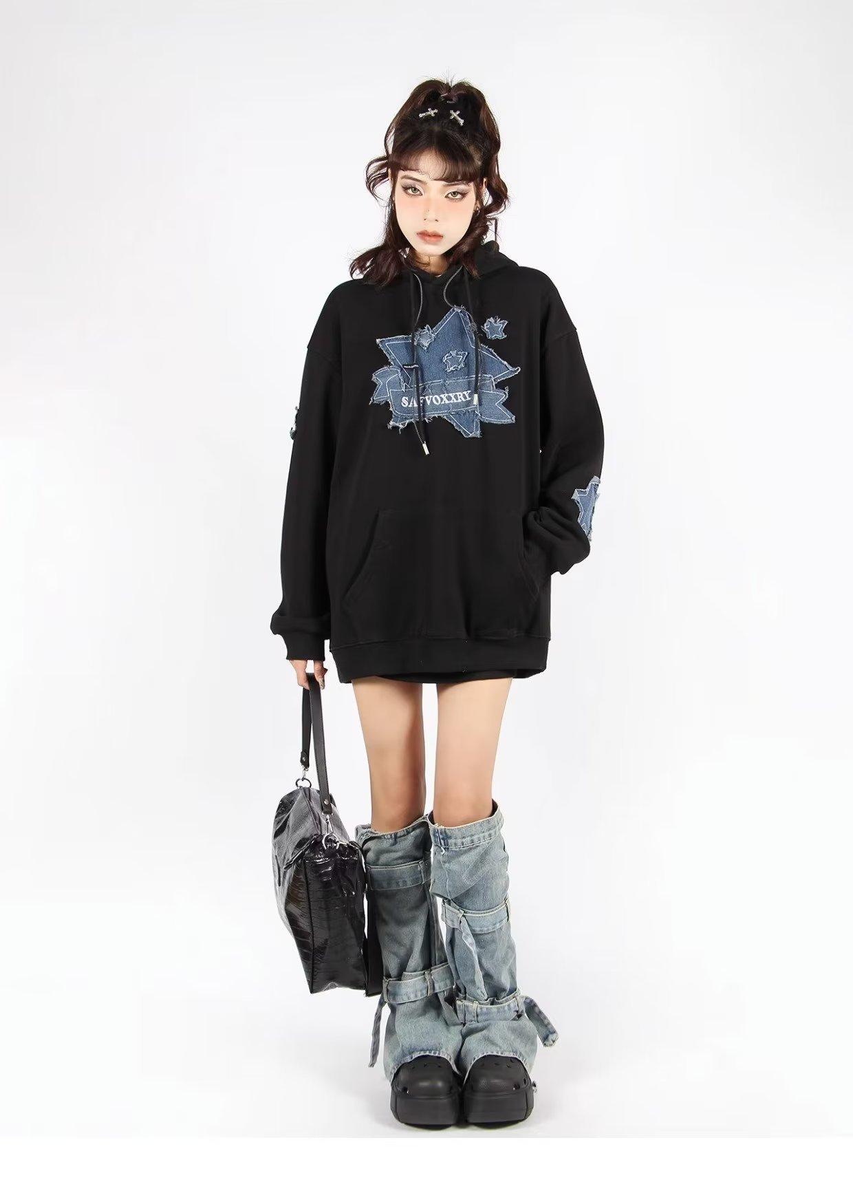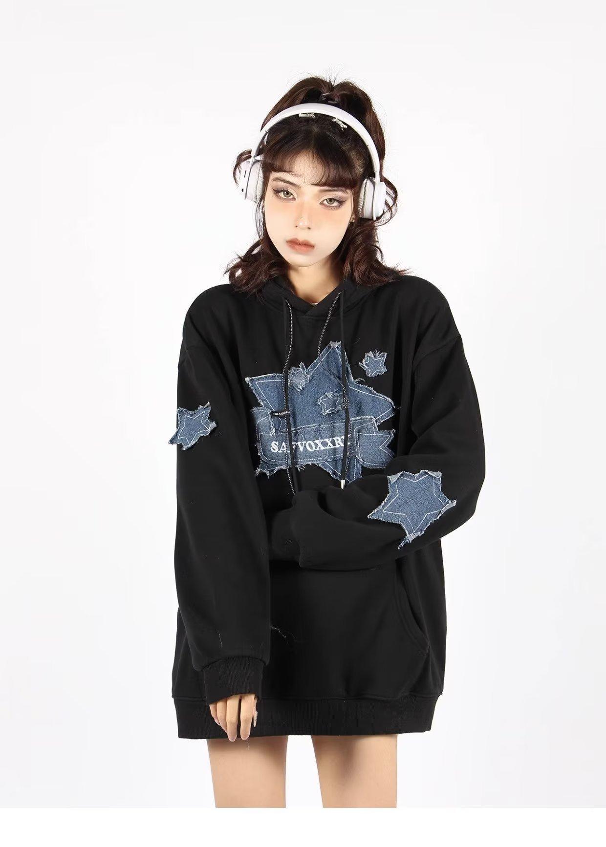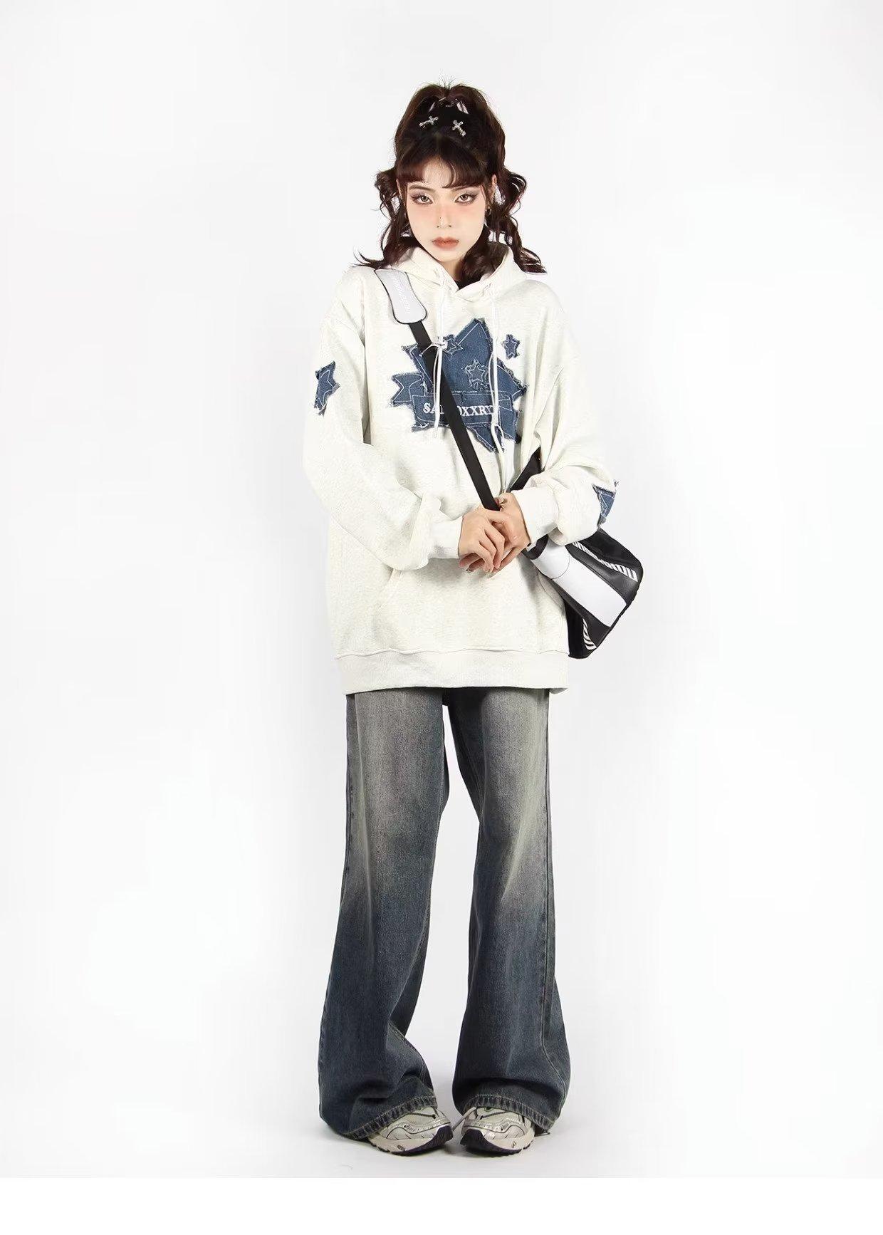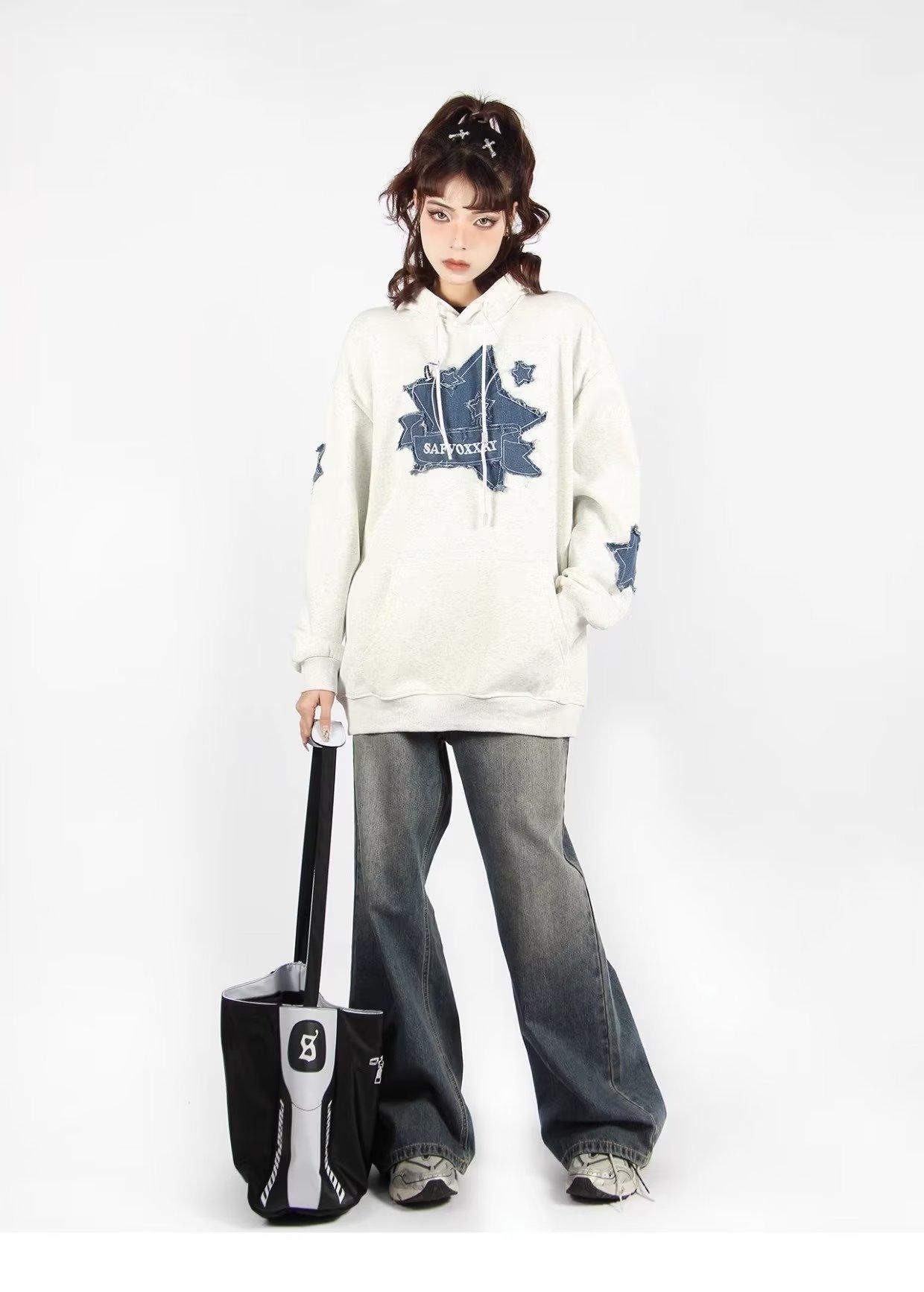 Sudadera con capucha de otoño e invierno, estilo Harajuku, sencilla, de manga larga, estilo holgado y a la moda, estilo popular y relajado, sudadera de calle.
