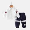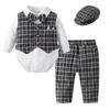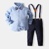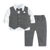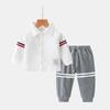 Vestido para meninos de um ano de idade Manga comprida Primavera e Outono Colarinho cavalheiro Terno dividido Calças infantis Festa de aniversário Roupas britânicas