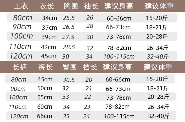 80/52, 90/56, 100/60, 110/64, 120/68