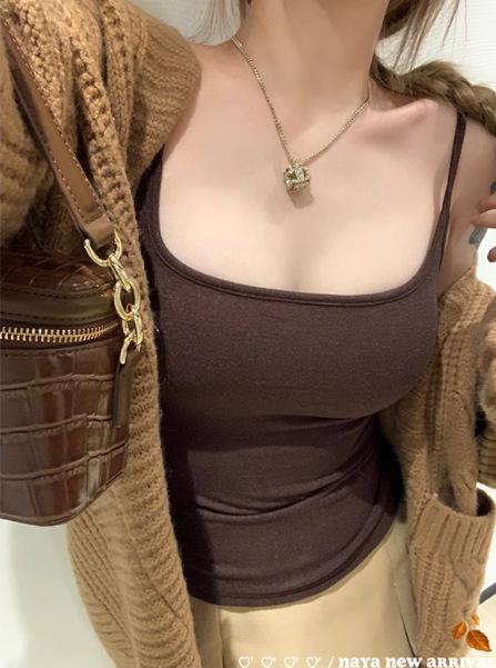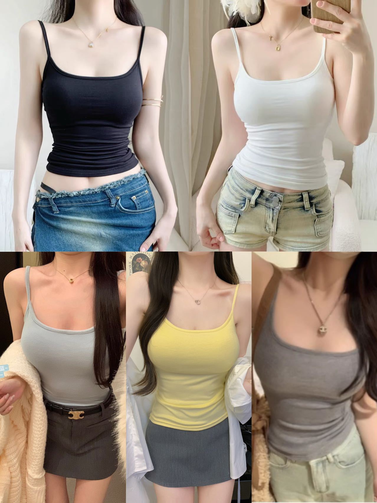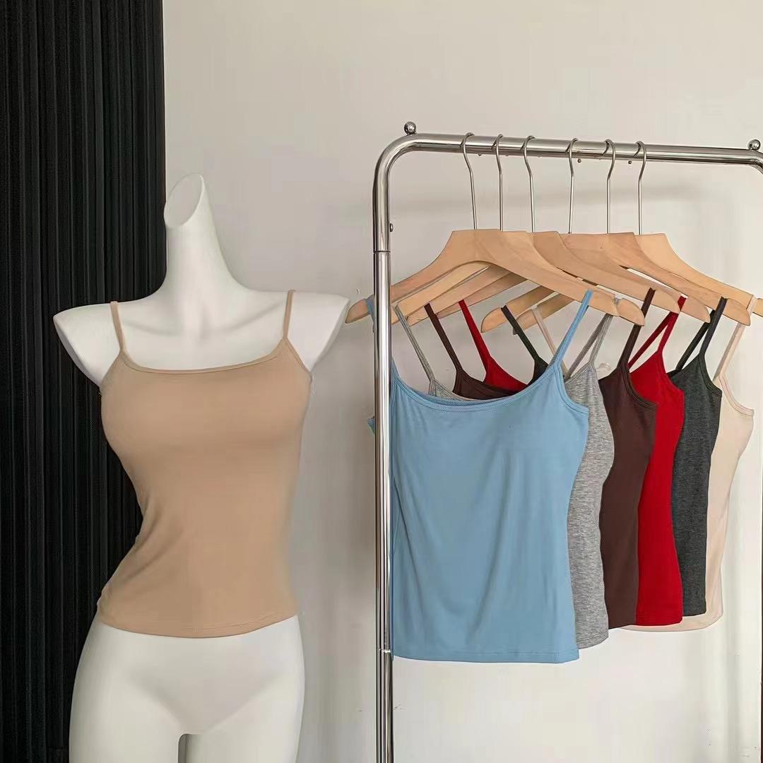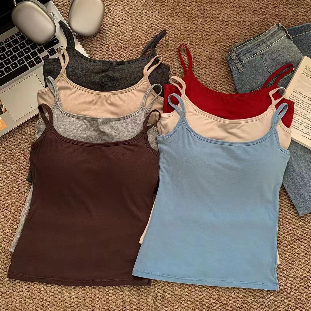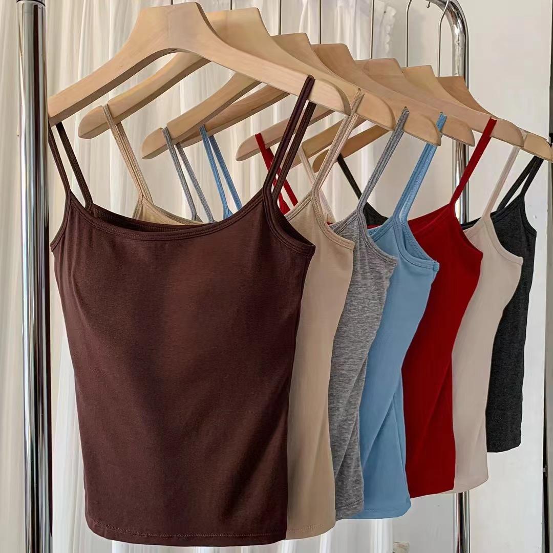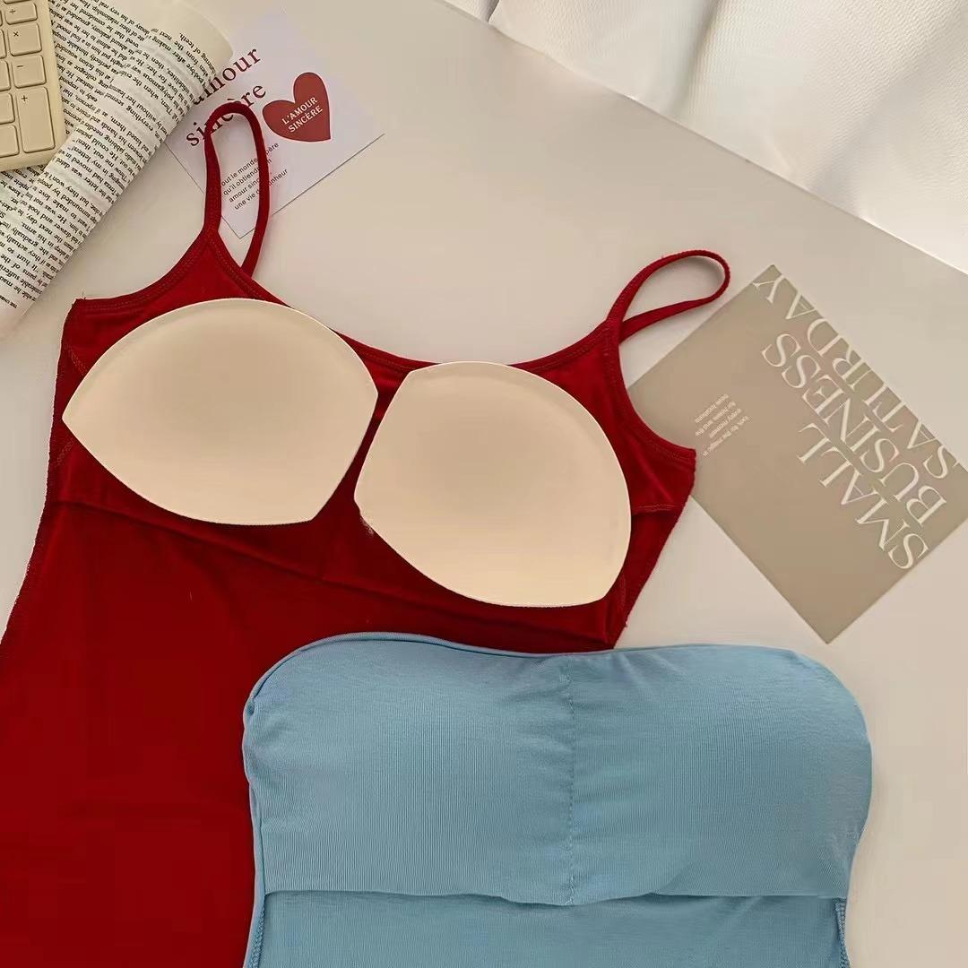 Camisola de verano de color liso con dopamina, nueva, con cinturón y almohadilla para el pecho, para mujer, con base que combina con todo, ideal para las Spice Girls, con una hermosa espalda.