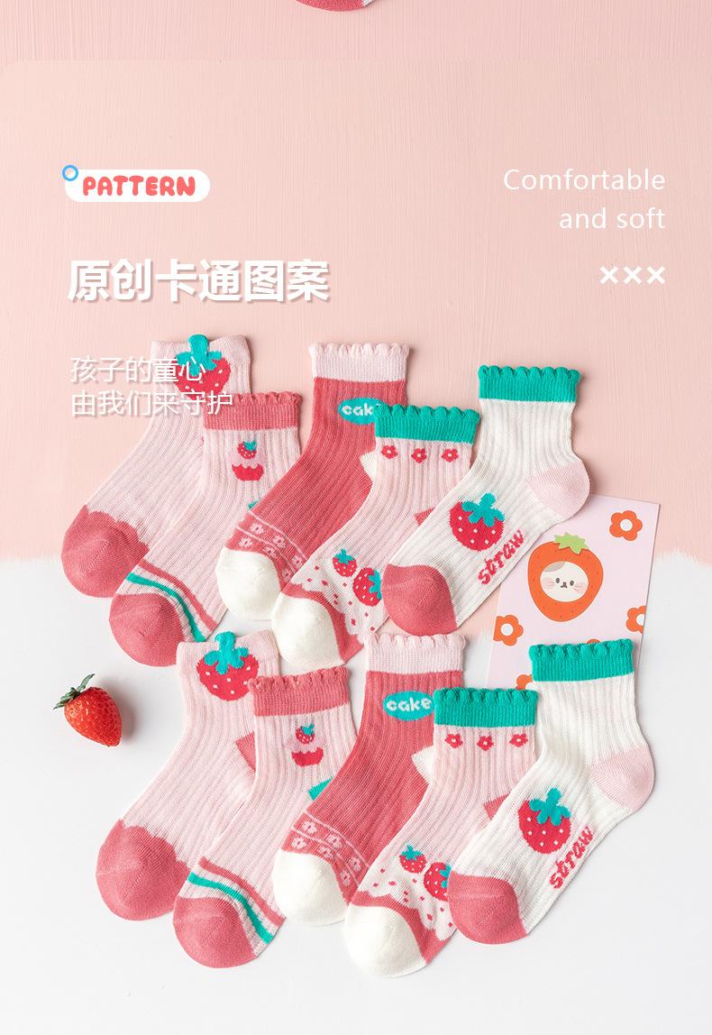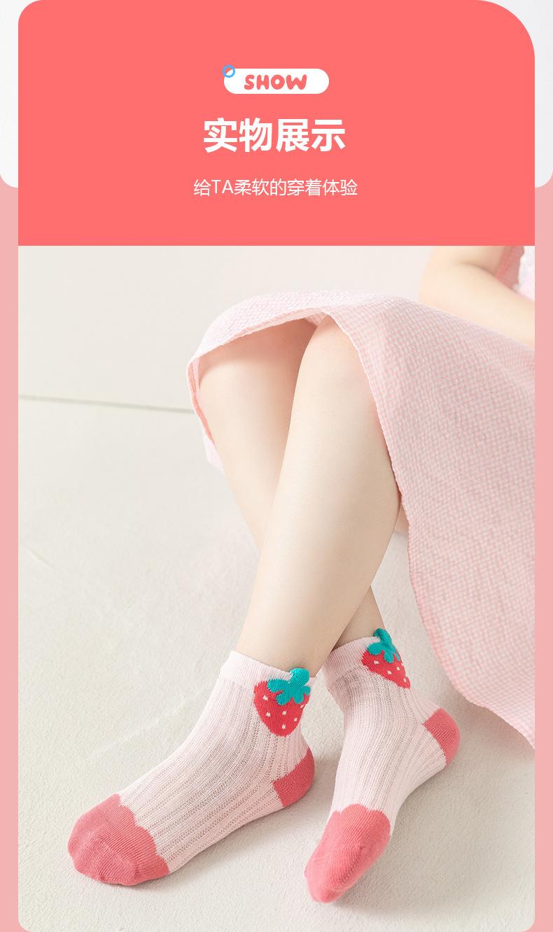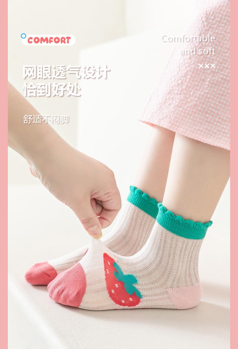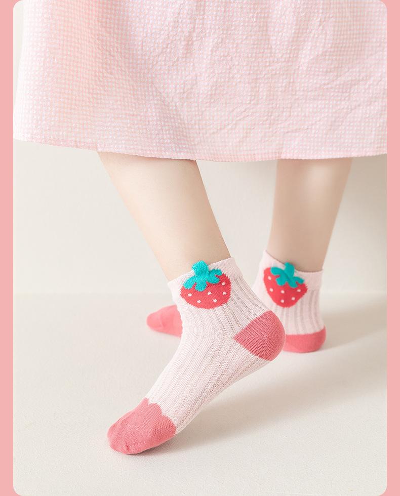 Calcetines para Niñas, Estilo Fino de Primavera y Otoño, Calcetines de Media Caña para Niños, Lindos Calcetines de Algodón Transpirables de Malla de Fresa