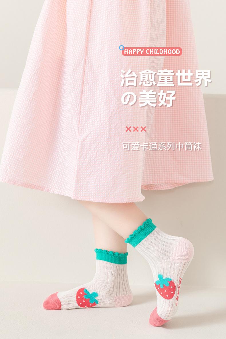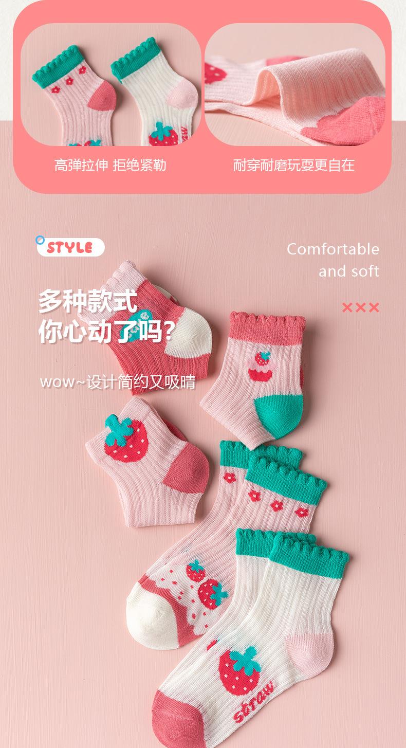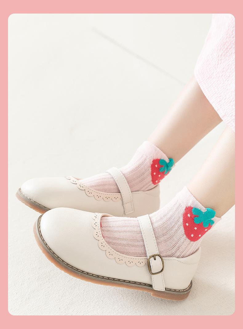 Calcetines para Niñas, Estilo Fino de Primavera y Otoño, Calcetines de Media Caña para Niños, Lindos Calcetines de Algodón Transpirables de Malla de Fresa