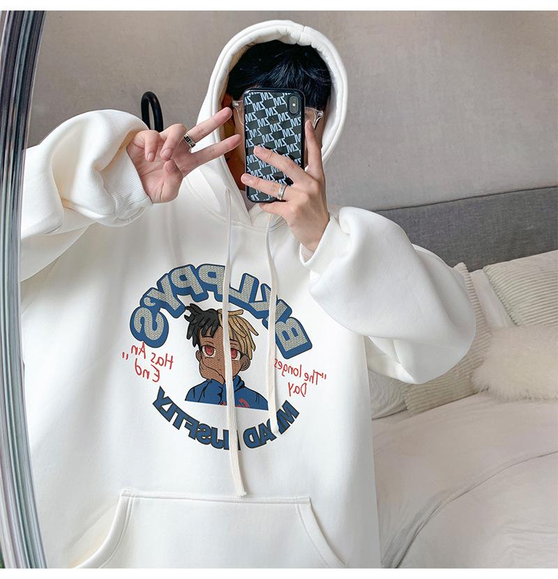 Otoño e Invierno 2023 Otoño e Invierno Forro Polar Compuesto Europeo y Americano Suelto con Capucha Estampado Moderno Chaqueta Sudadera W388
