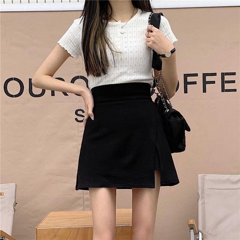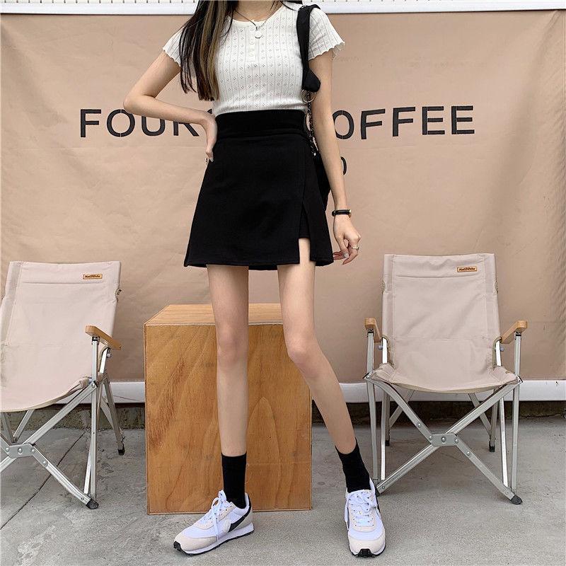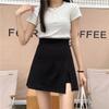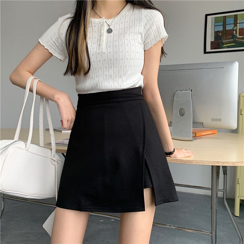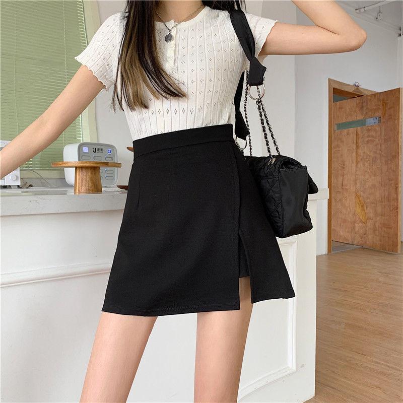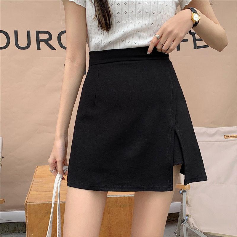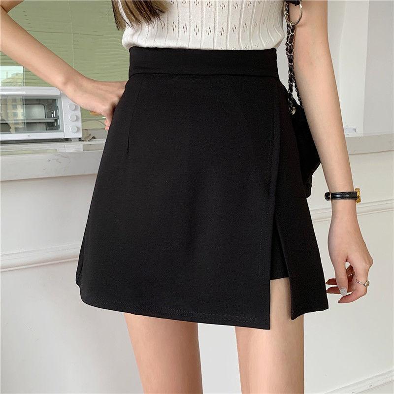 Falda negra dividida de verano para mujer, talla grande, chica gordita, cintura alta, irregular, línea A, falda adelgazante de cadera